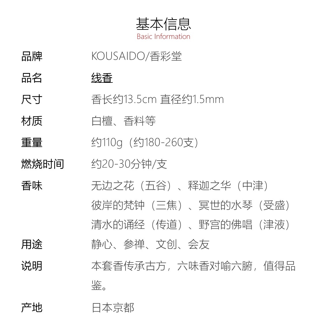 【KOUSAIDO】香彩堂晚安香 110g