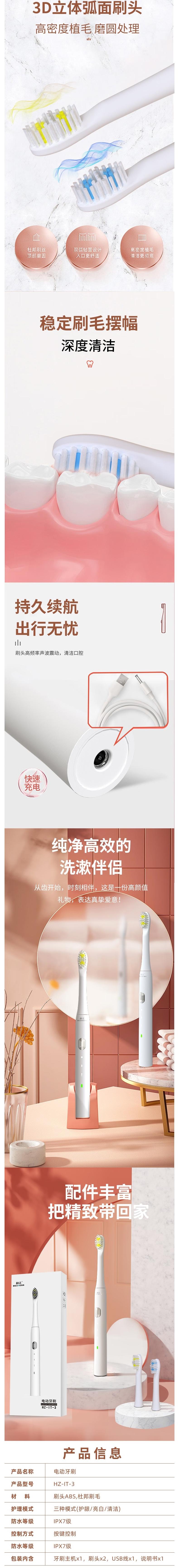 和正 电动牙刷2个刷头 HZ-IT-3