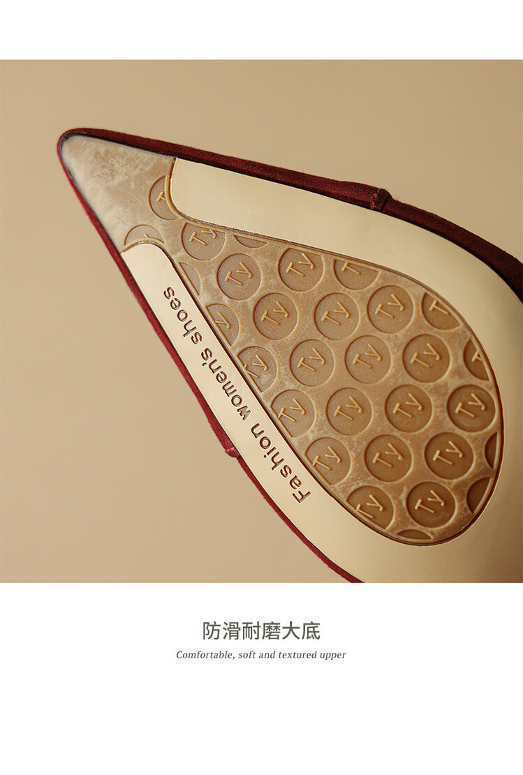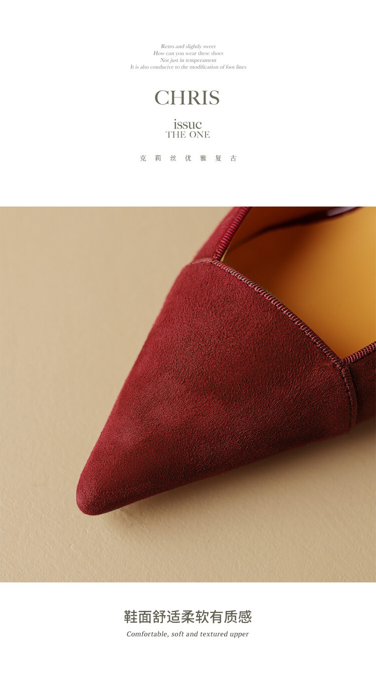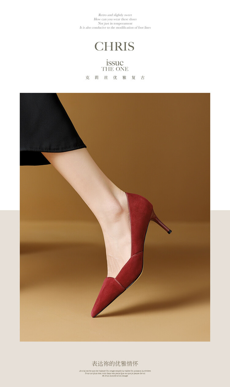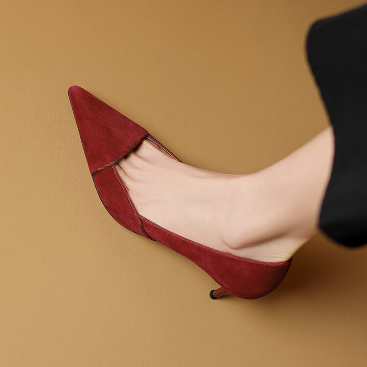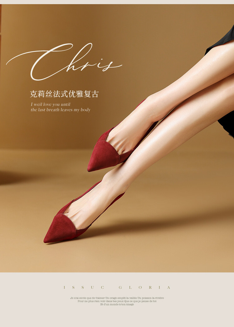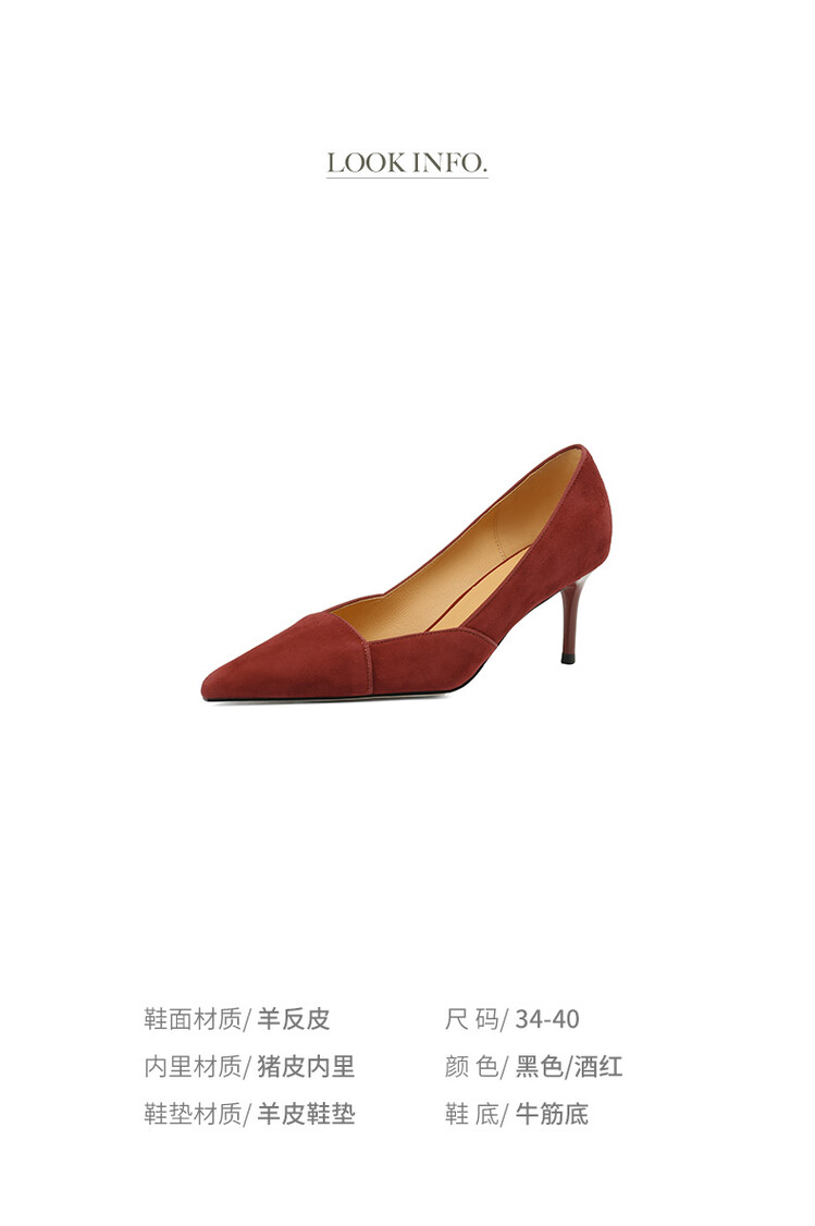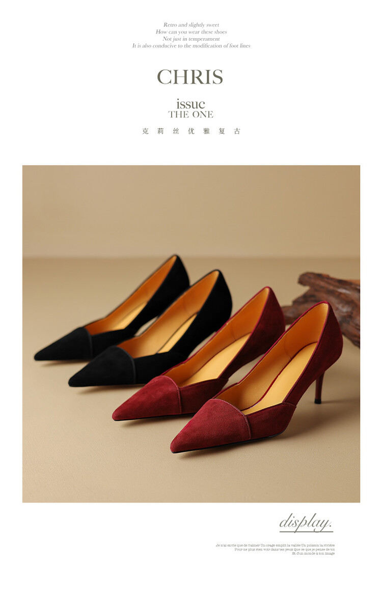 【预售5天】春季新款,拼接酒红色浅口单鞋女法式尖头细跟百搭气质高跟鞋DB&M5850