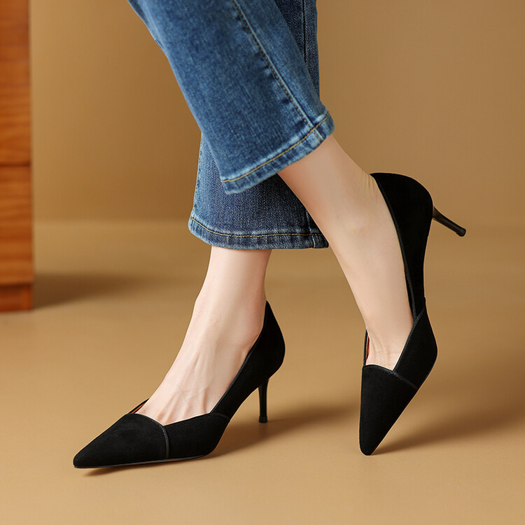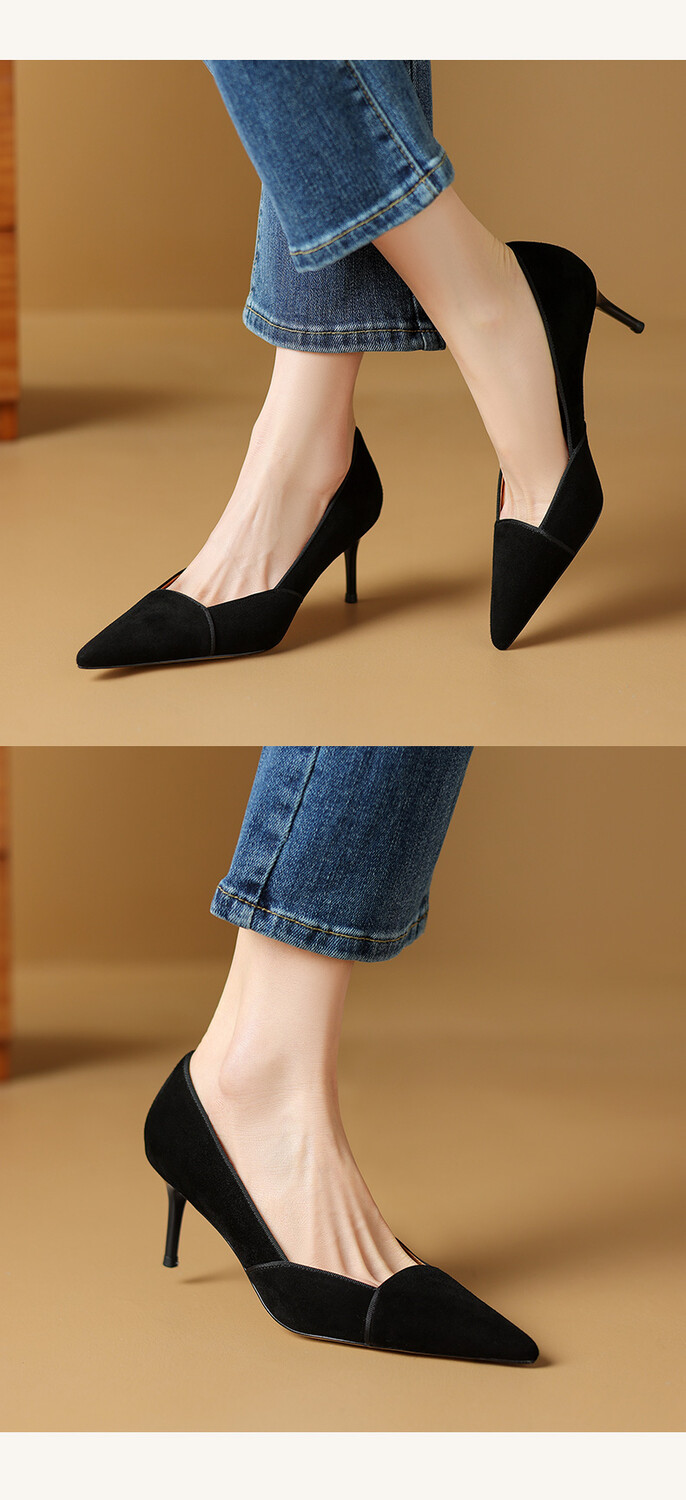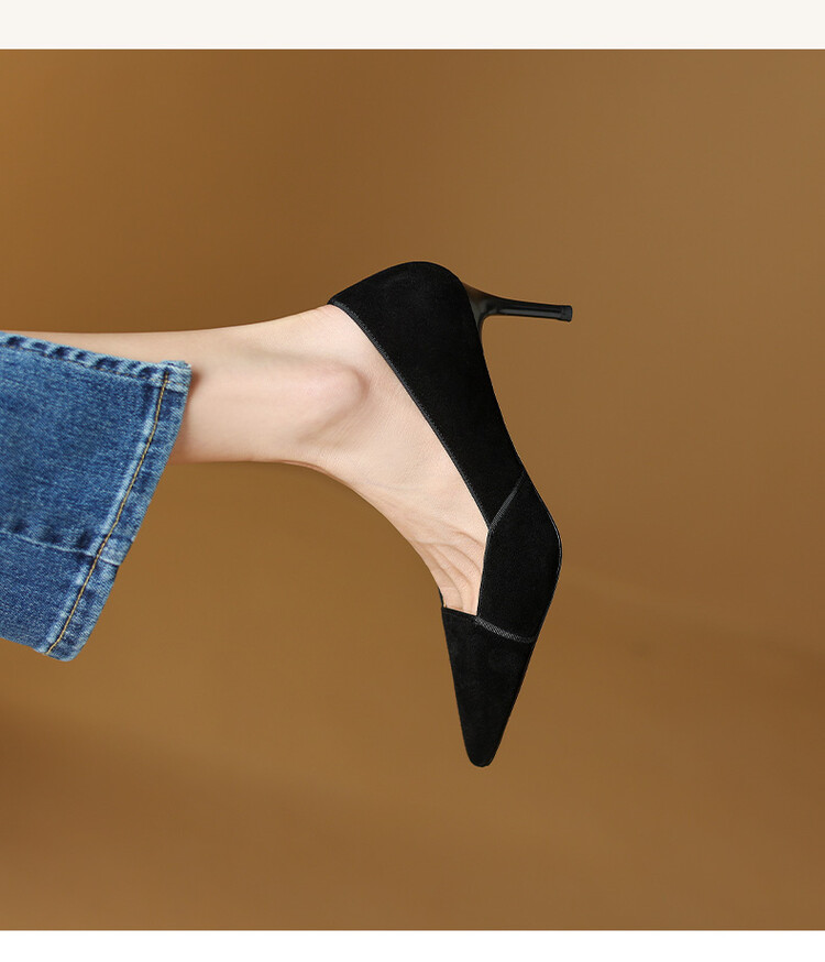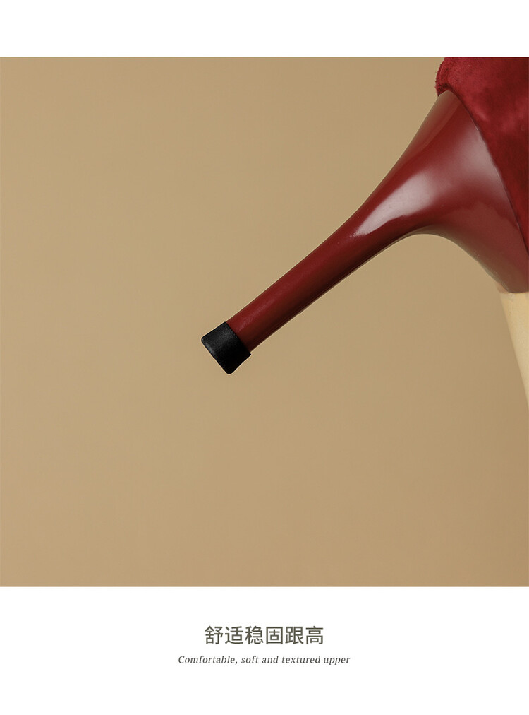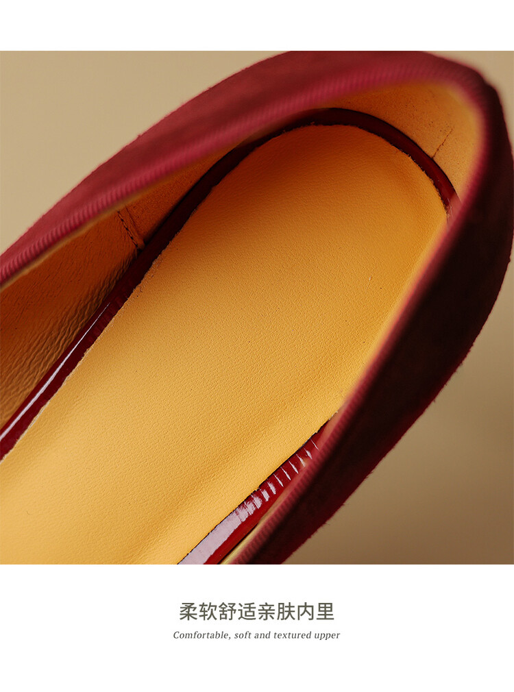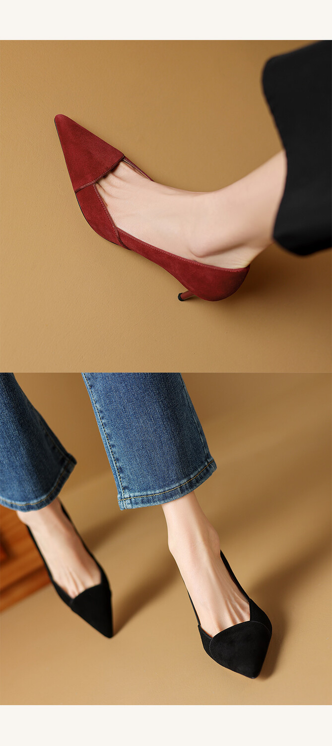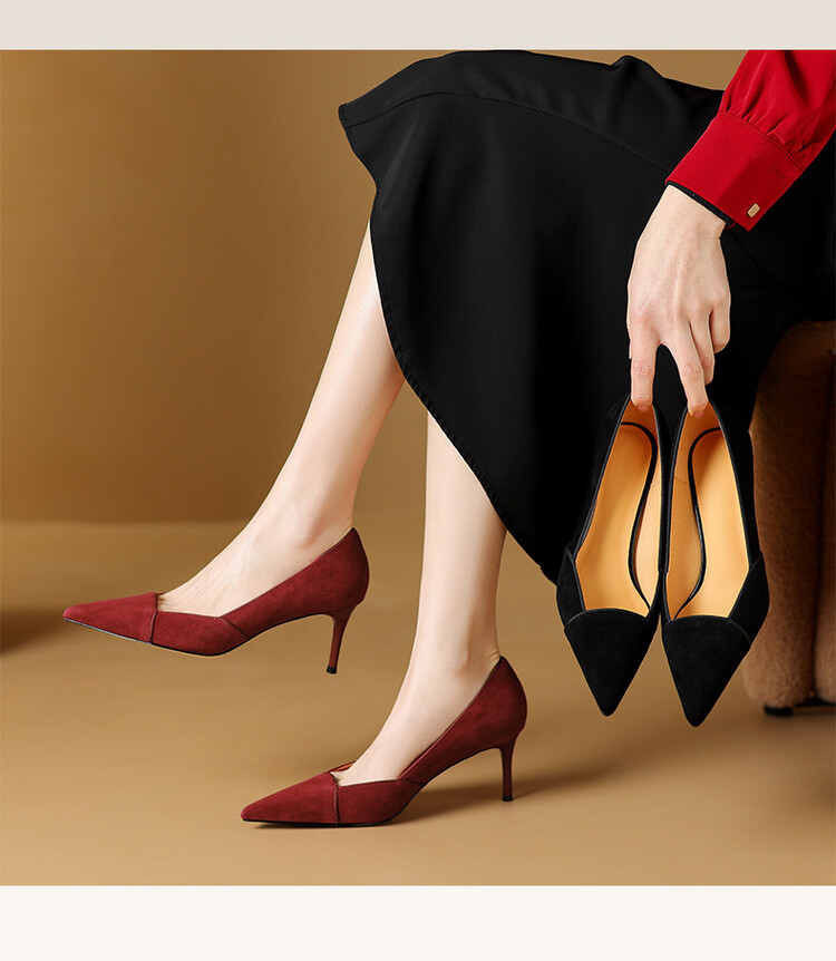 【预售5天】春季新款,拼接酒红色浅口单鞋女法式尖头细跟百搭气质高跟鞋DB&M5850