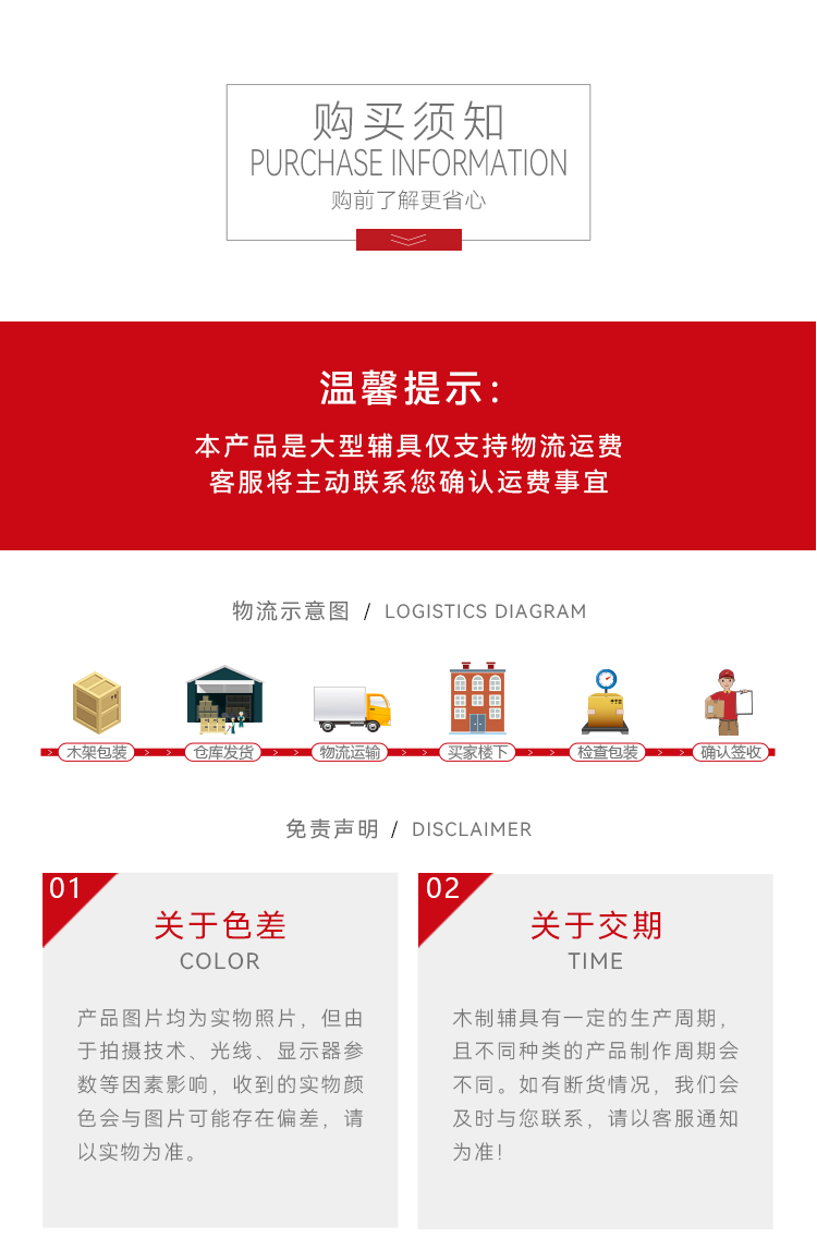 温馨提示:基于有些自然保护区限制木制品进入,安徽黄山等自然保护区地发货需要林业局开具“植物检疫证书 ”才能发货。现在工厂协助输需要收费300元一次。办理流程需7个工作日左右,谢谢您的理解!