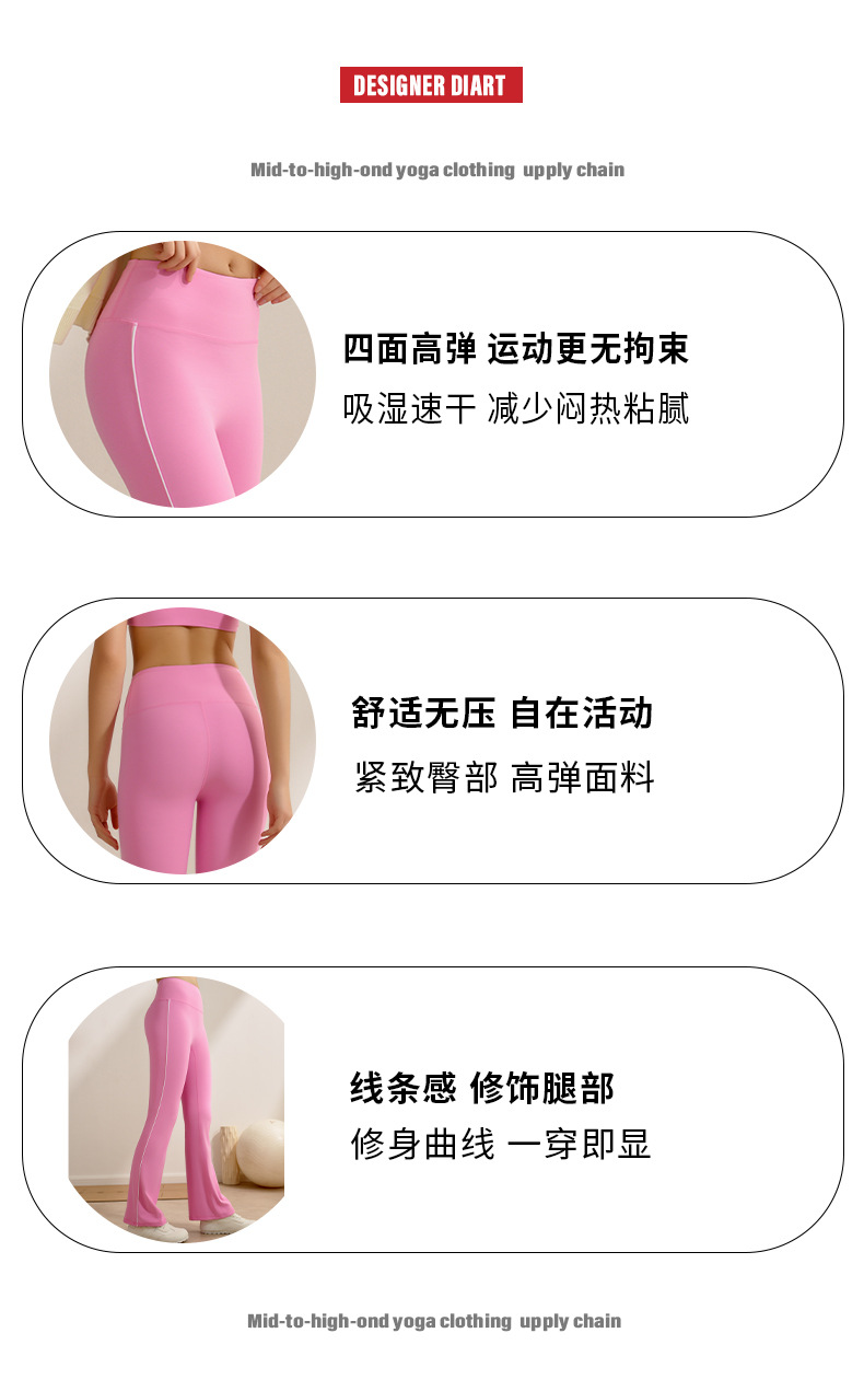 跃牌【安琪拉系列】线条瑜伽长裤喇叭裤高腰提臀户外运动显瘦阔腿微喇瑜伽裤CK5407