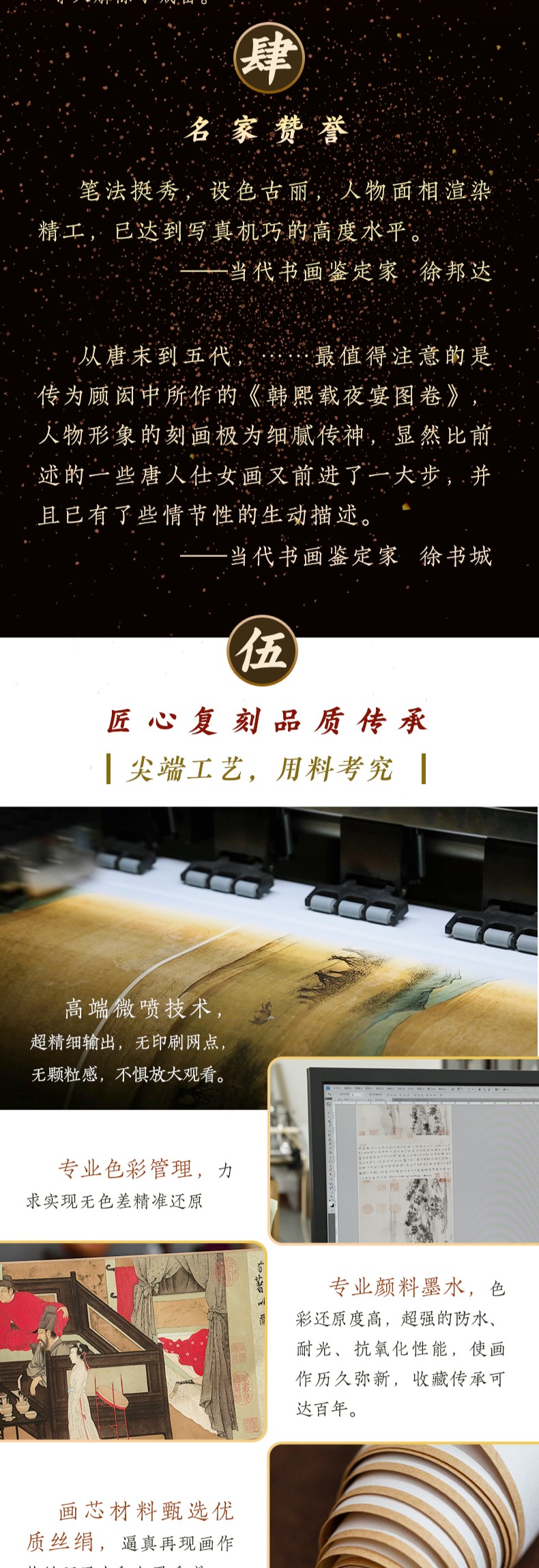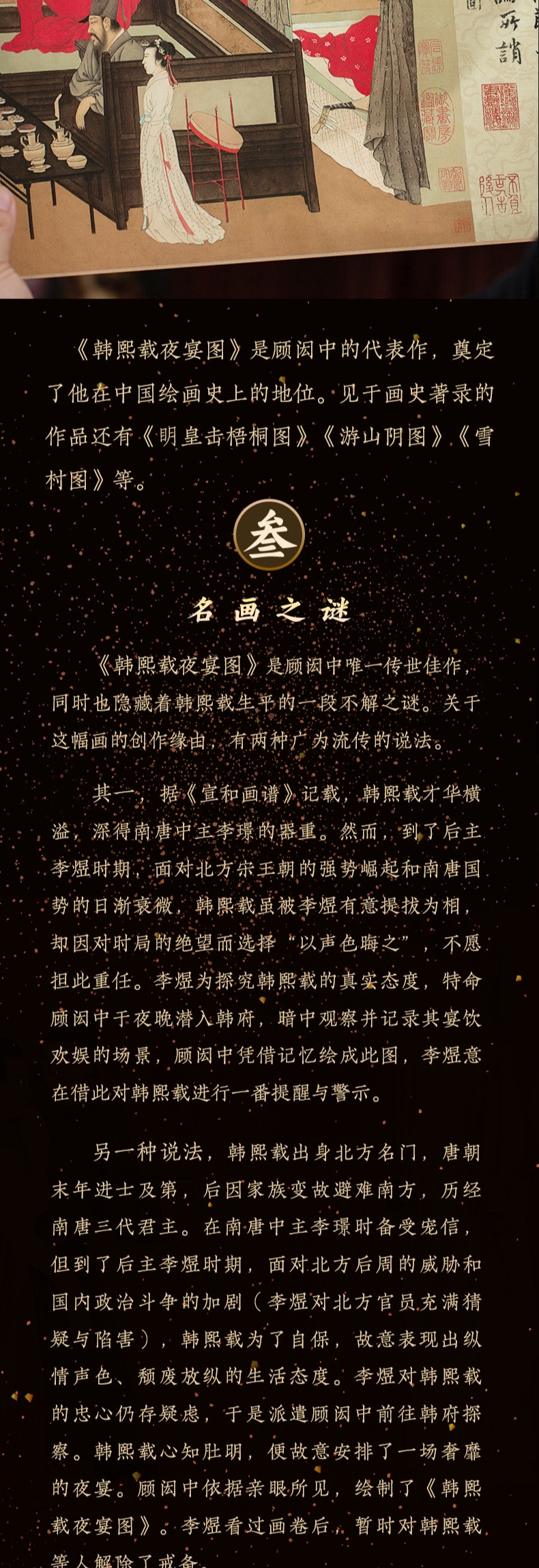 (春节不打烊)《韩熙载夜宴图》全卷画作由经验丰富的装裱工匠,历经17道工序,精工细作而成,复刻原作风貌,笔墨变化纤毫毕现
