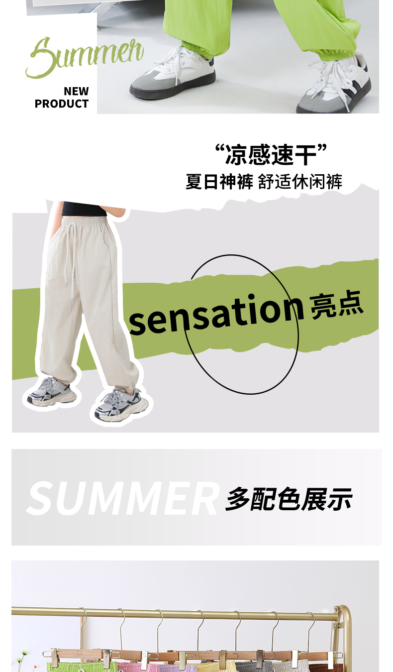 【秒杀】【39.9元/2件任选】儿童夏季速干裤男童凉凉裤女童休闲裤透气防蚊裤夏季裤子