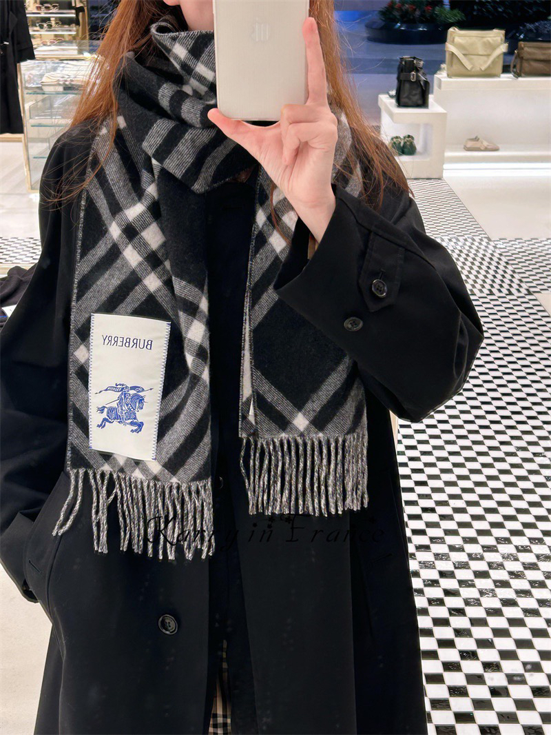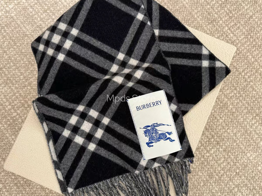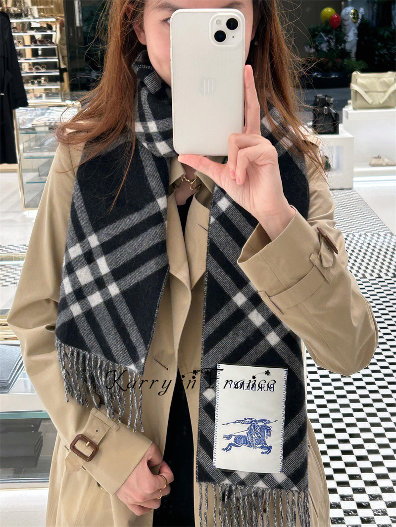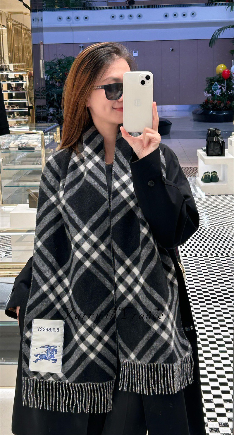 现货 Burberry 博柏利 新款格纹战马双面羊绒围巾披肩 流苏款