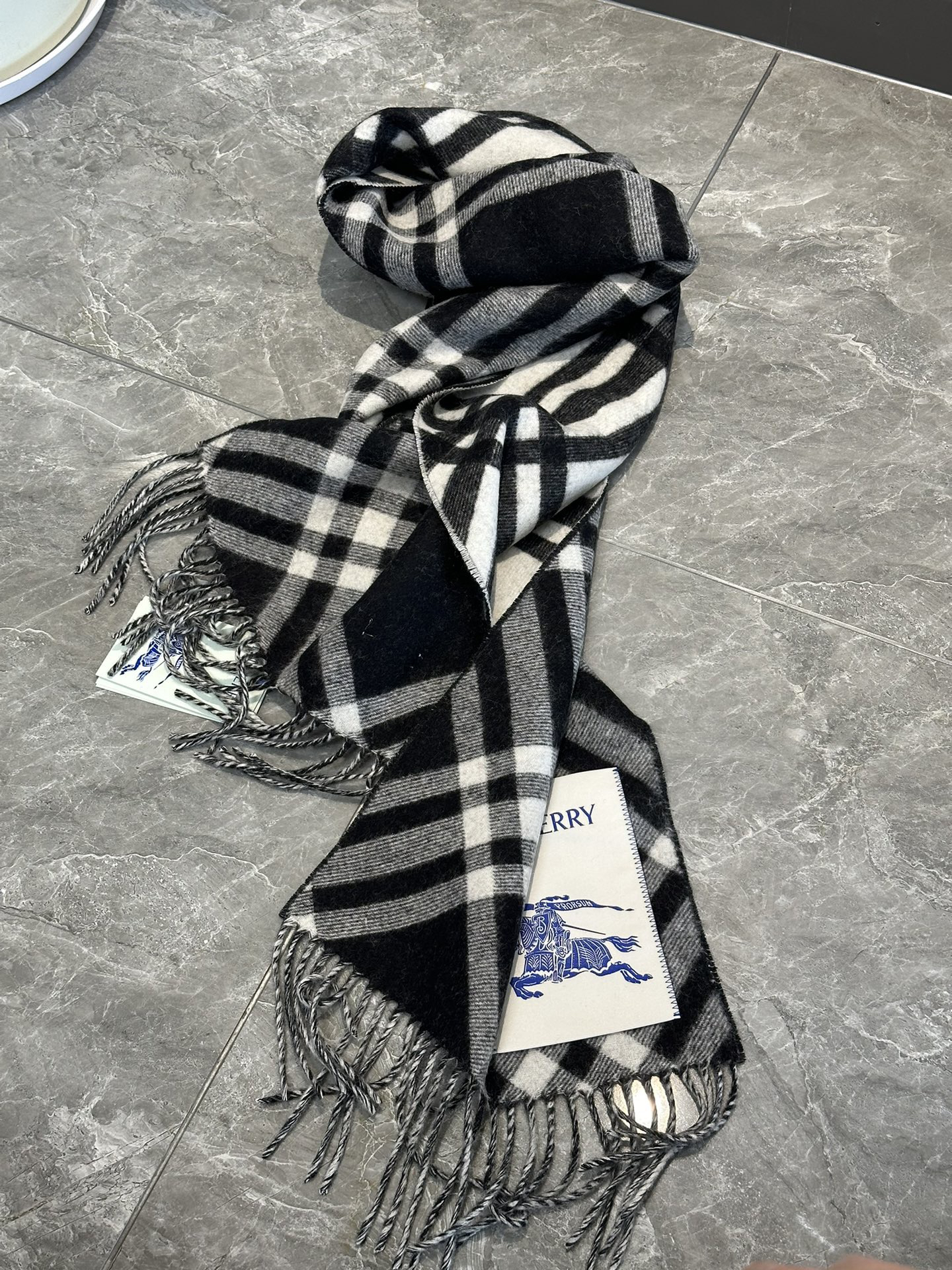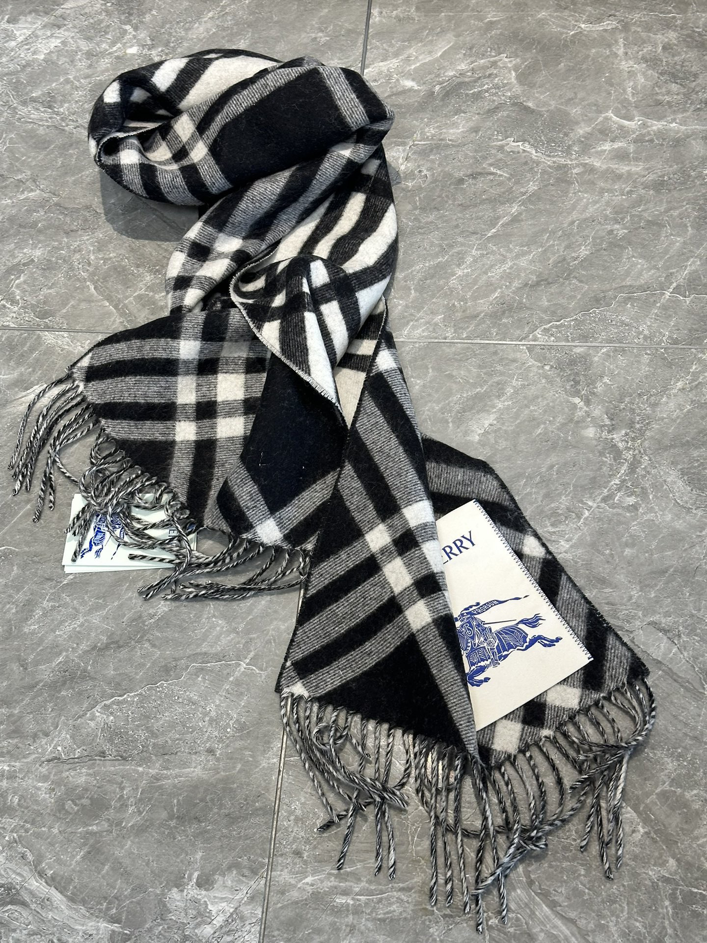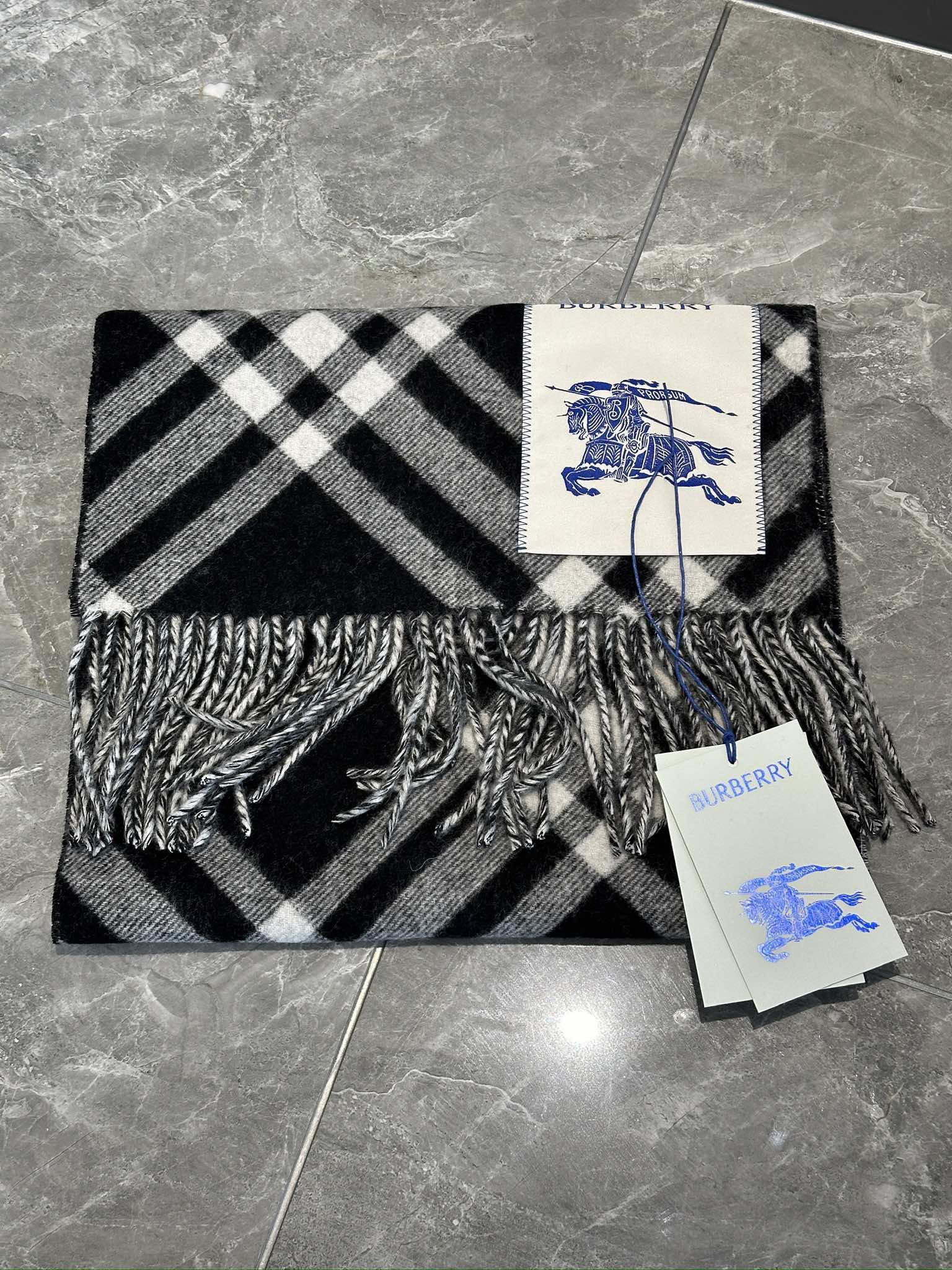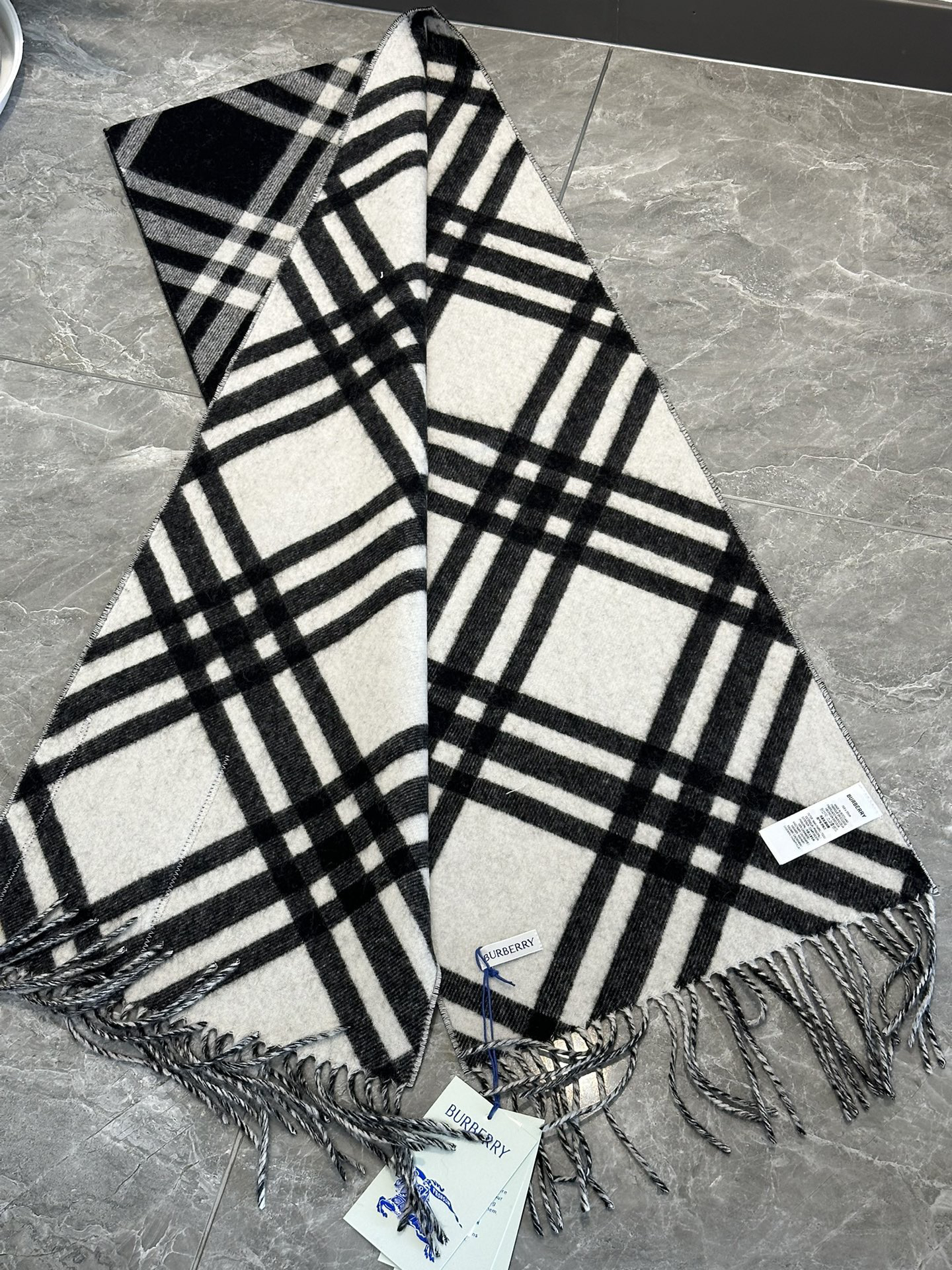 现货 Burberry 博柏利 新款格纹战马双面羊绒围巾披肩 流苏款