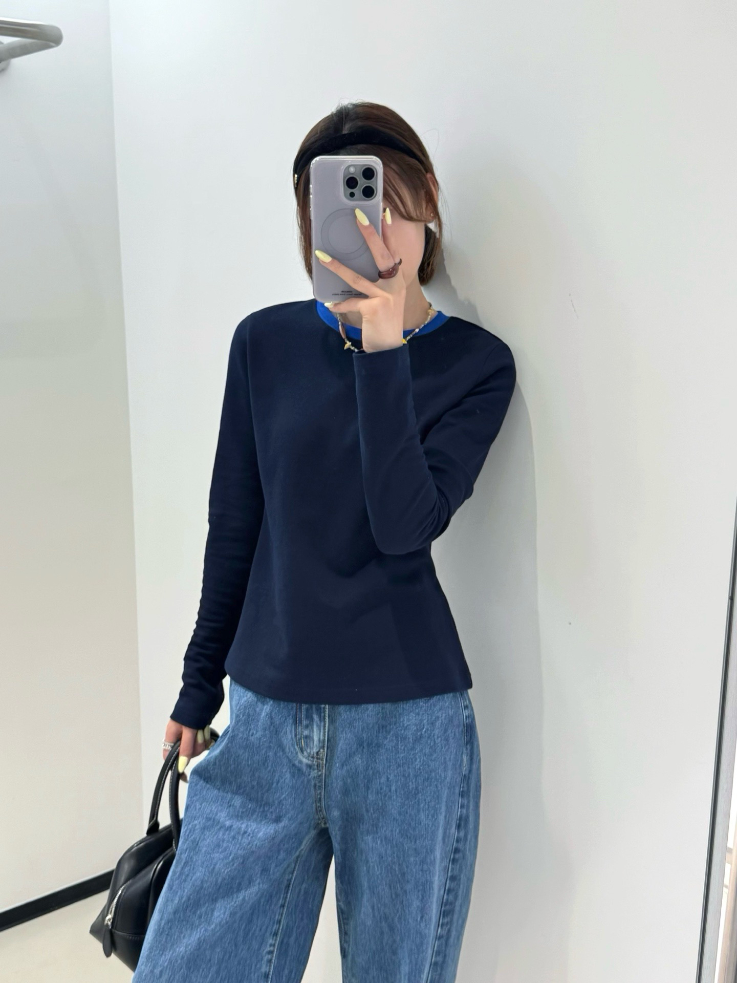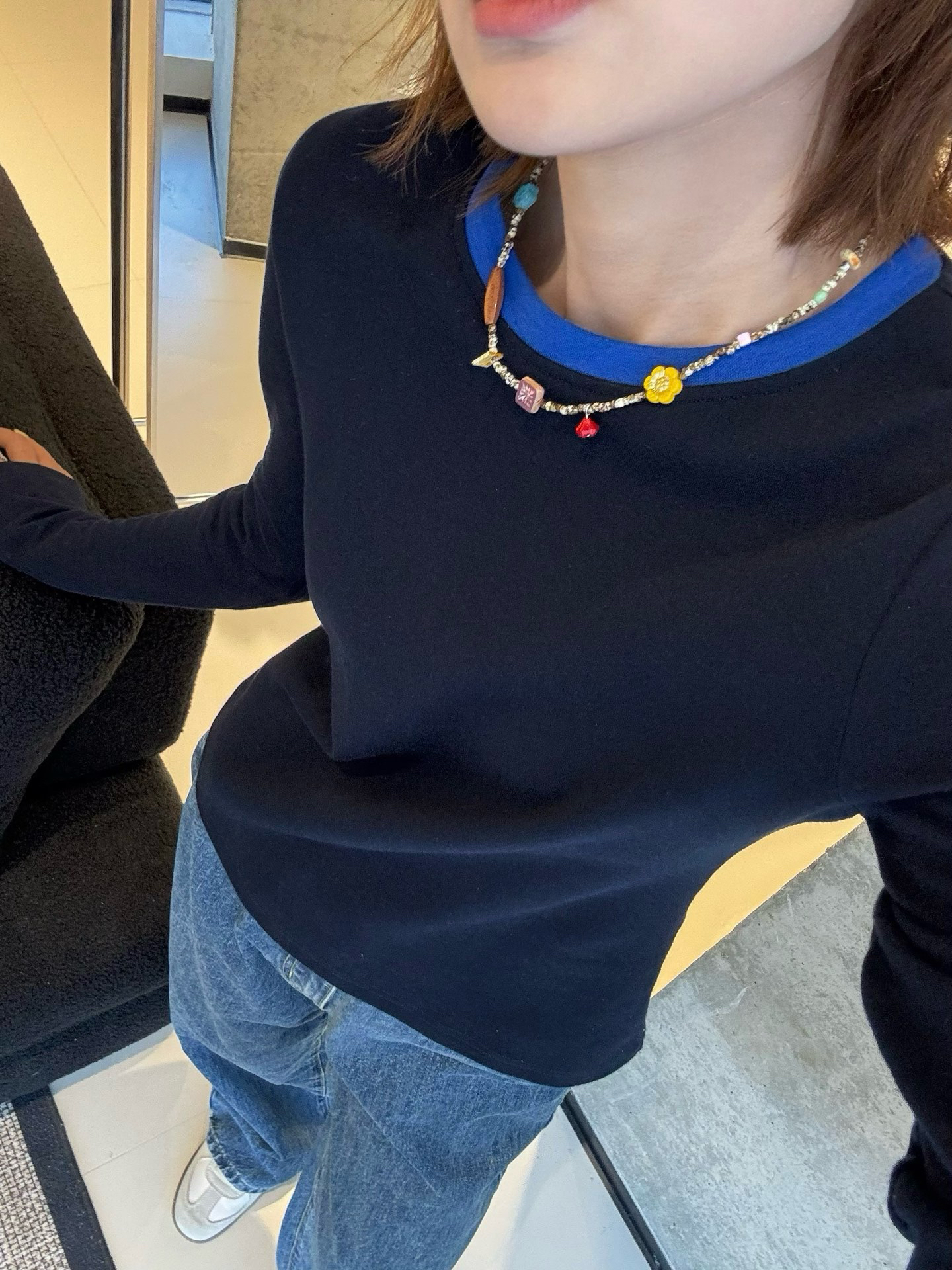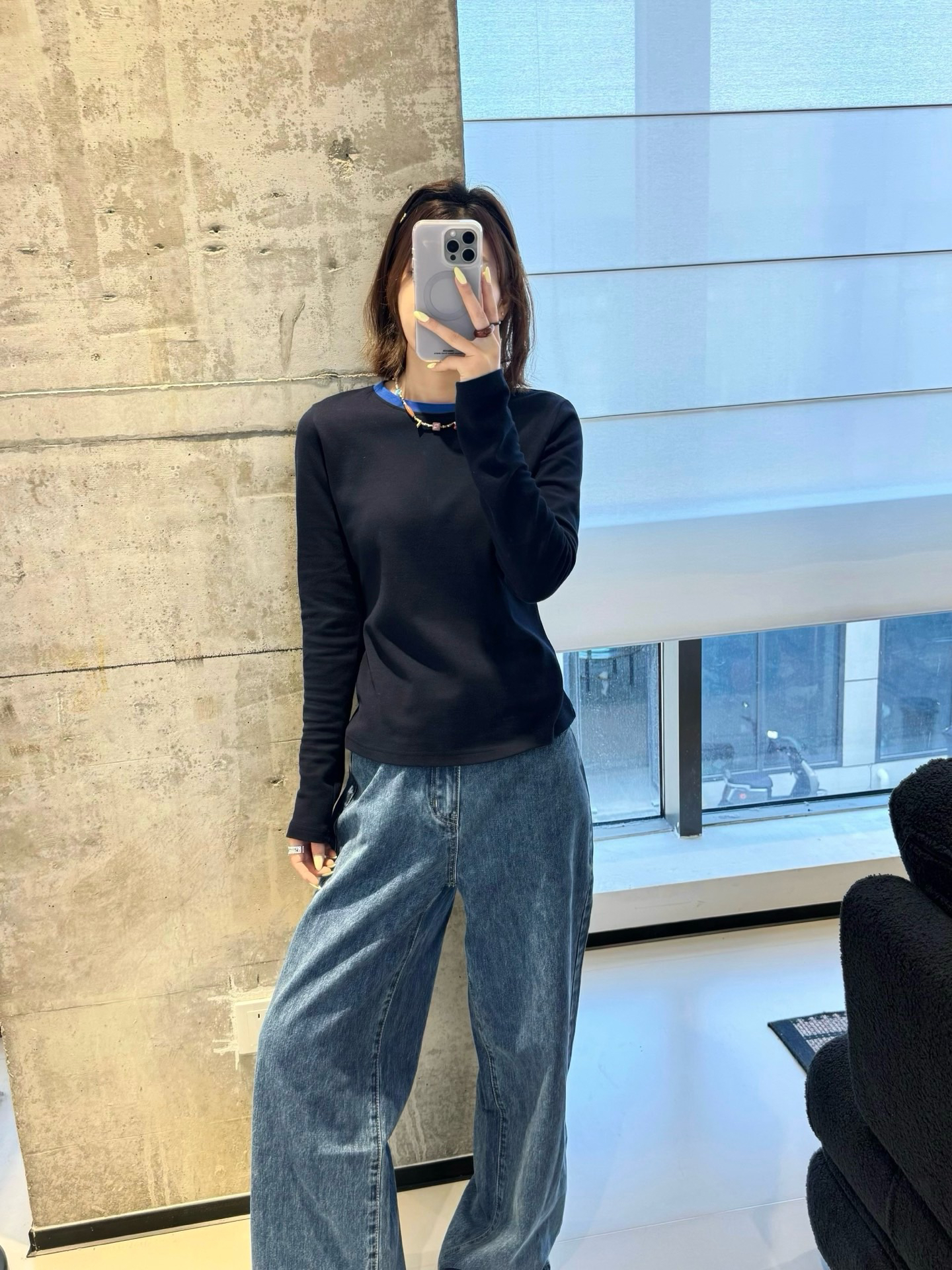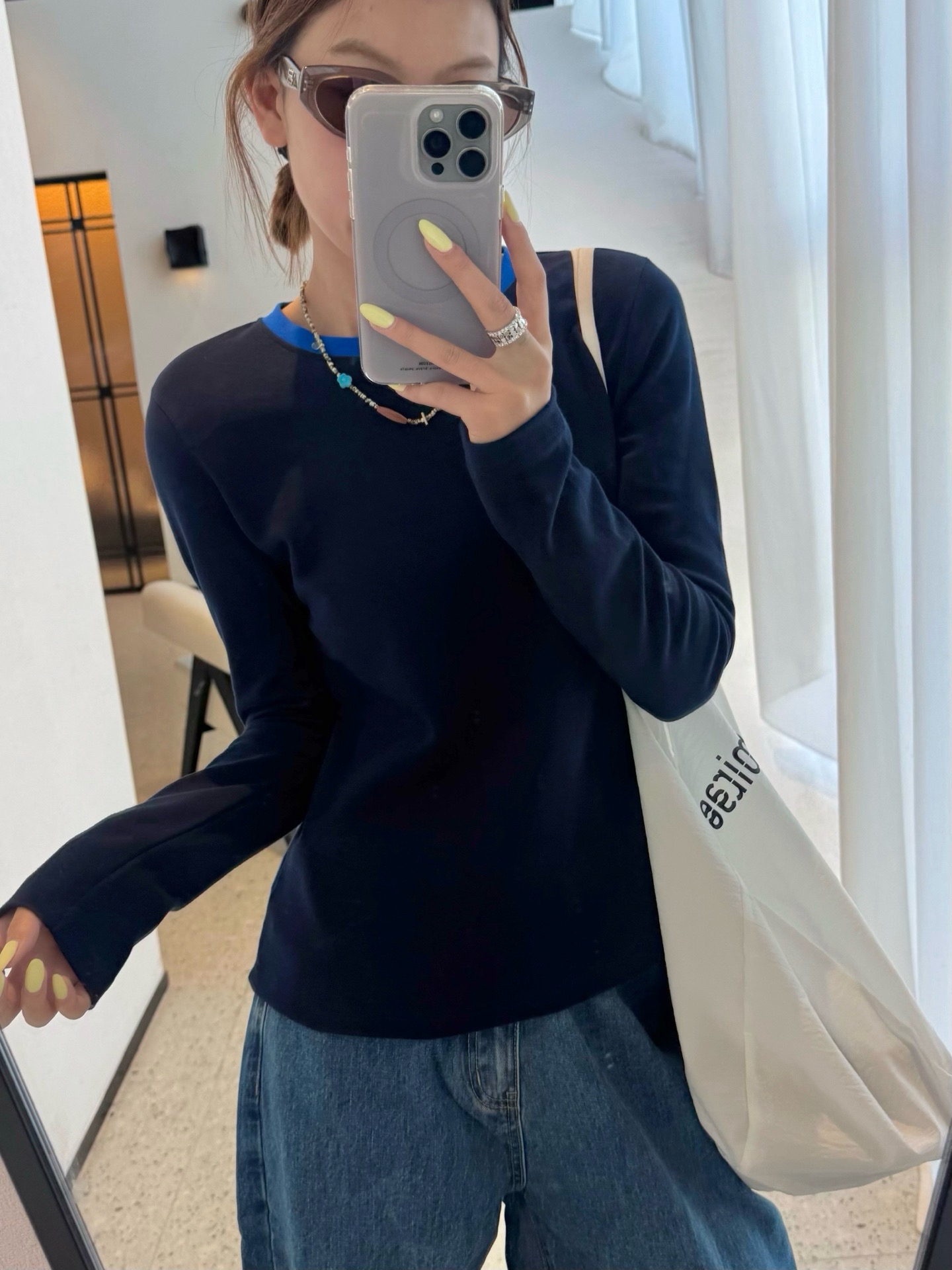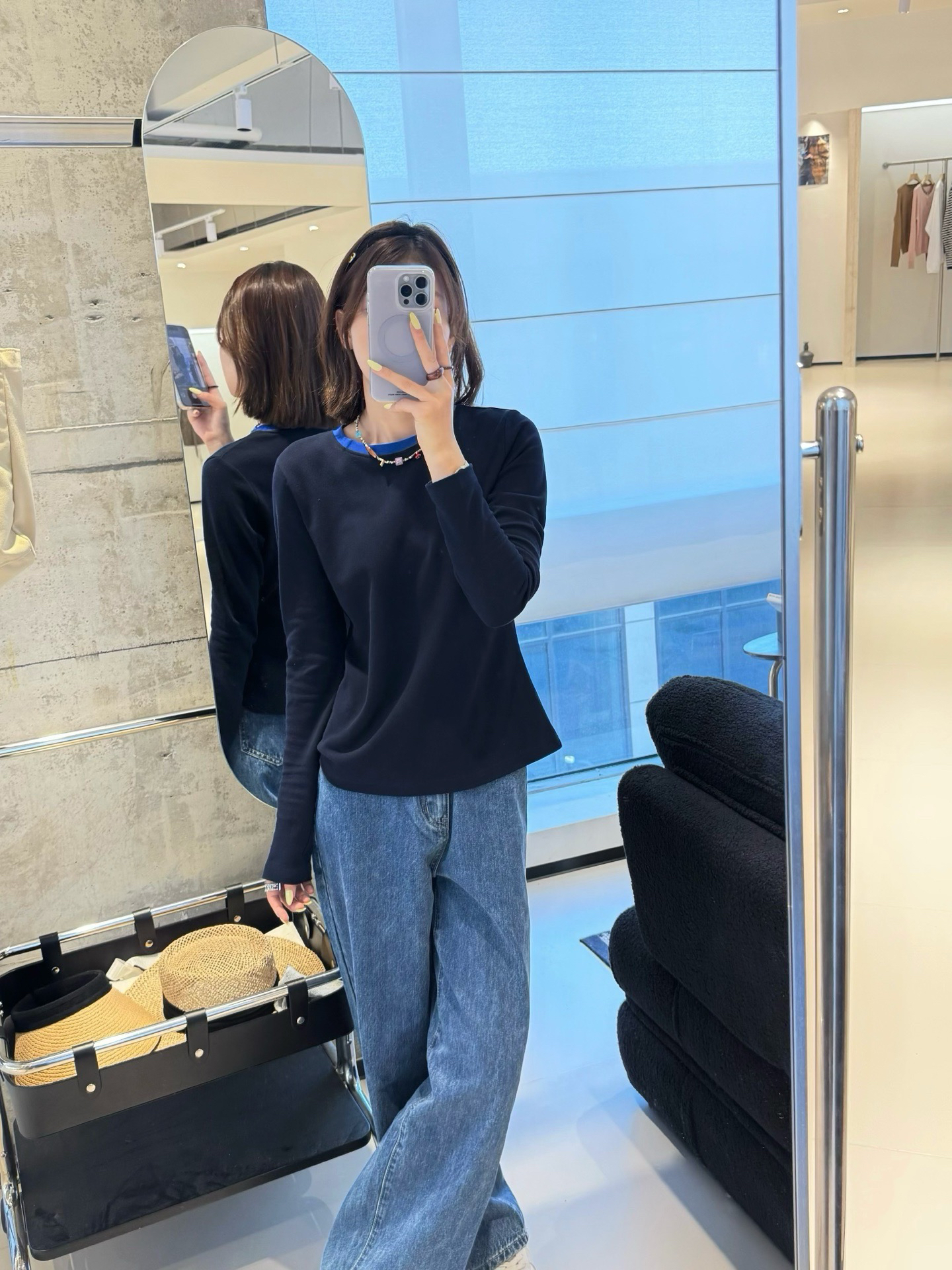💰韩国今年大热的设计师品牌环保复合假两件打底衫