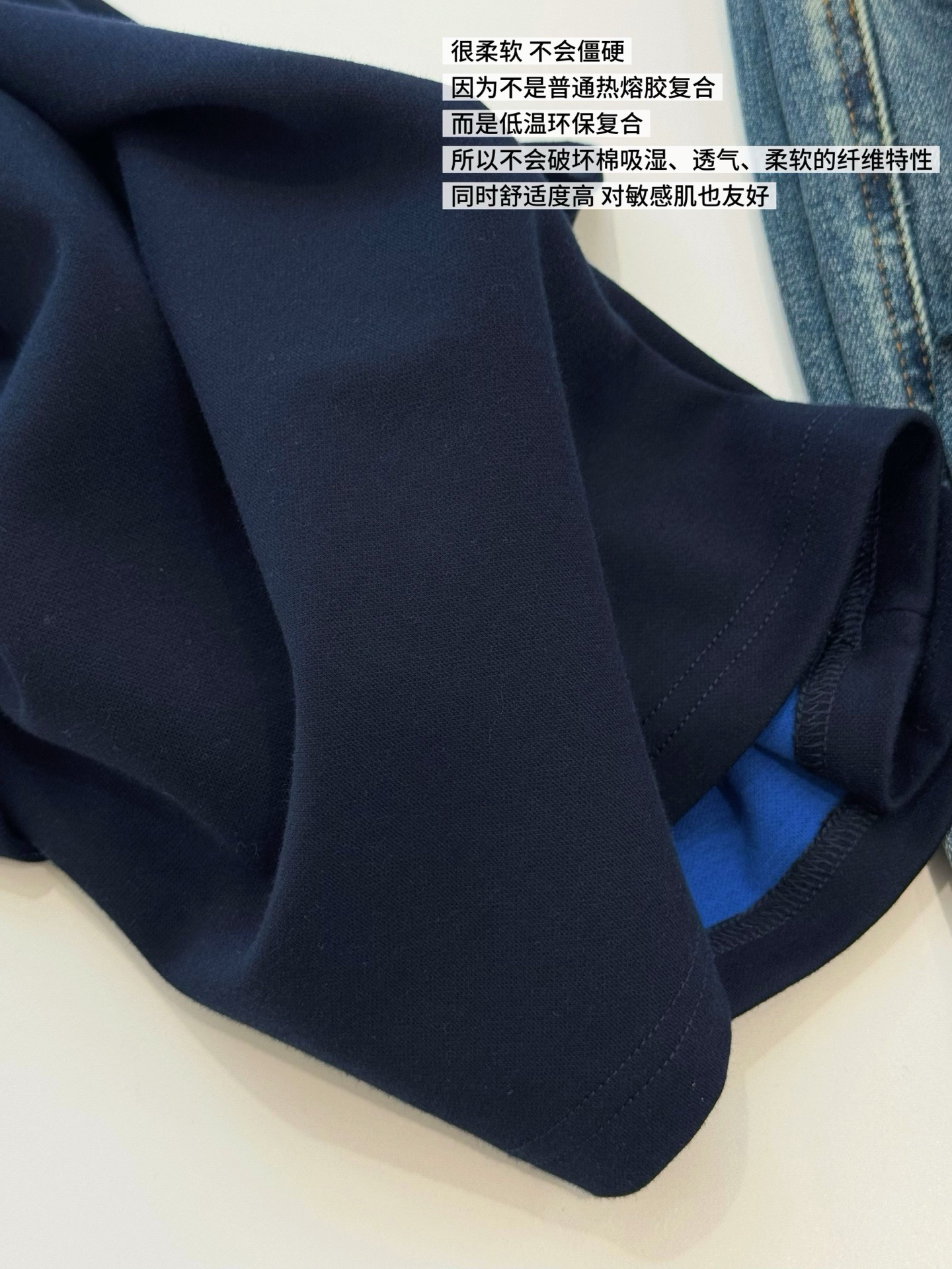 采用生物基PLA热熔胶+低温工艺(胶膜可降解)不破坏棉纤维的舒适度和天然可降解性