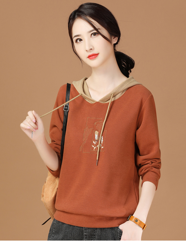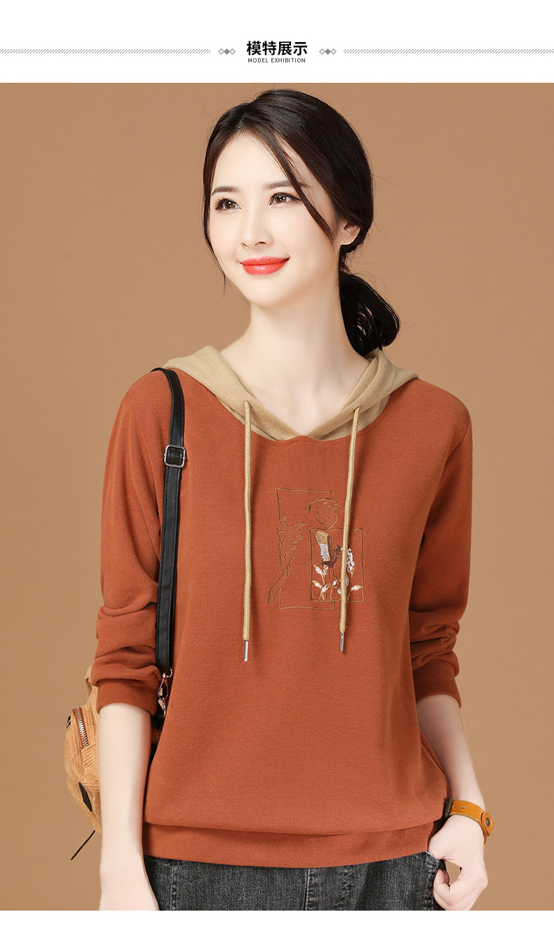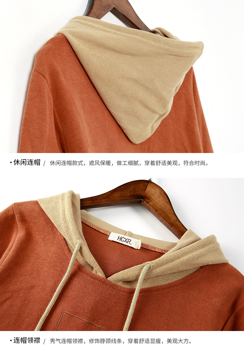 连帽拼接长袖套头卫衣,宽松韩版刺绣上衣GRM-D2689