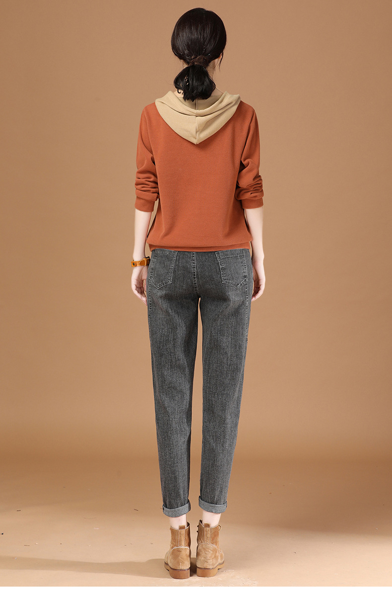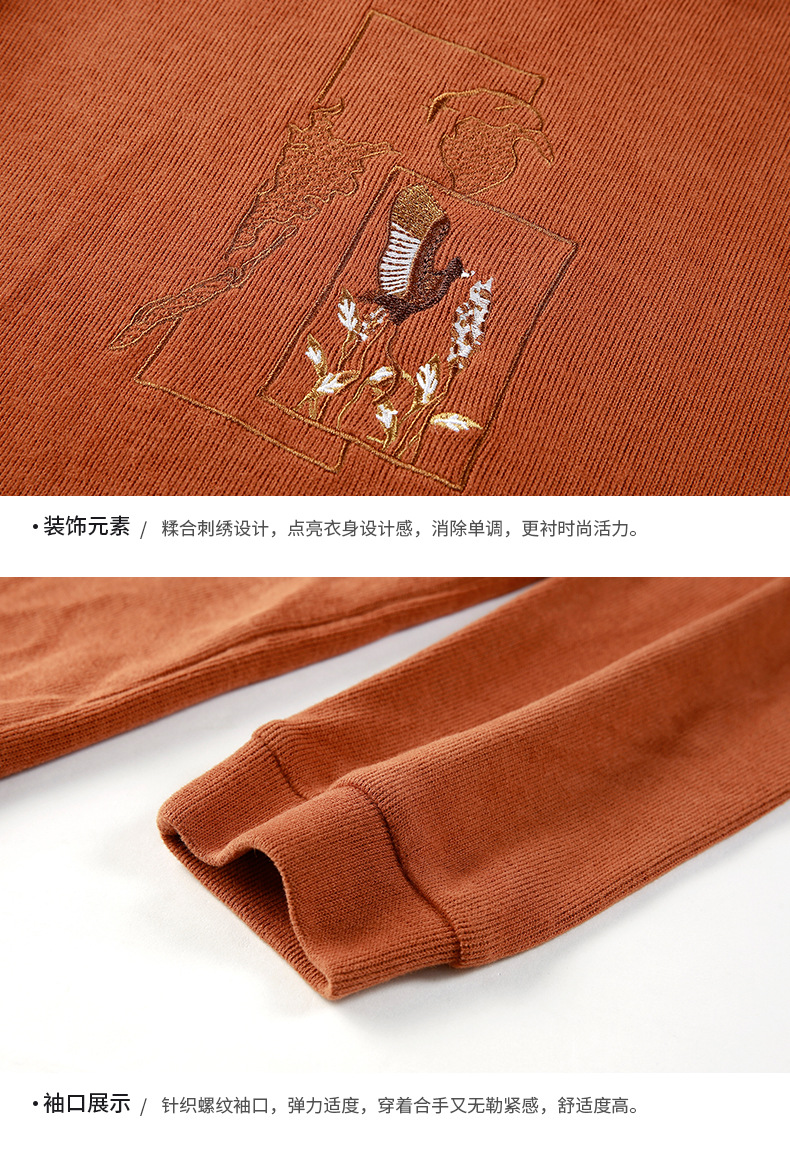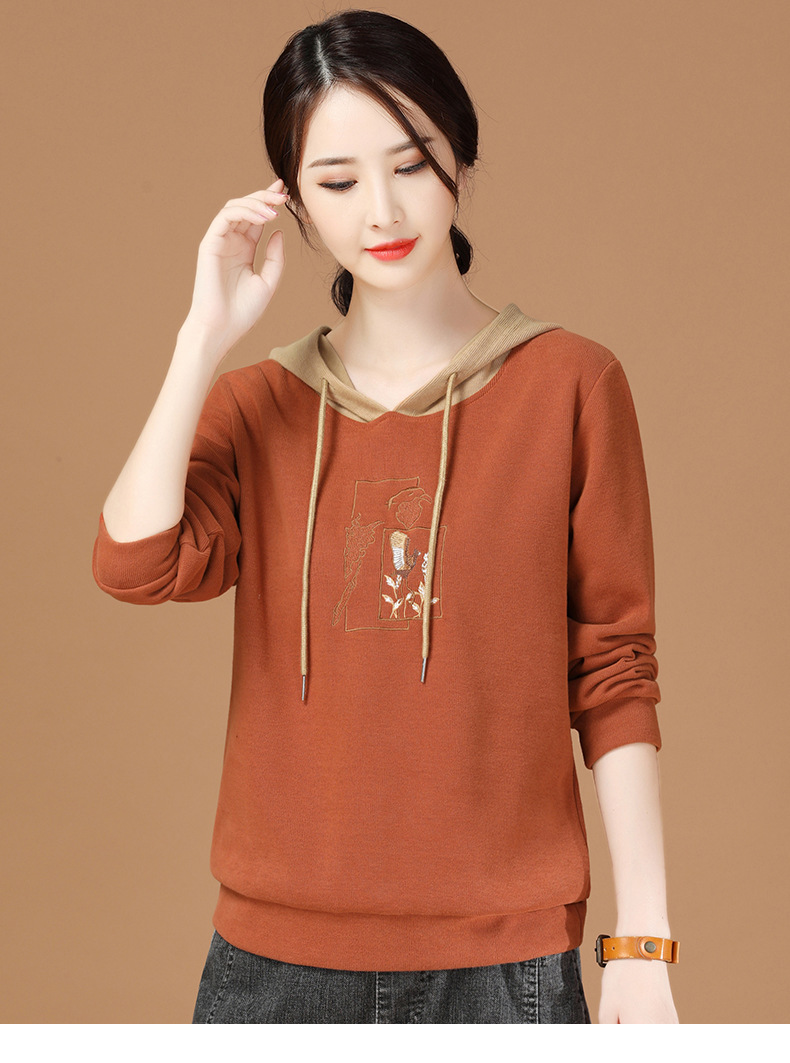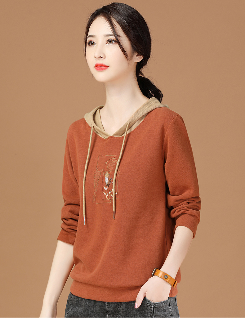 连帽拼接长袖套头卫衣,宽松韩版刺绣上衣GRM-D2689