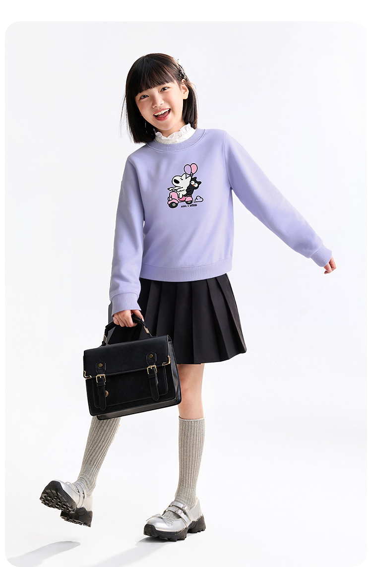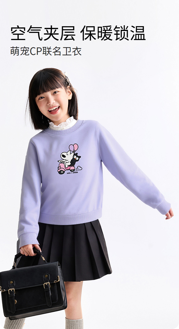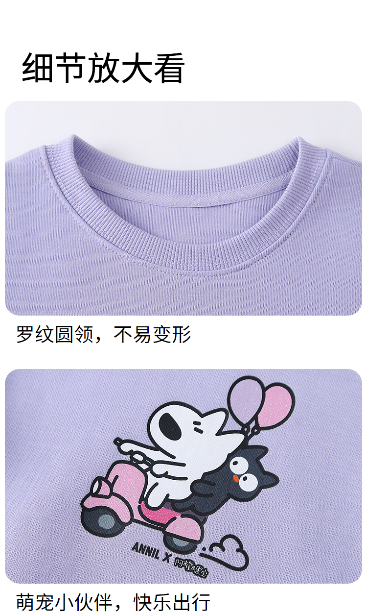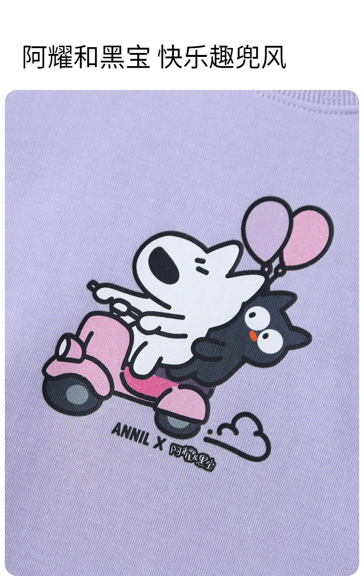 Annil联名款【阿耀和黑宝】女童圆领卫衣秋季新款安奈儿童装TG531719