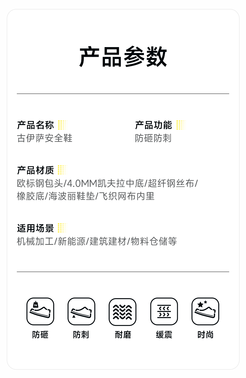 新款古伊萨劳保鞋防砸防刺穿欧标钢包头达标4.0㎜凯夫拉底橡胶底防滑耐磨