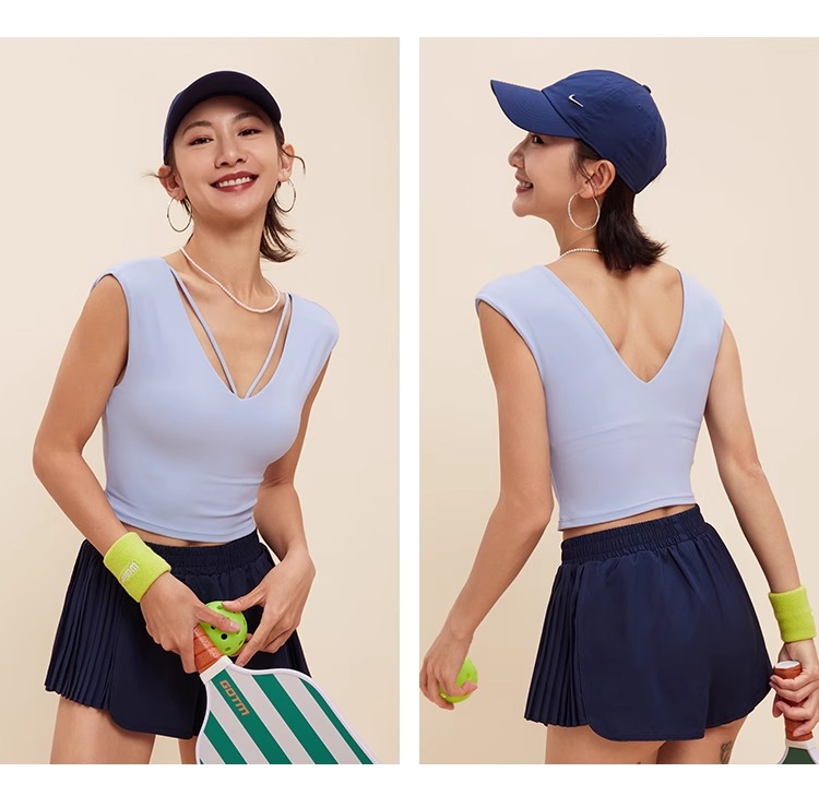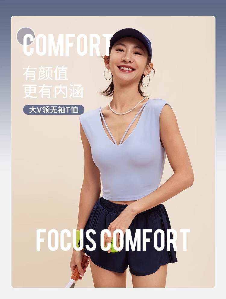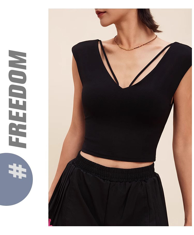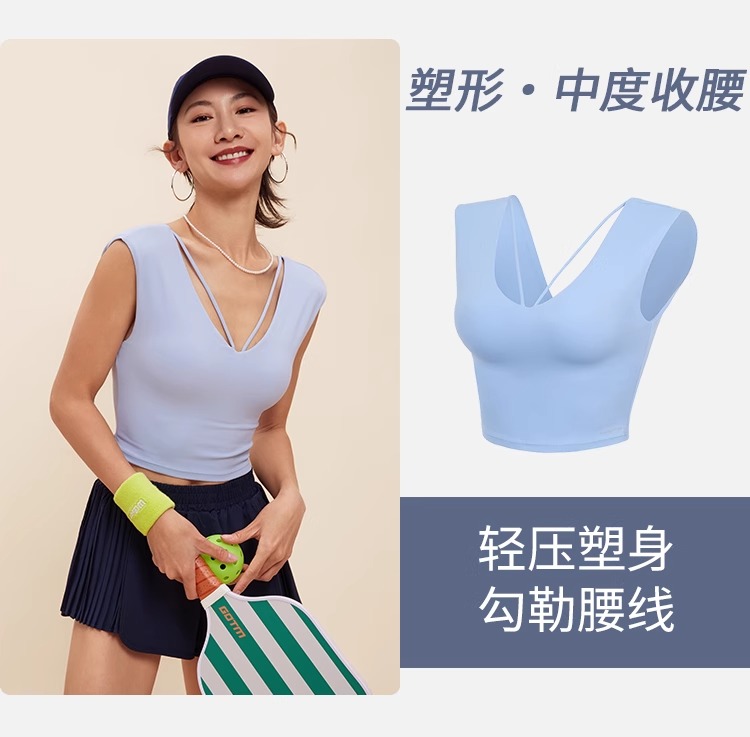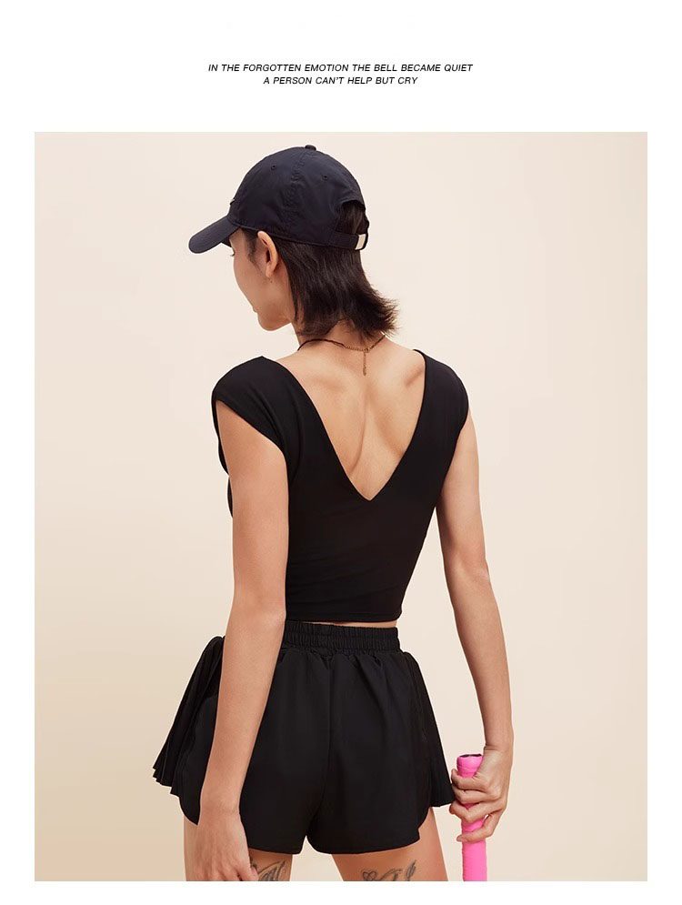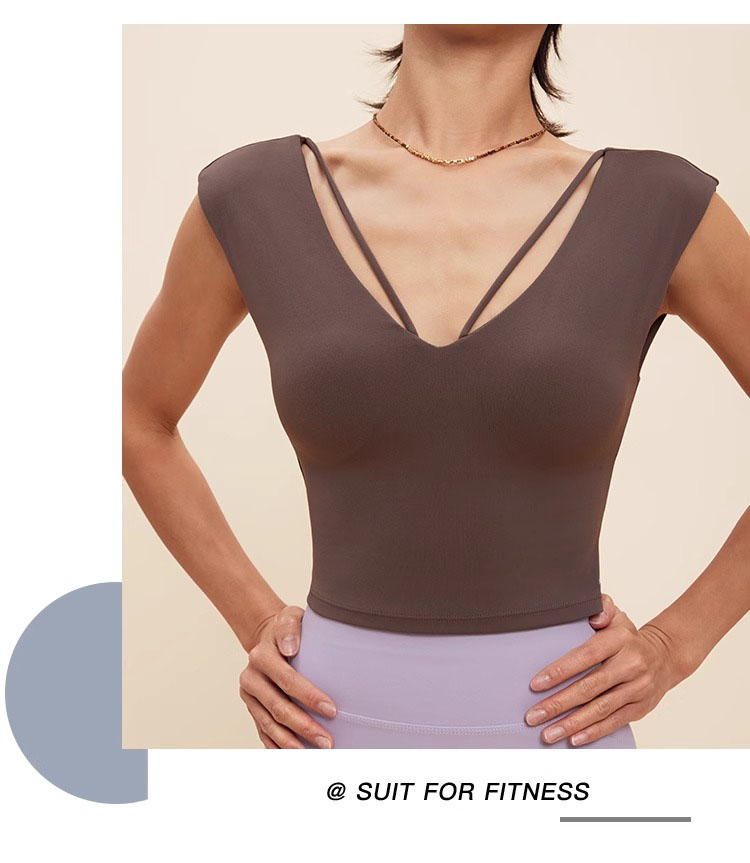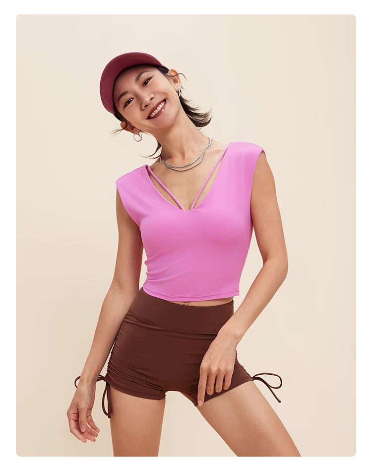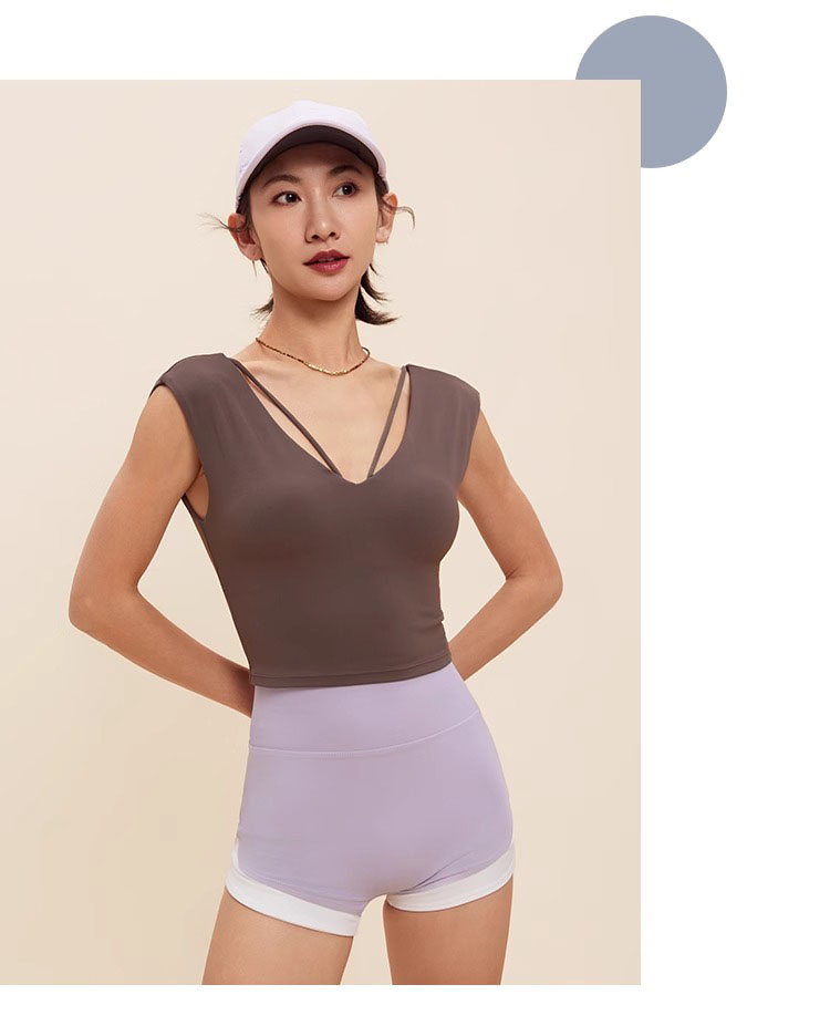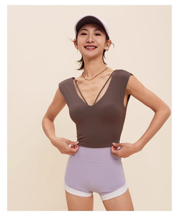 跃牌【禅语梵心】V领显瘦运动短袖内衣女夏速干休闲t恤修身瑜伽服健身上衣WX5412