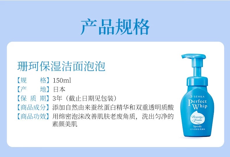【门店直发】资生堂SENKA珊珂洗面奶保湿洁面泡沫保湿清洁150ml
