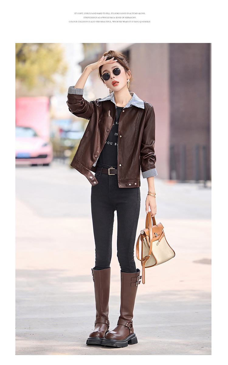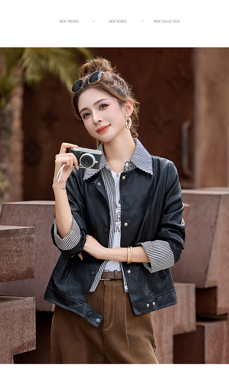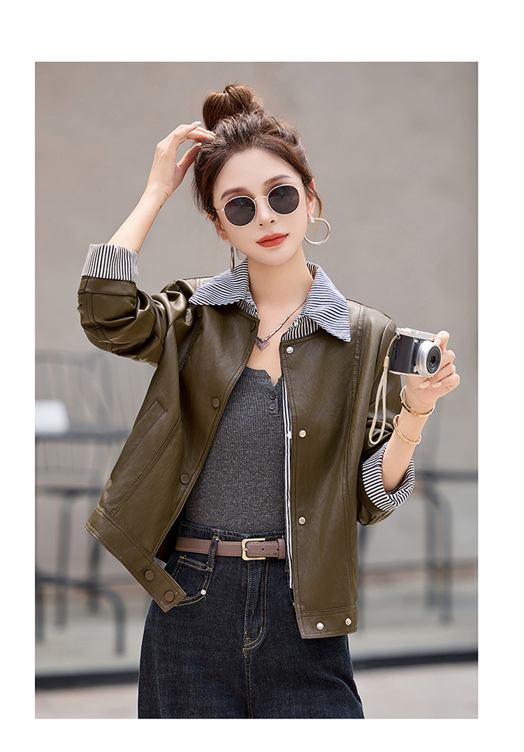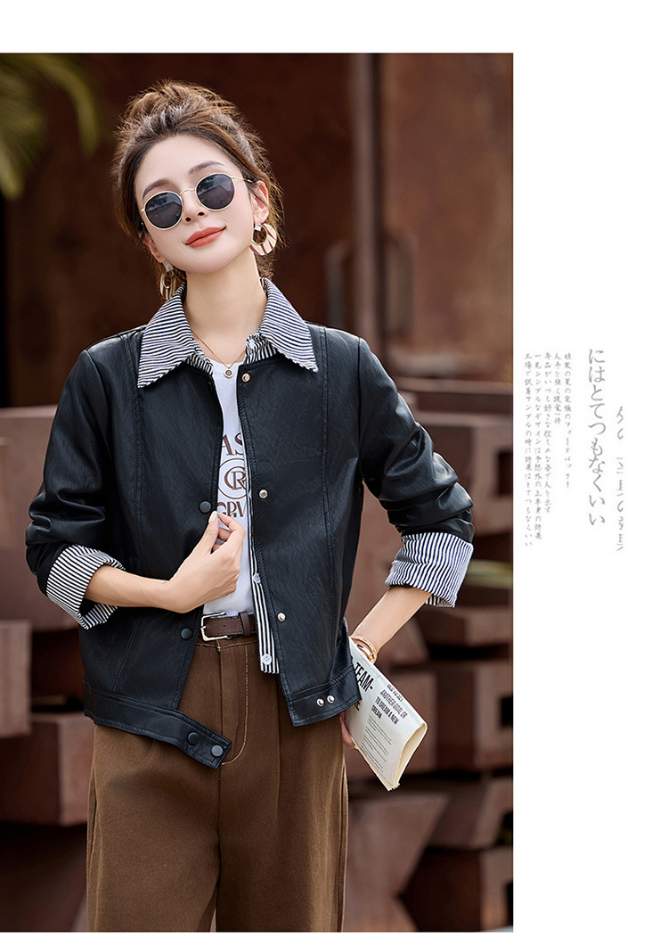 假两件皮衣外套女2025秋季新款设计感拼接气质条纹皮夹克上衣 商品缩略图0 假两件皮衣外套女2025秋季新款设计感拼接气质条纹皮夹克上衣 商品缩略图1 假两件皮衣外套女2025秋季新款设计感拼接气质条纹皮夹克上衣 商品缩略图2 假两件皮衣外套女2025秋季新款设计感拼接气质条纹皮夹克上衣 商品缩略图3 假两件皮衣外套女2025秋季新款设计感拼接气质条纹皮夹克上衣 商品缩略图4