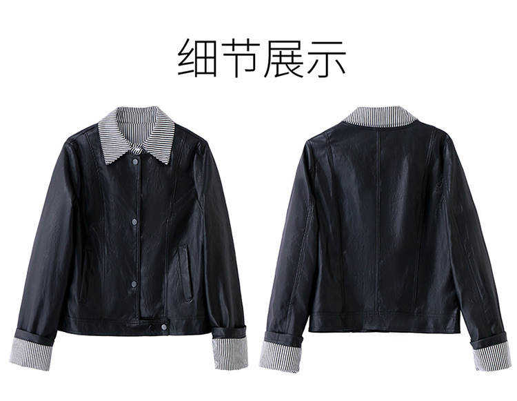 假两件皮衣外套女2025秋季新款设计感拼接气质条纹皮夹克上衣 商品图4