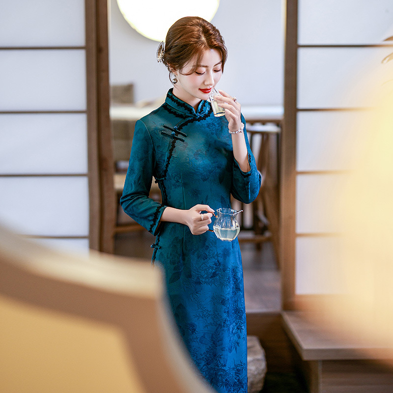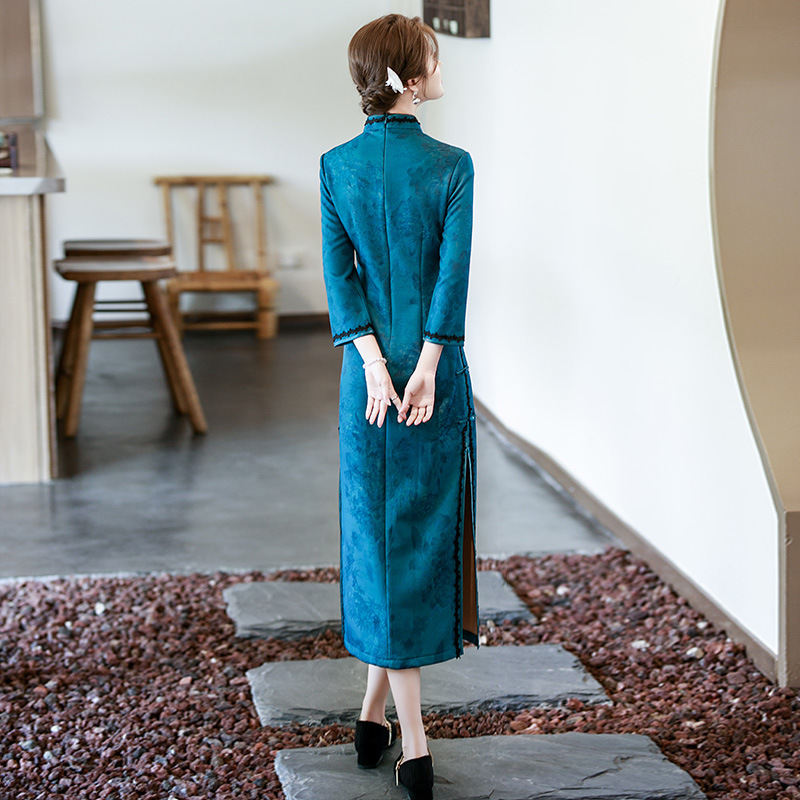 SC22059蓝色2025新款长款复合修身宴会气质年轻复古旗袍 商品图2