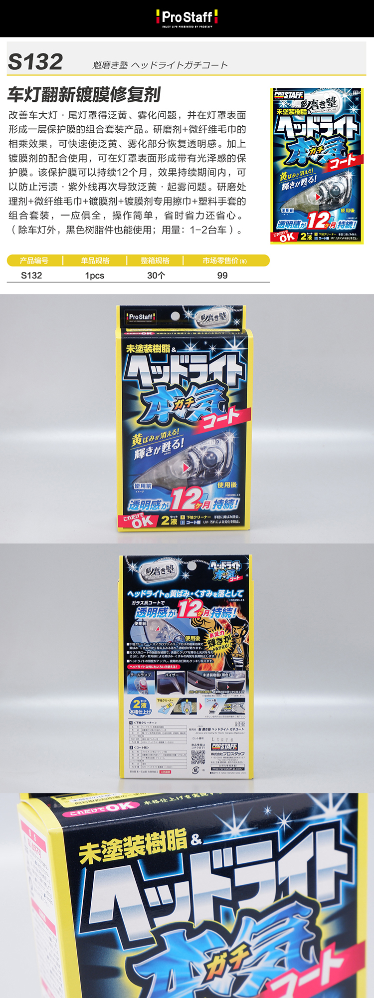 Prostaff专业大师 S-132车灯翻新镀膜修复剂