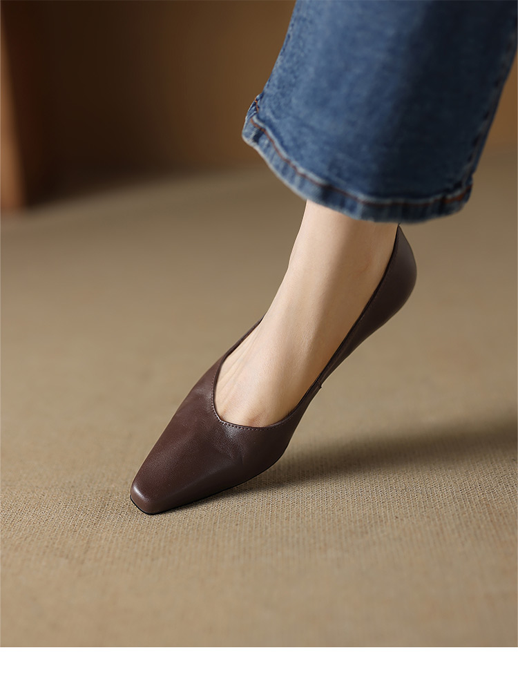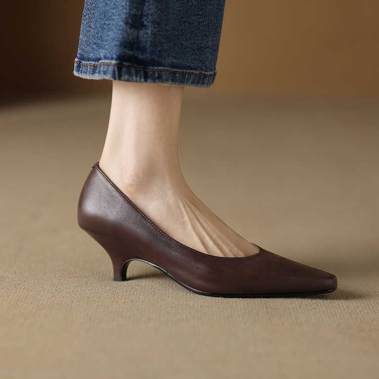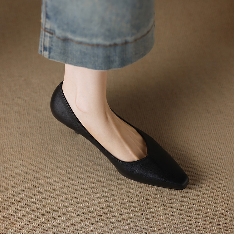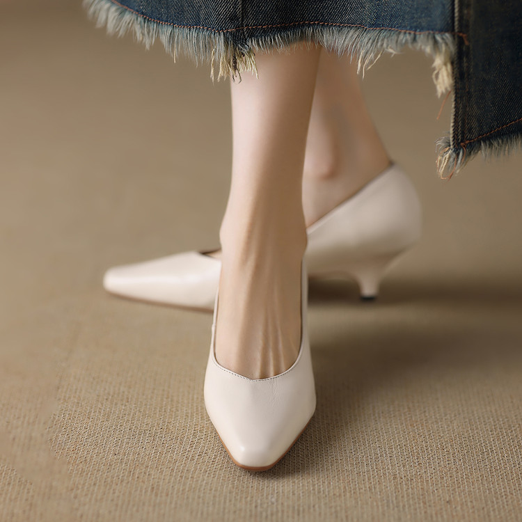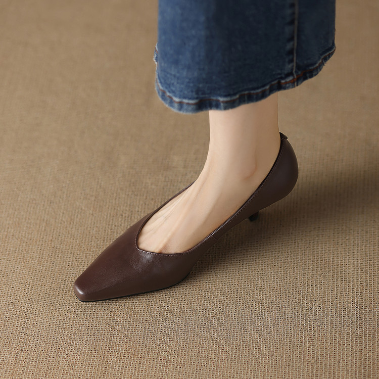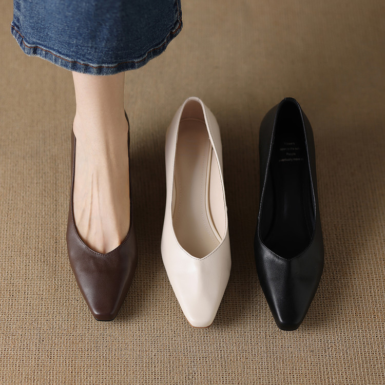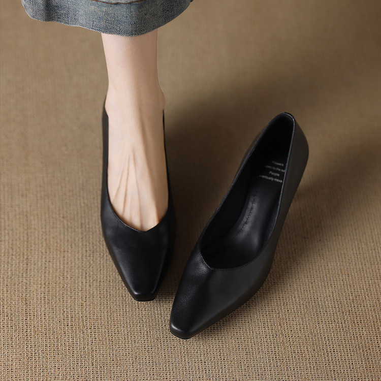 【预售5天】新款简约头层小牛皮尖头浅口单鞋三色通勤职业女鞋DMJFG&82659F