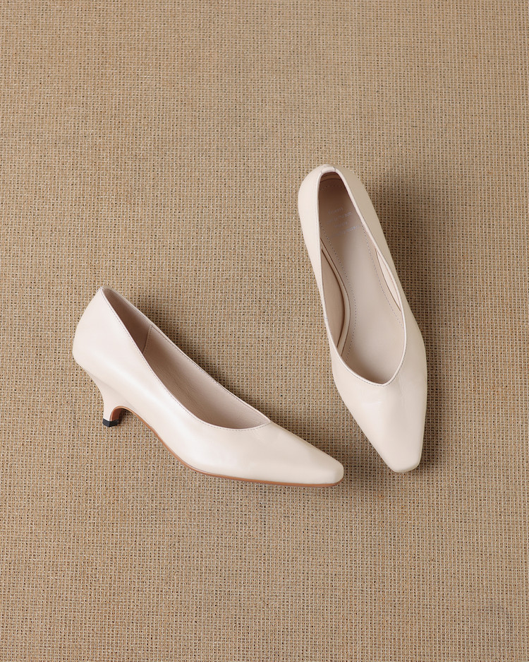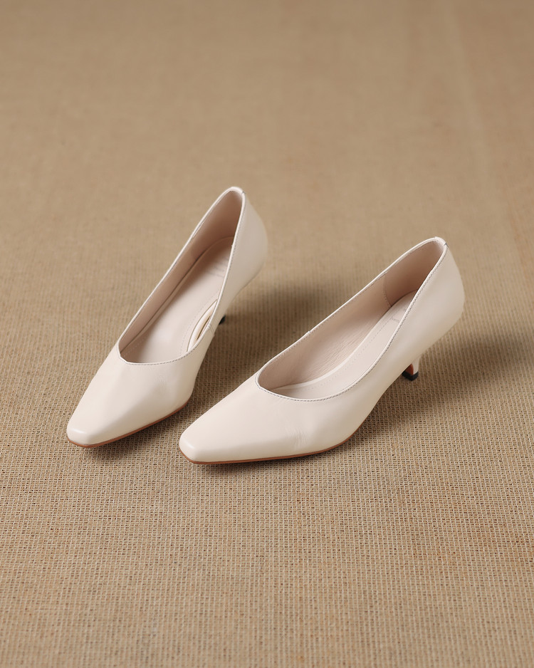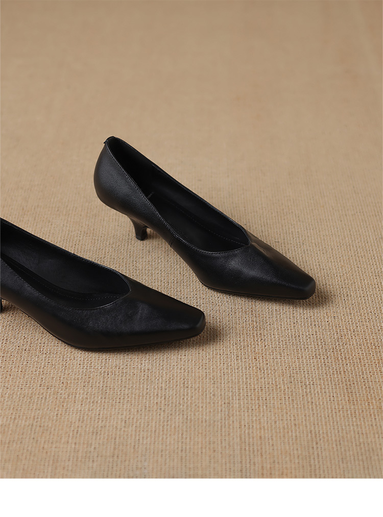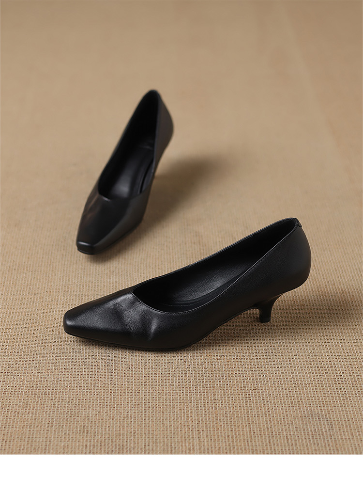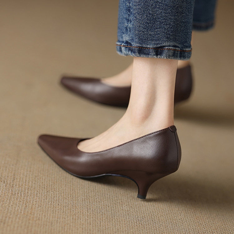 【预售5天】新款简约头层小牛皮尖头浅口单鞋三色通勤职业女鞋DMJFG&82659F