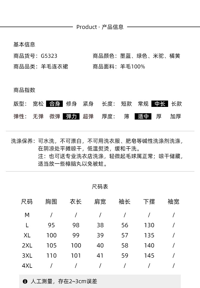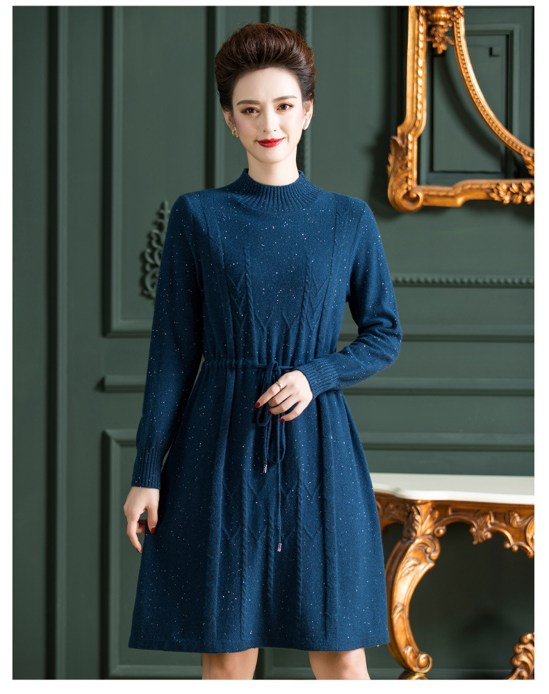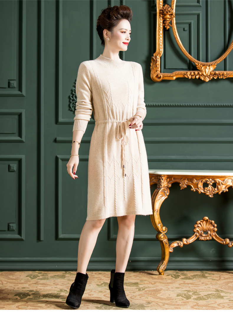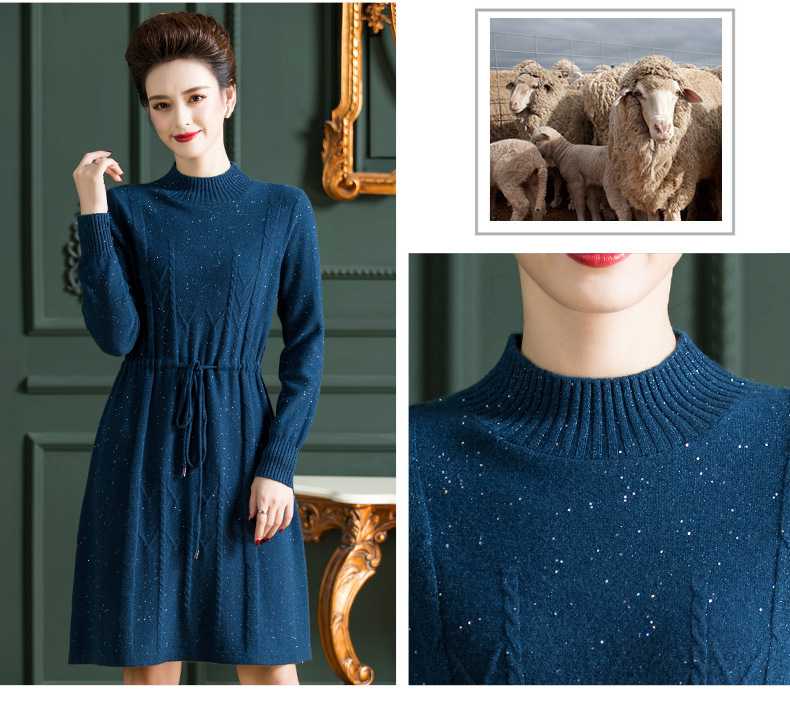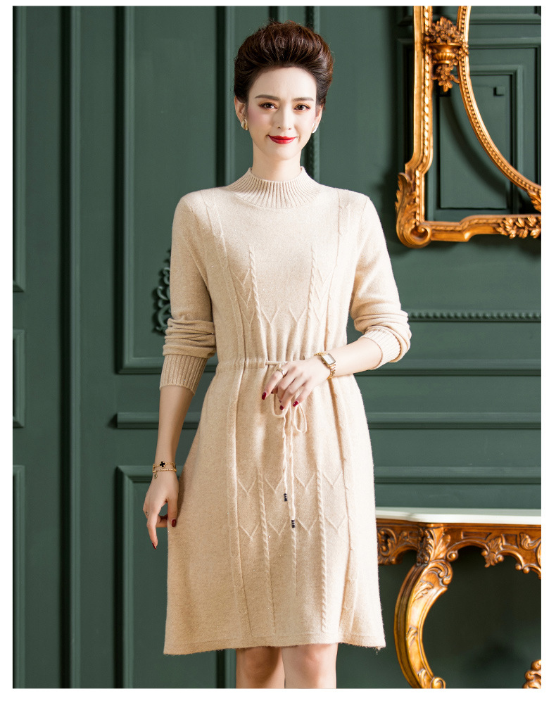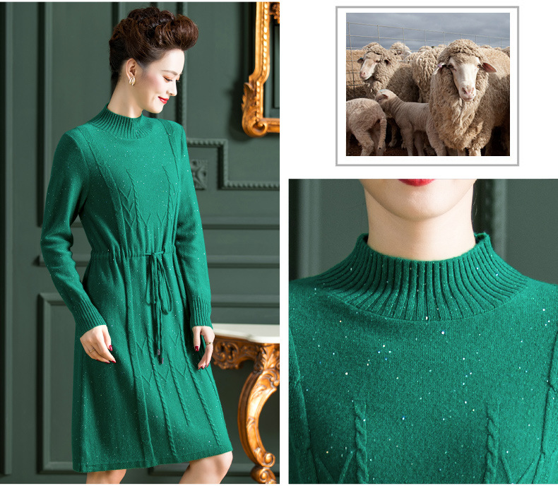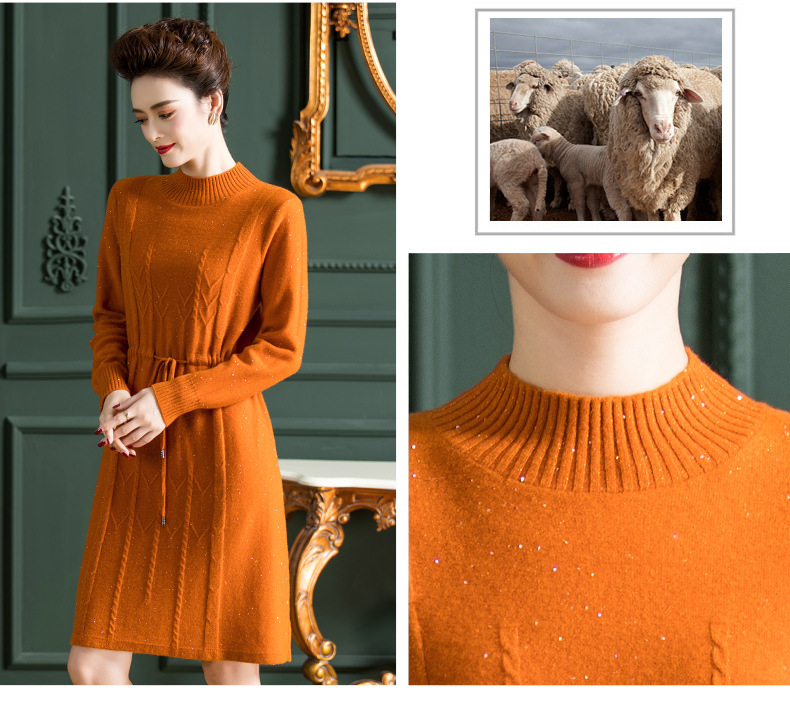 简约纯色,中长款羊毛衫羊毛连衣裙系带毛衣裙WY-G5323