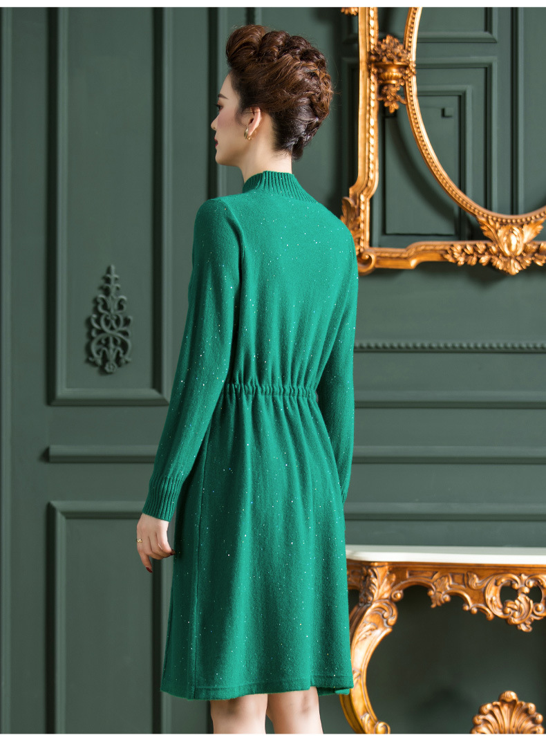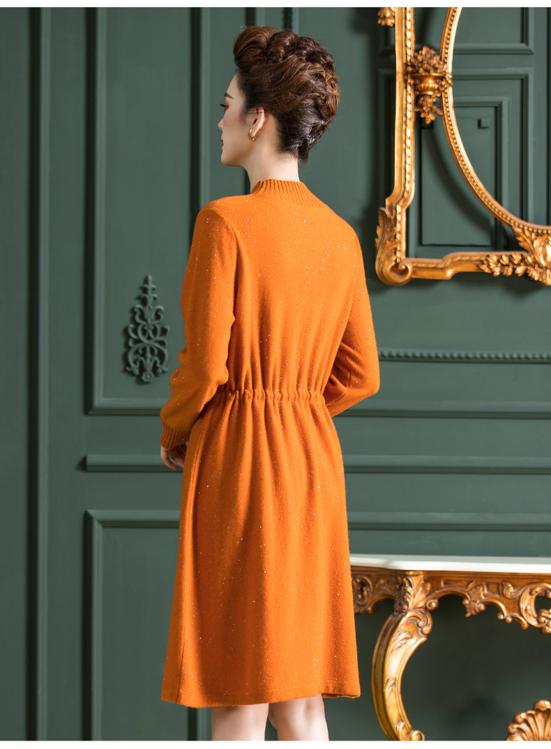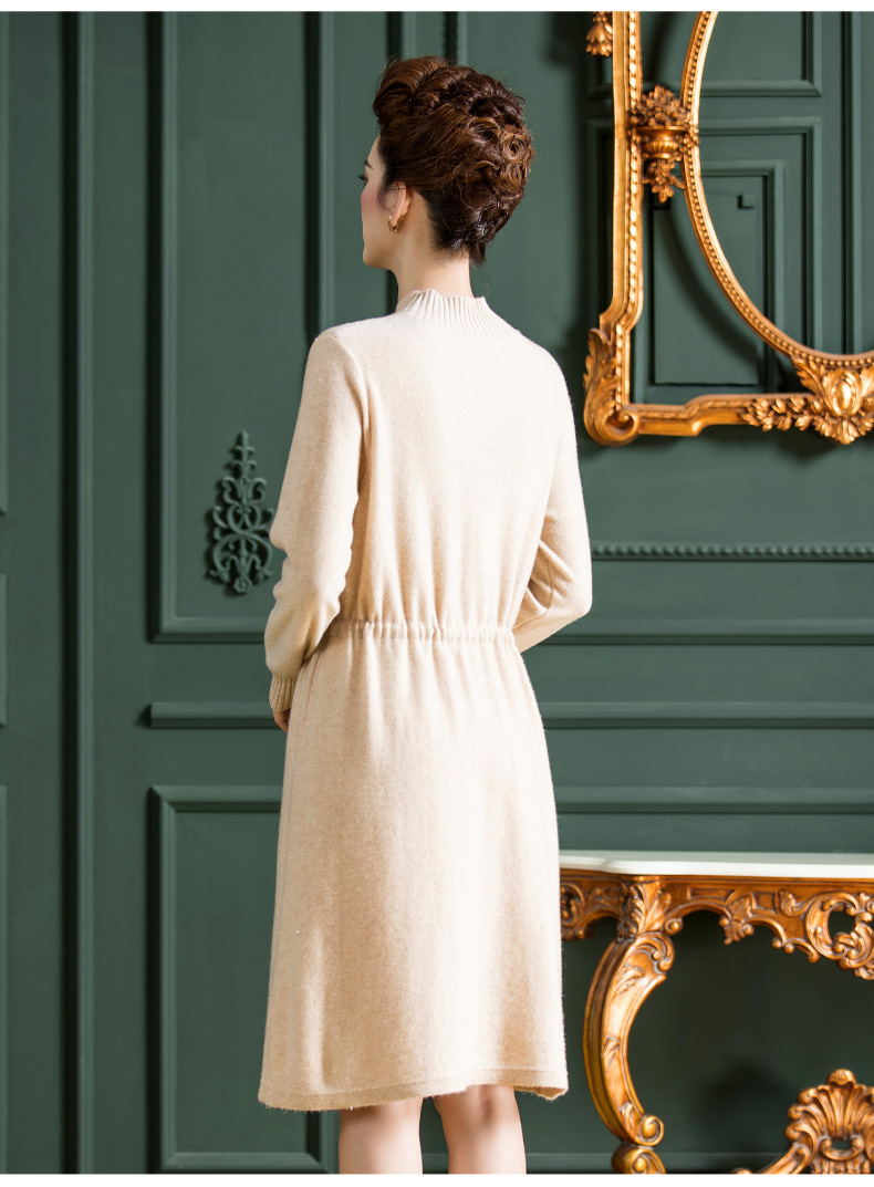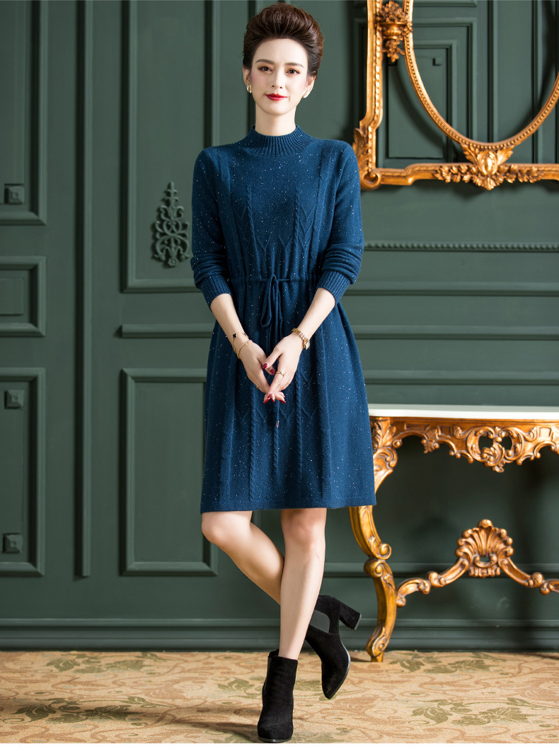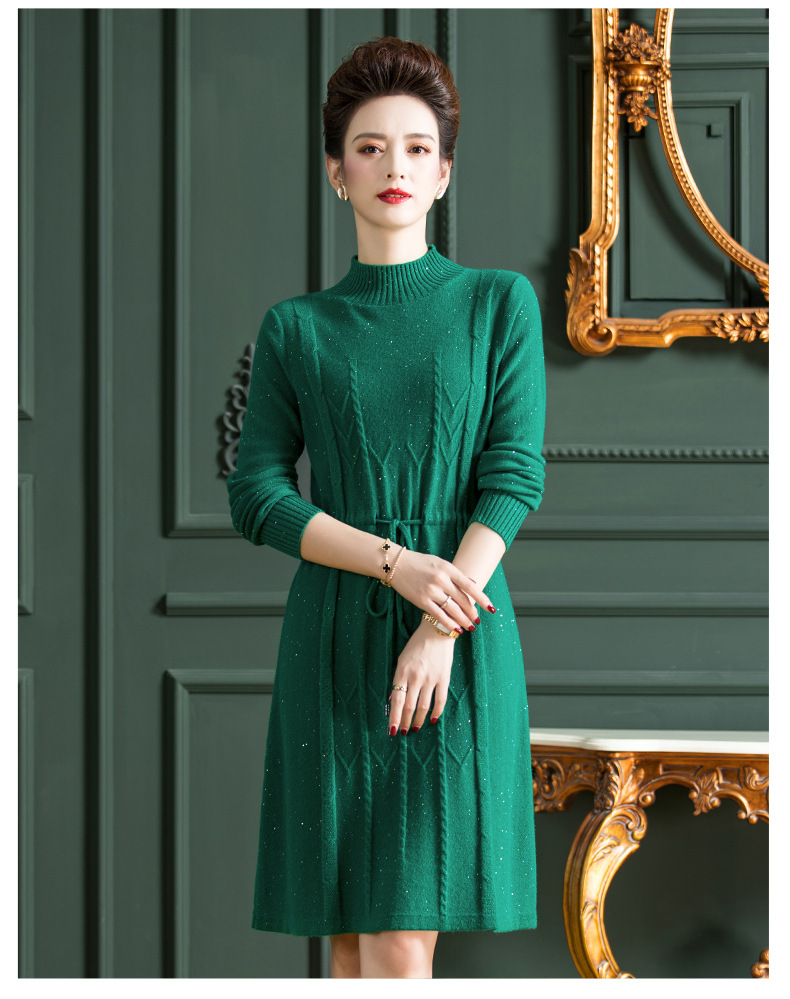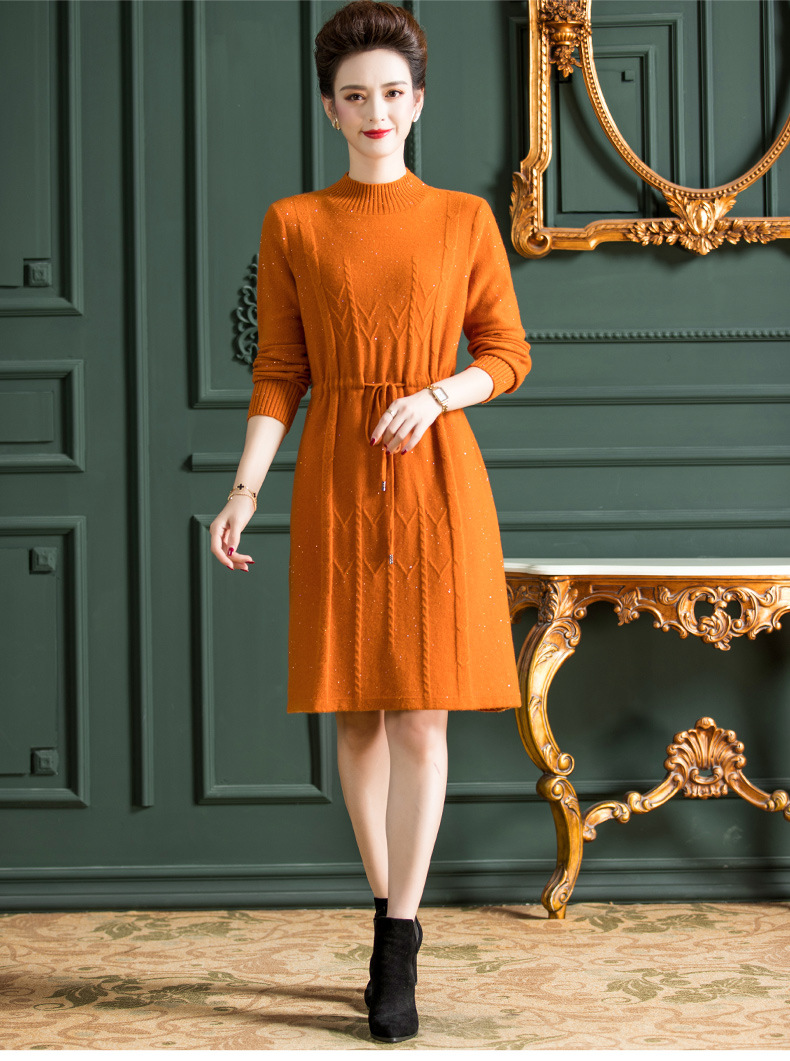 简约纯色,中长款羊毛衫羊毛连衣裙系带毛衣裙WY-G5323