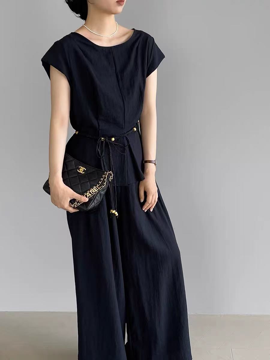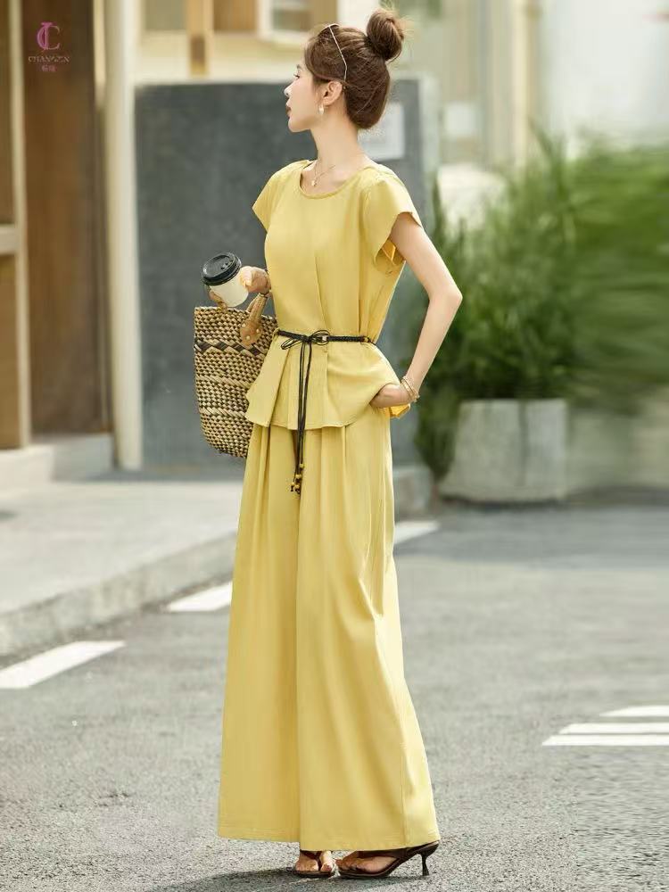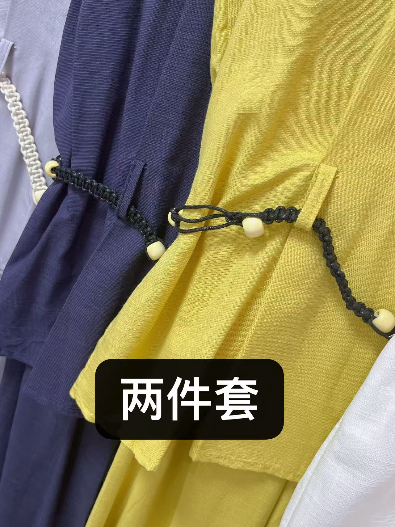 套装【韩系2025】2535棉麻飞飞袖上衣➕阔腿裤两件套-喜出