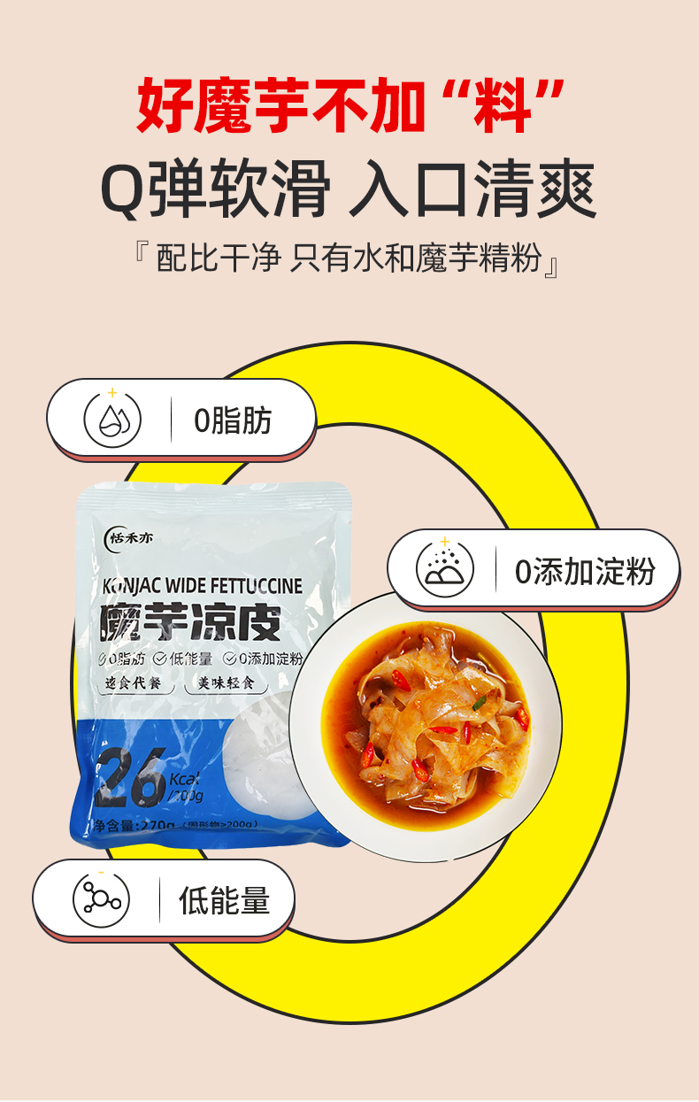 恬禾亦·魔芋凉皮 低卡零脂素食代餐不添加淀粉 糖宝生酮素食人群 270g