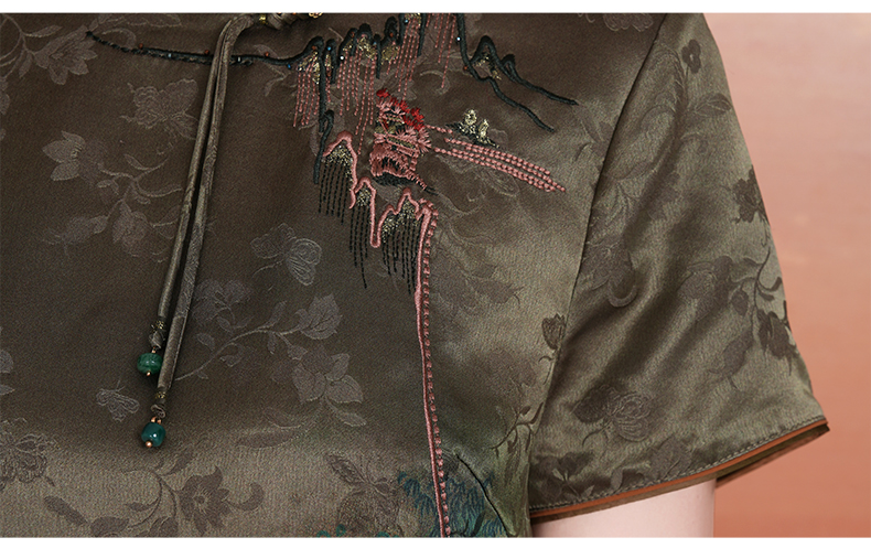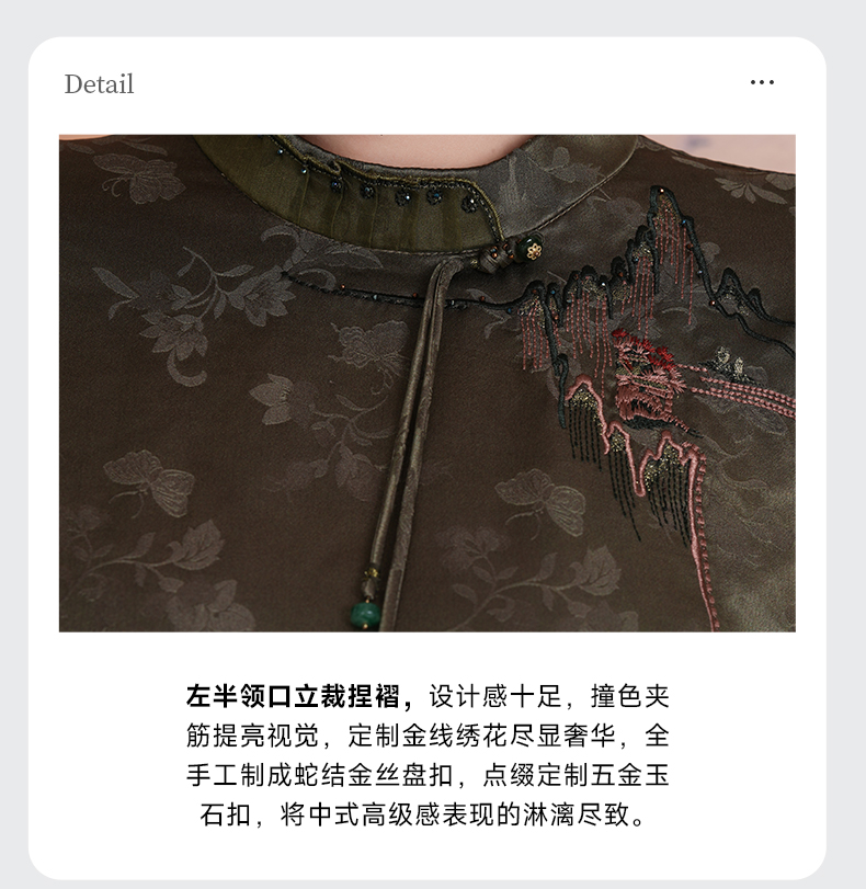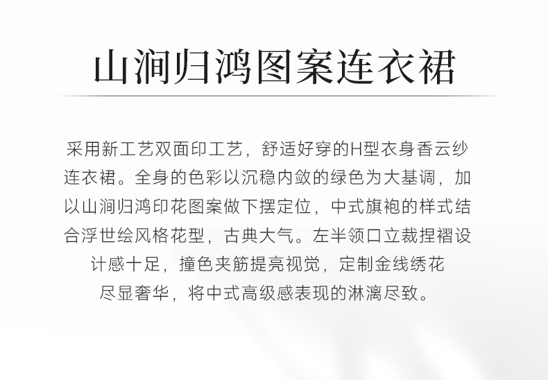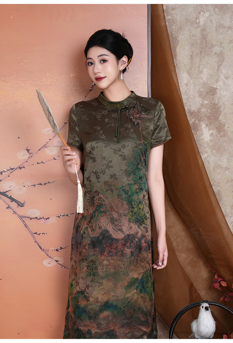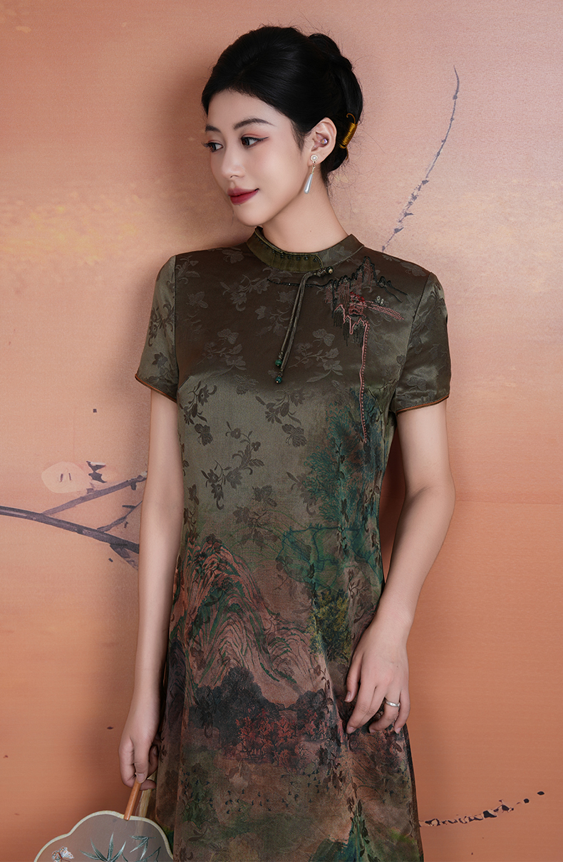 乔万尼新中式浮世绘山河图宽松立领盘扣真丝连衣裙ED2E545