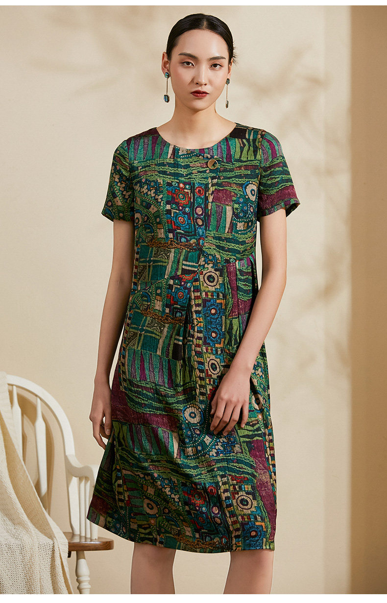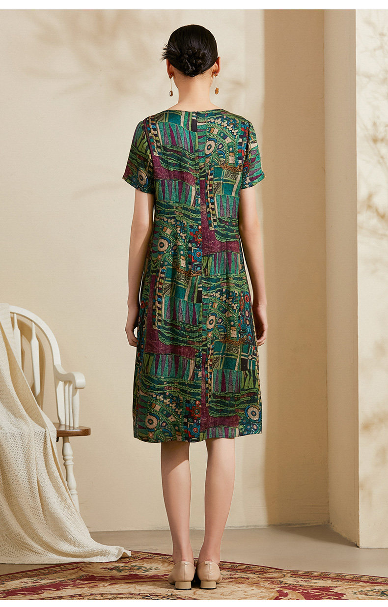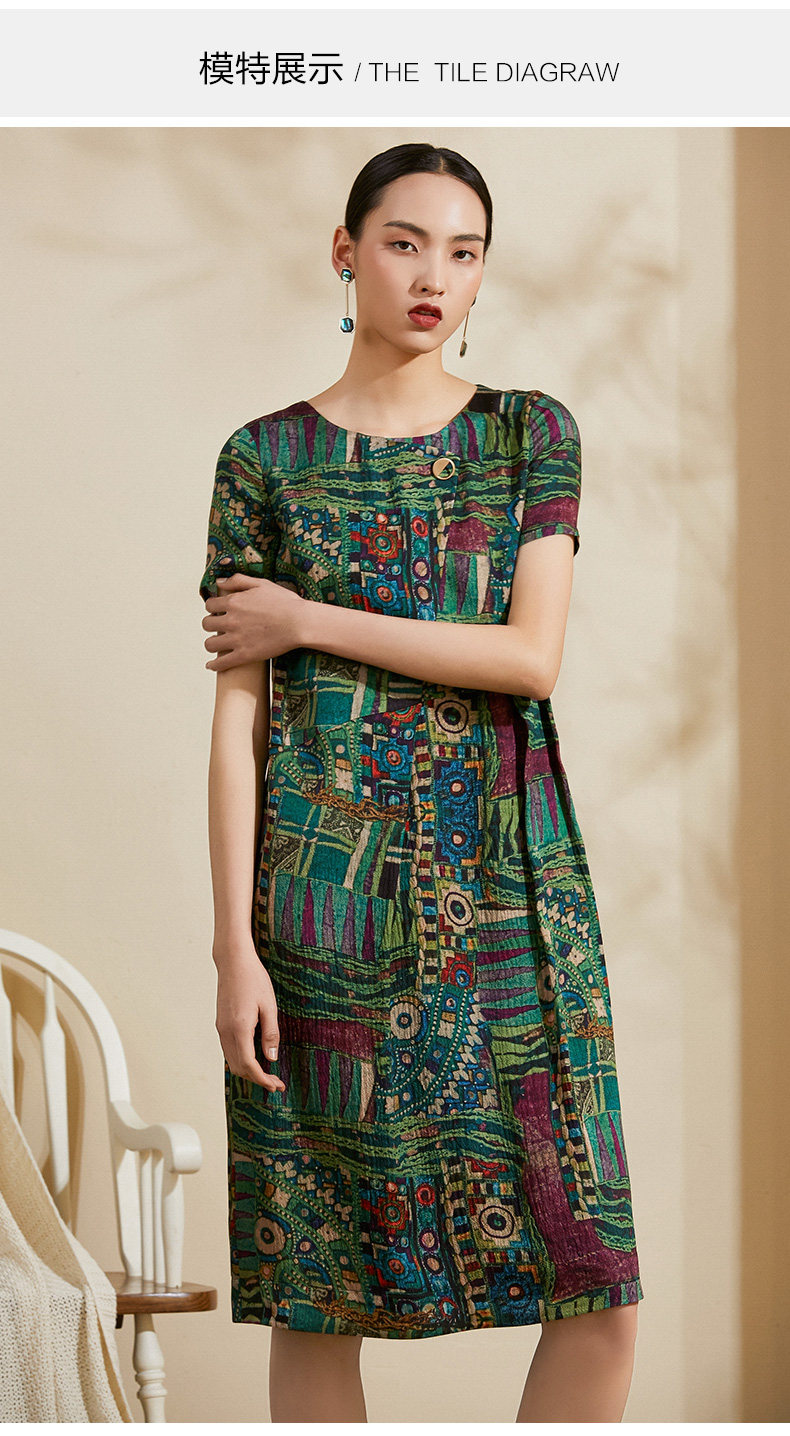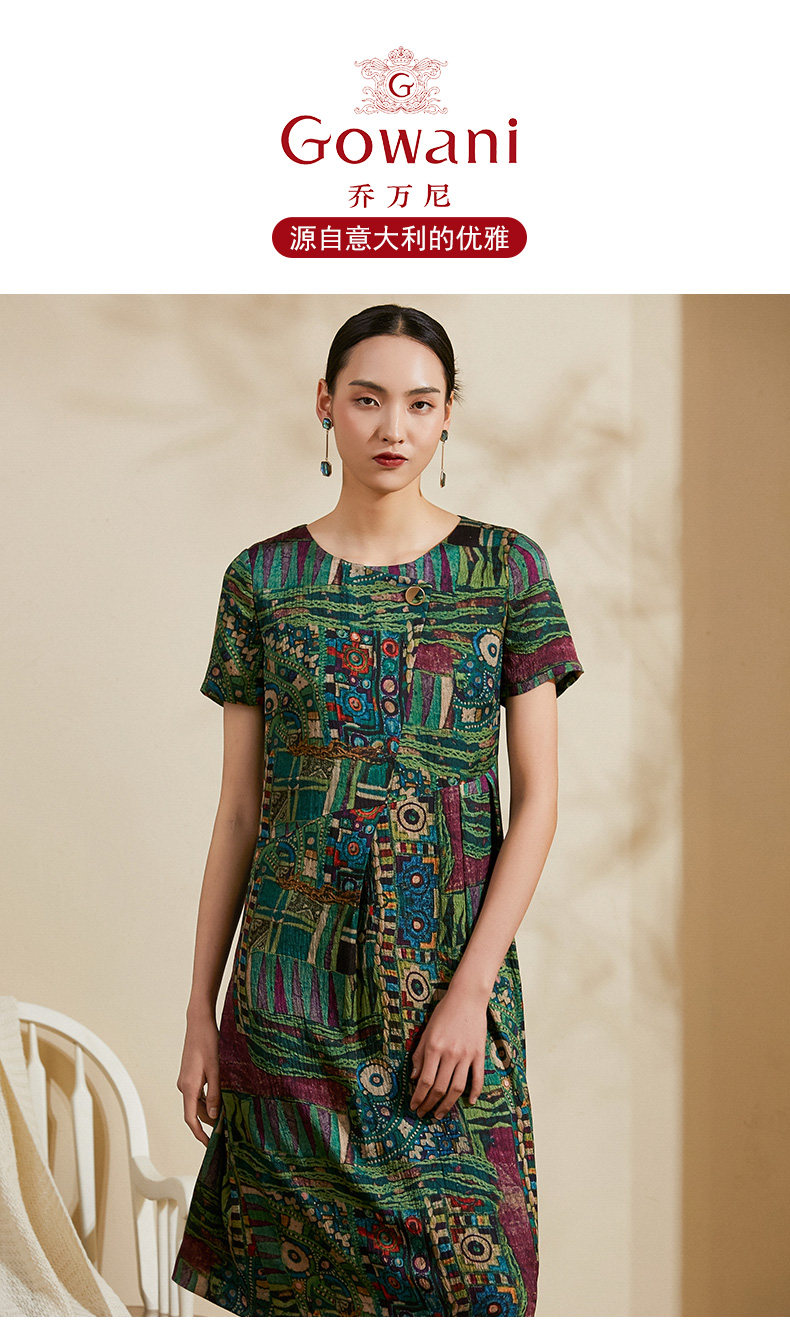 乔万尼新款夏装时尚印花桑蚕丝宽松直筒真丝连衣裙中长款ES2E177