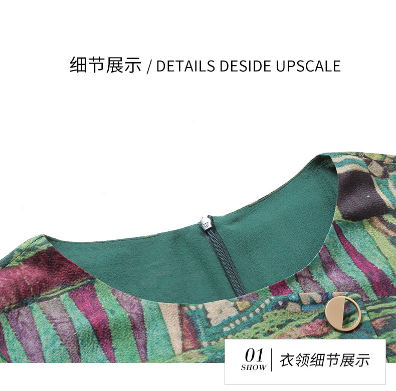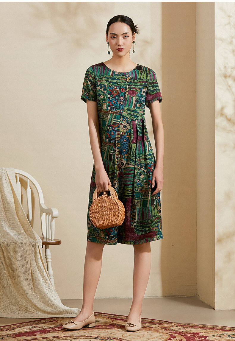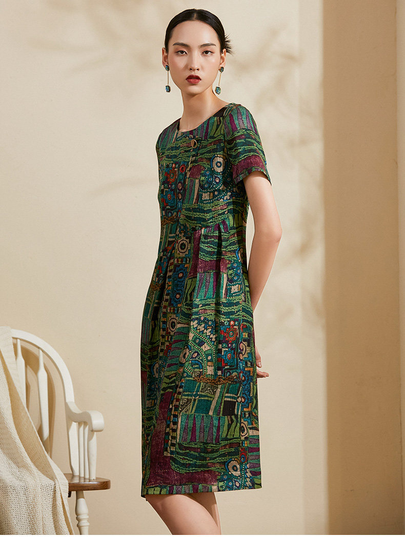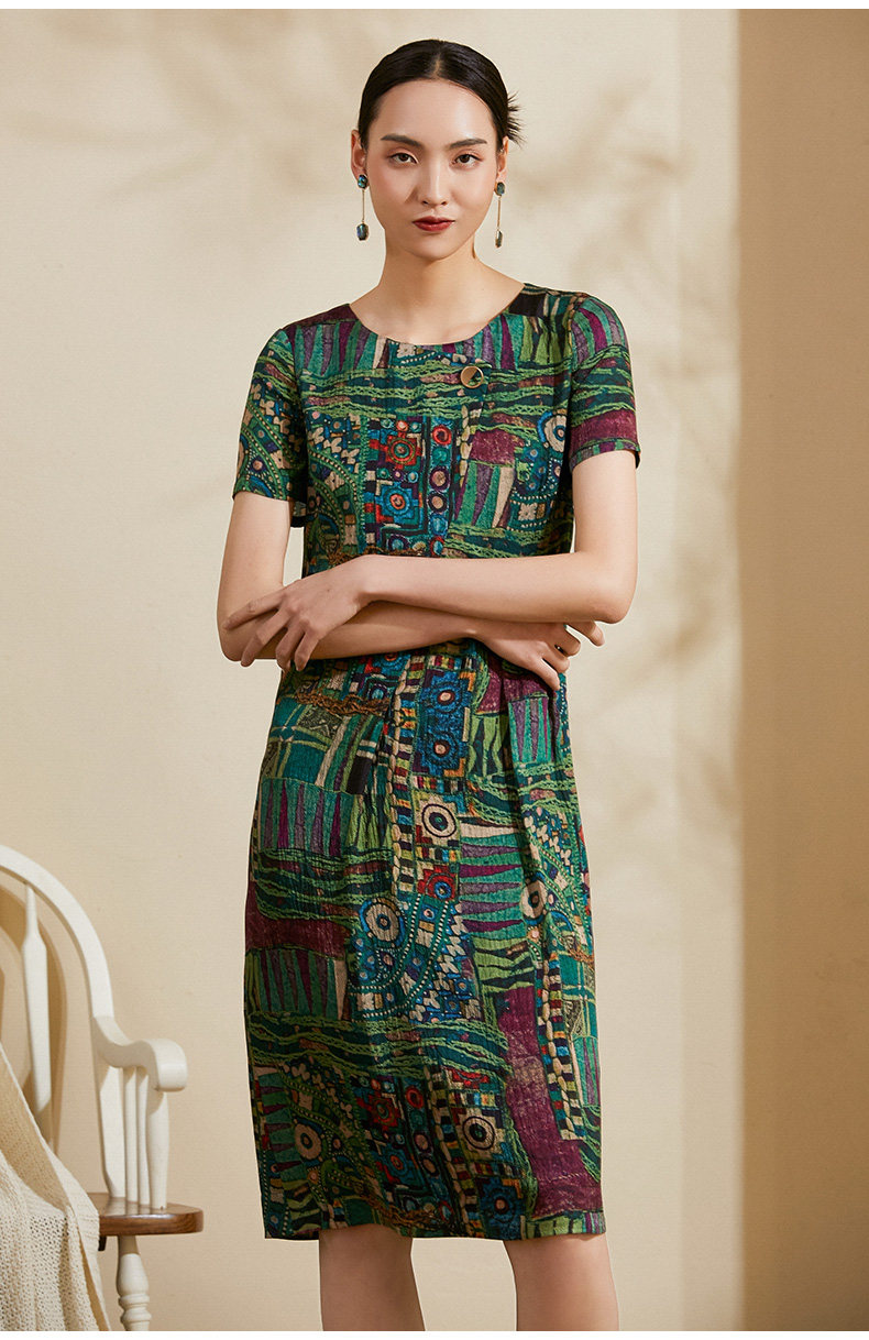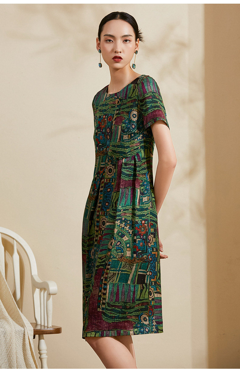 乔万尼新款夏装时尚印花桑蚕丝宽松直筒真丝连衣裙中长款ES2E177