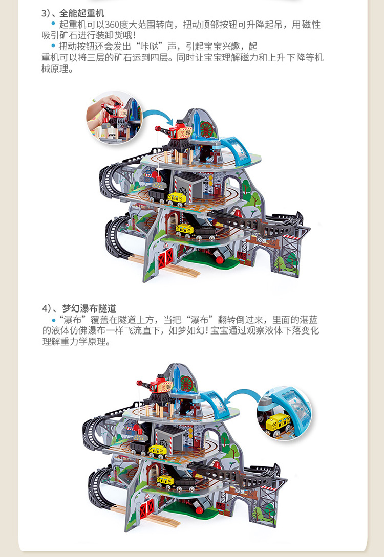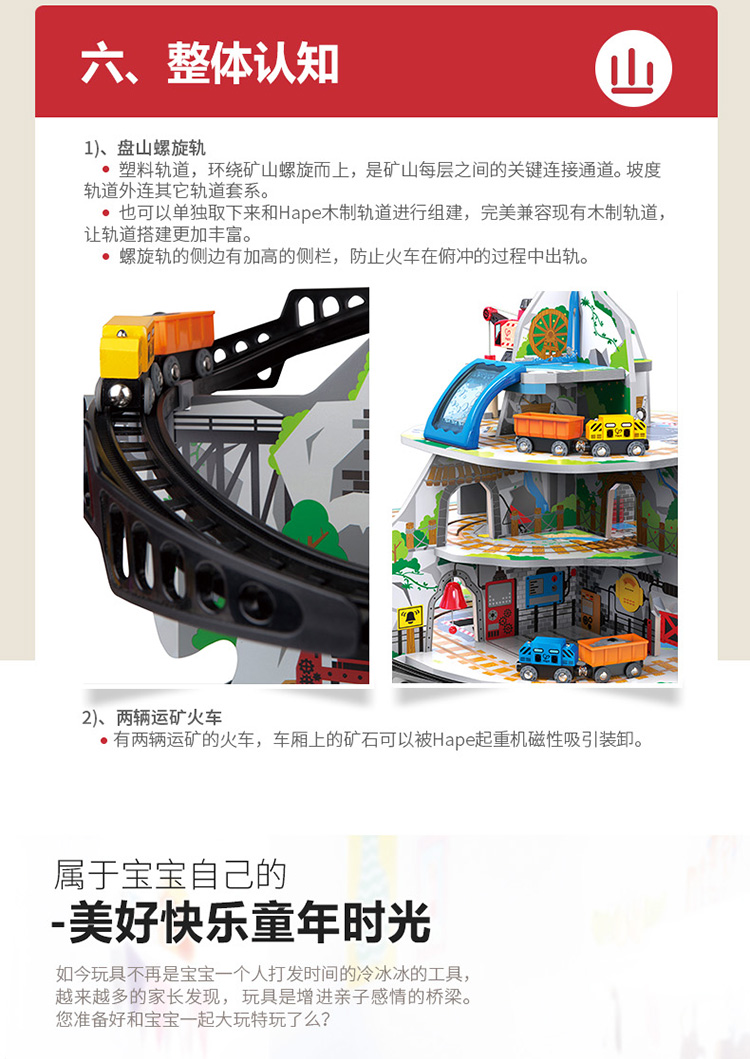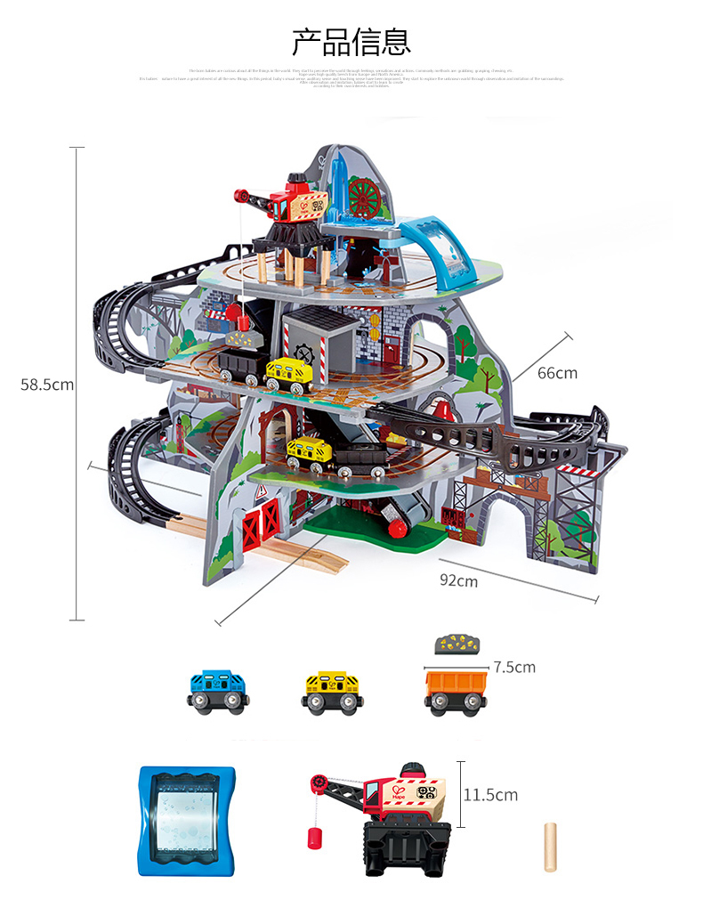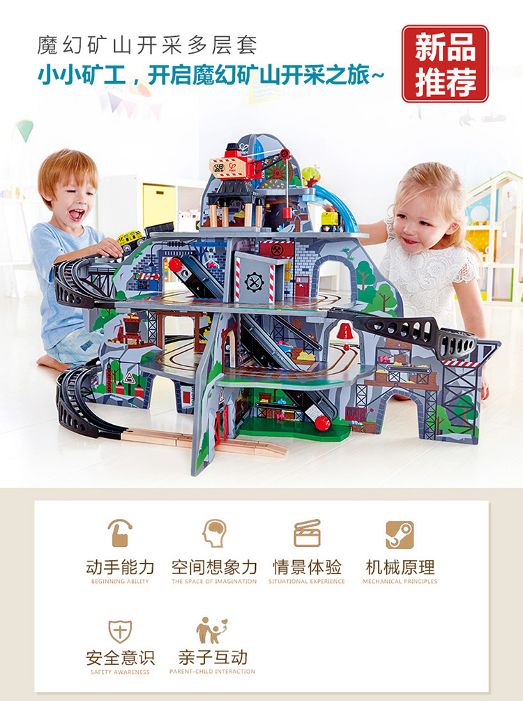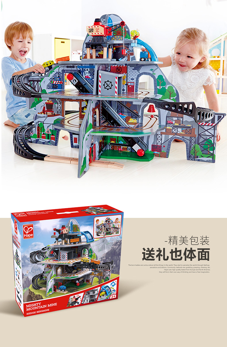Hape轨道火车玩具 木质轨道车超大型多层矿山套装3-6岁男女小孩 E3753 火车轨道-大型矿山套