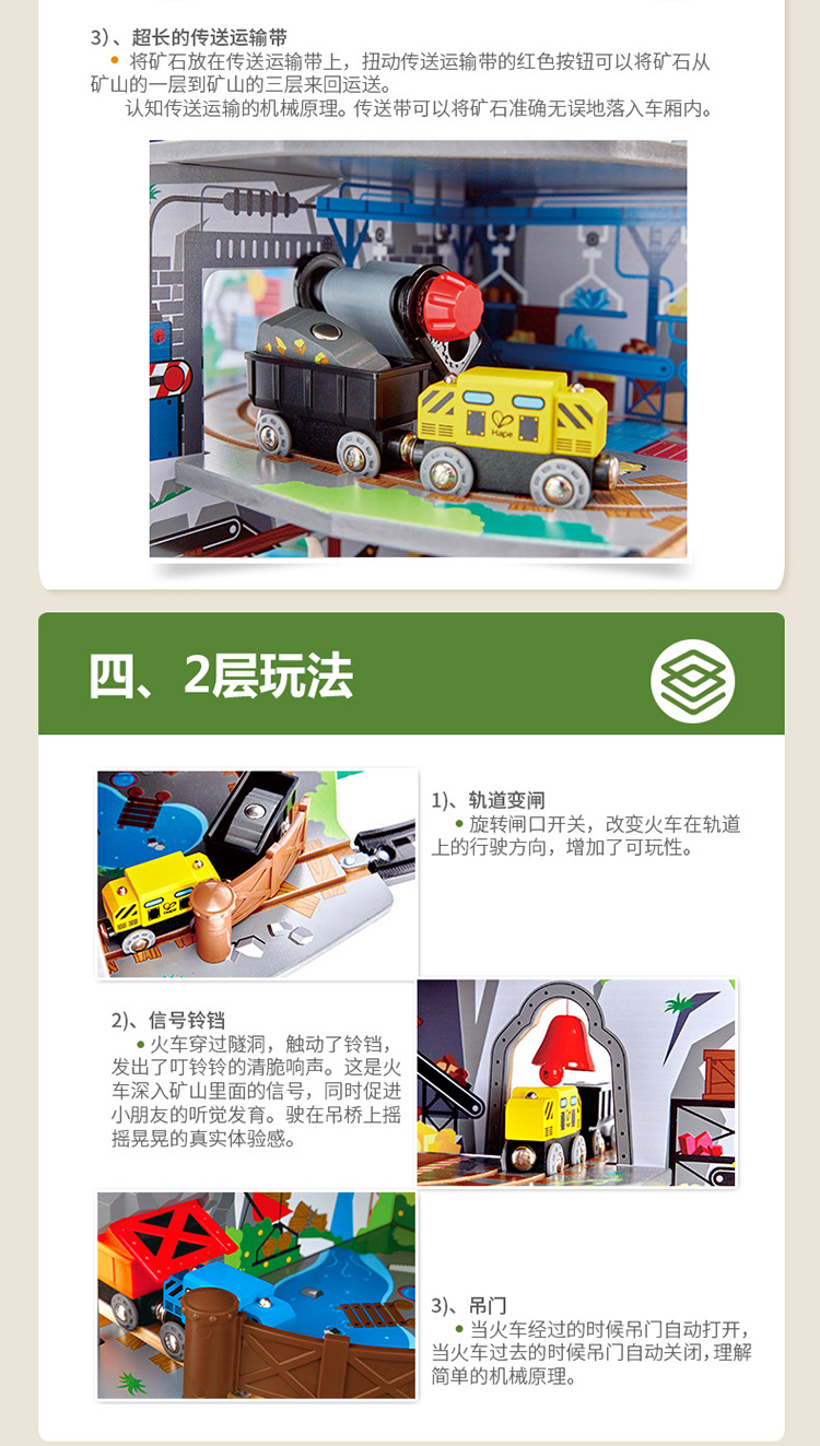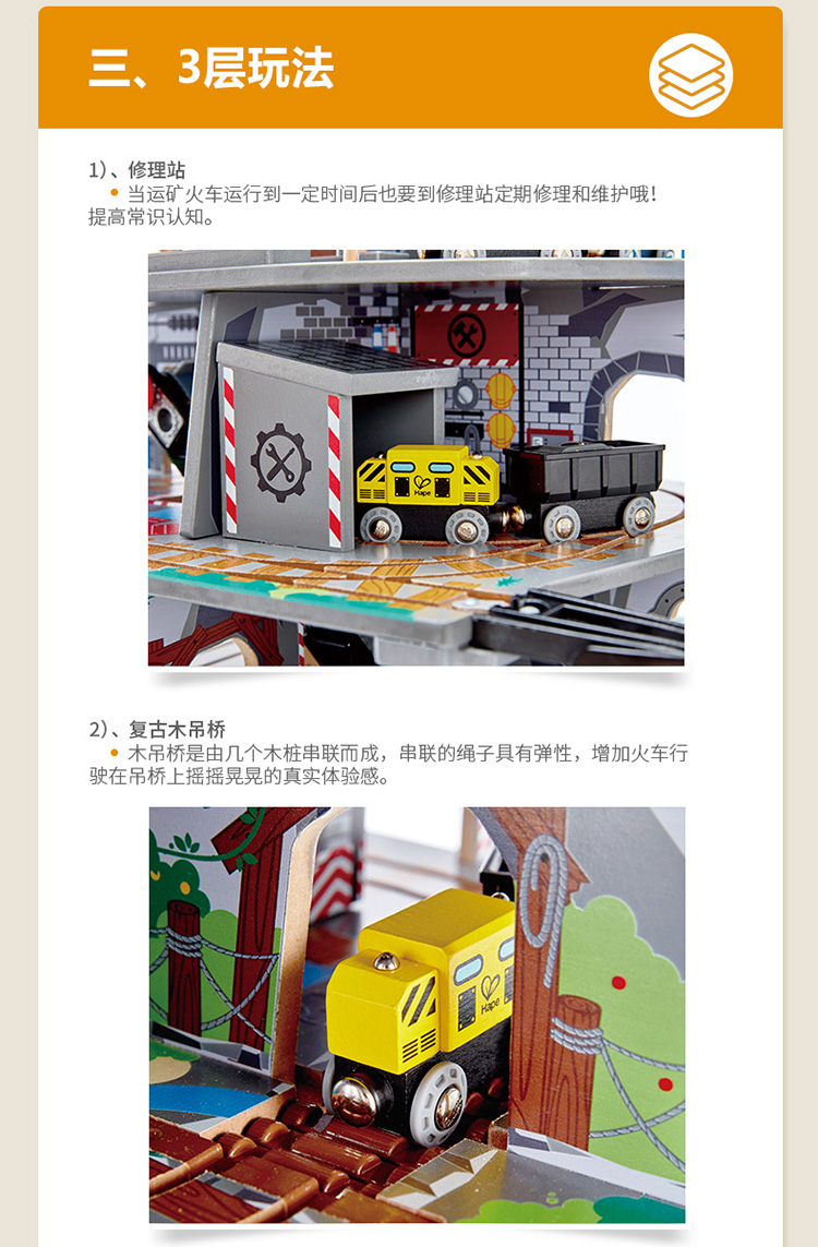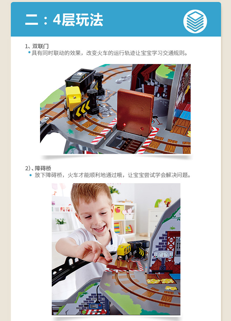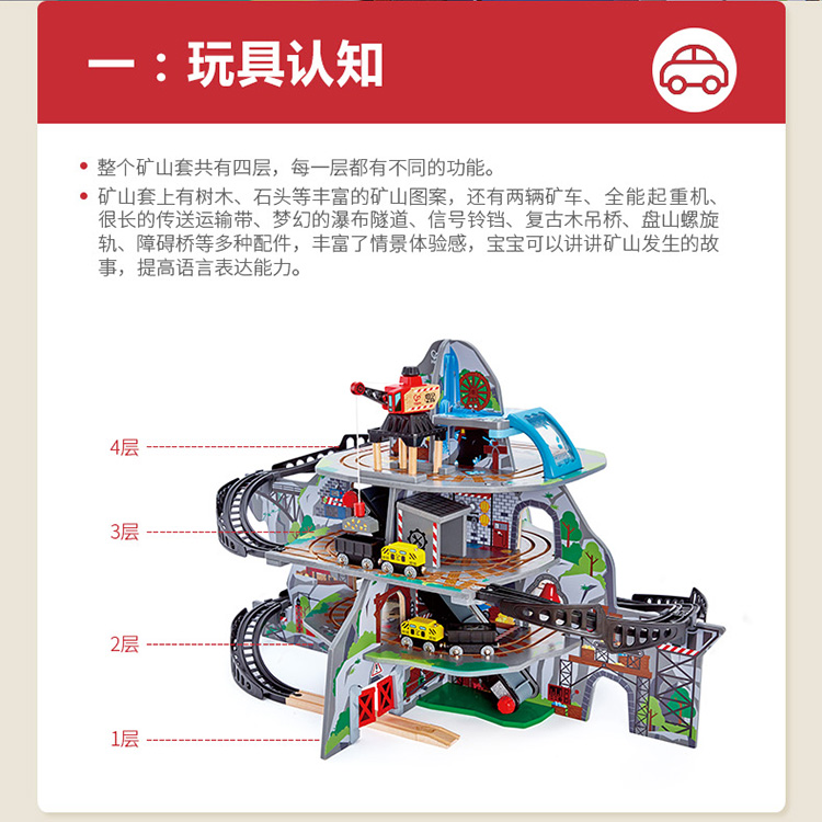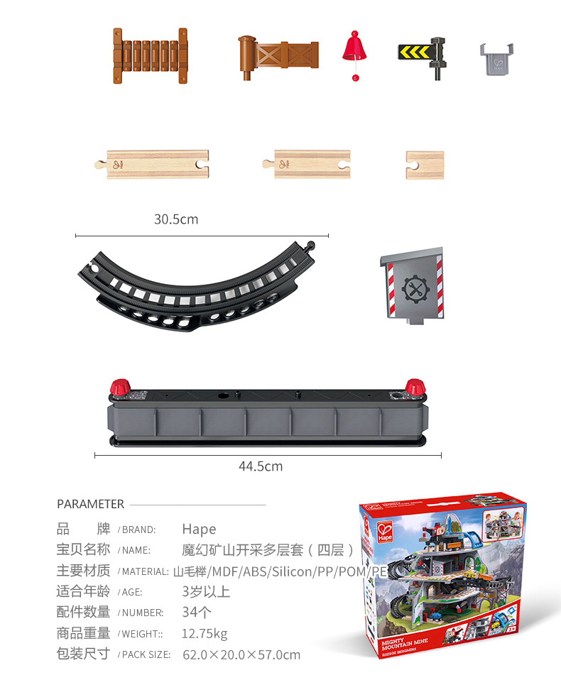 Hape轨道火车玩具 木质轨道车超大型多层矿山套装3-6岁男女小孩 E3753 火车轨道-大型矿山套