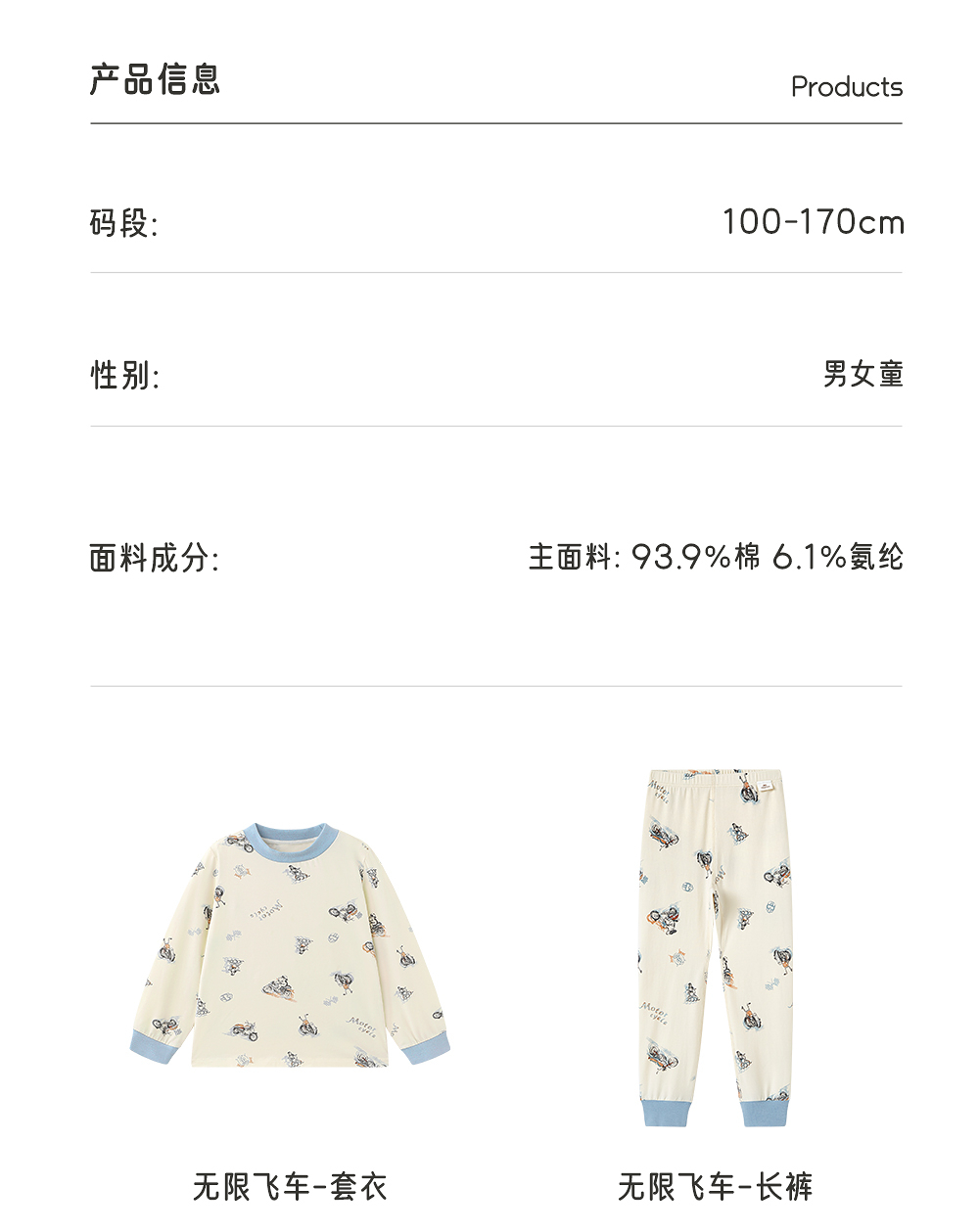 【商场同款】英氏儿童内衣四季保暖男女童睡衣睡裤可组套装家居服