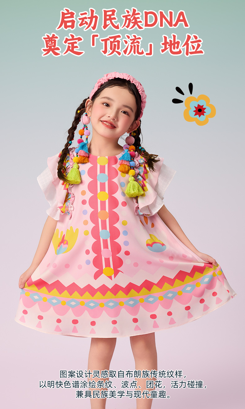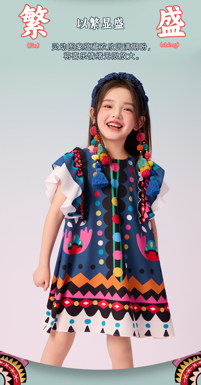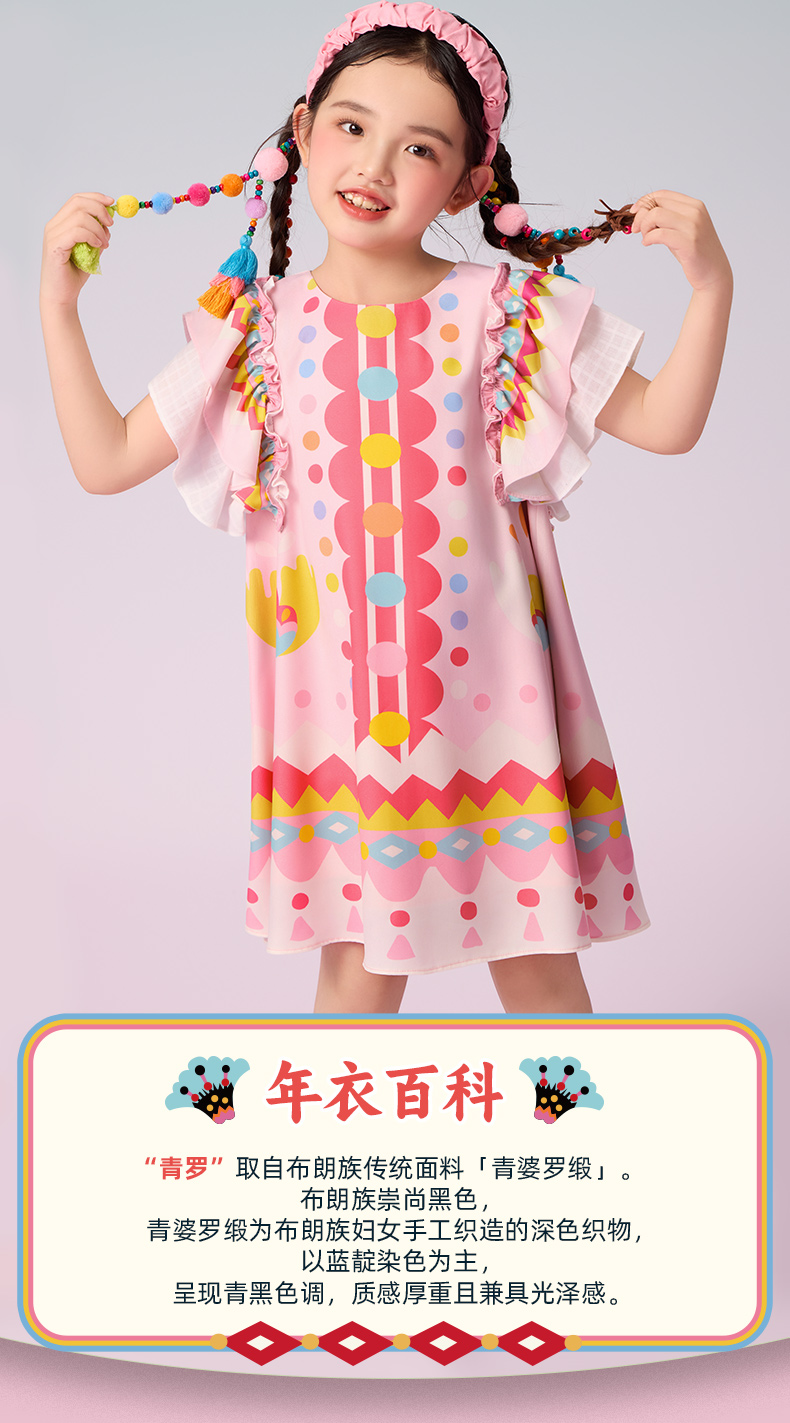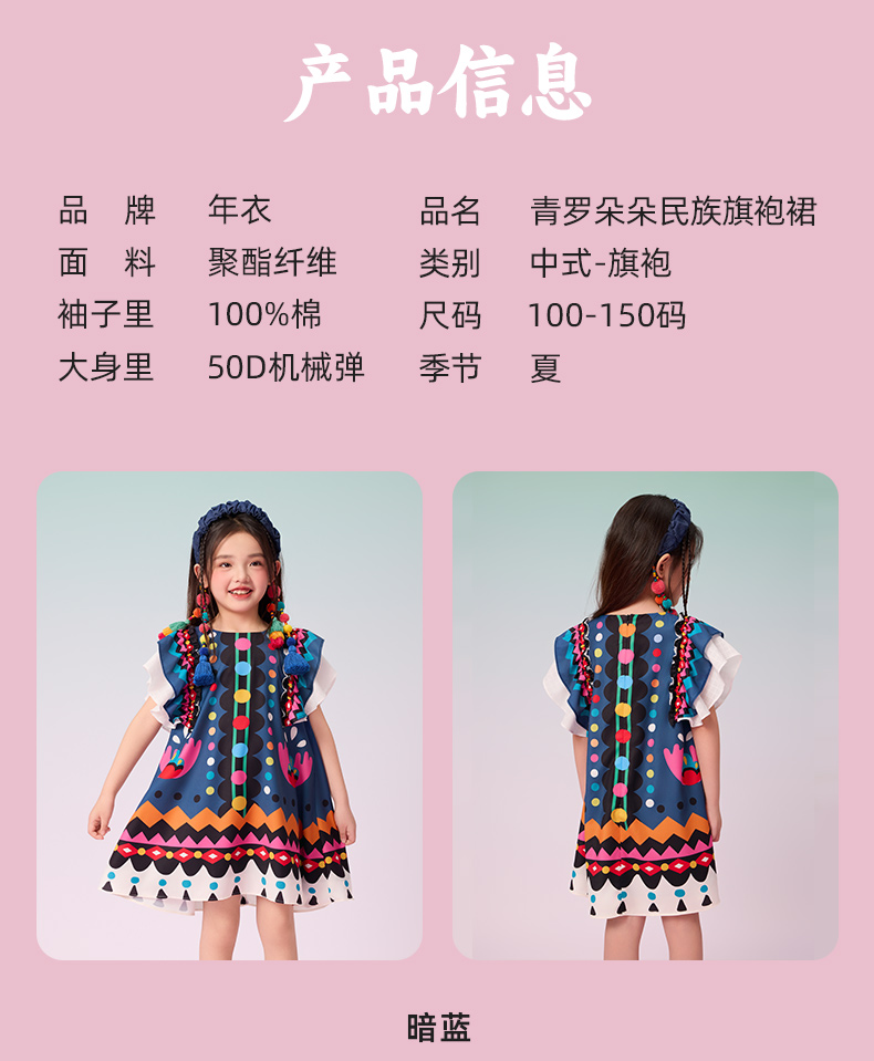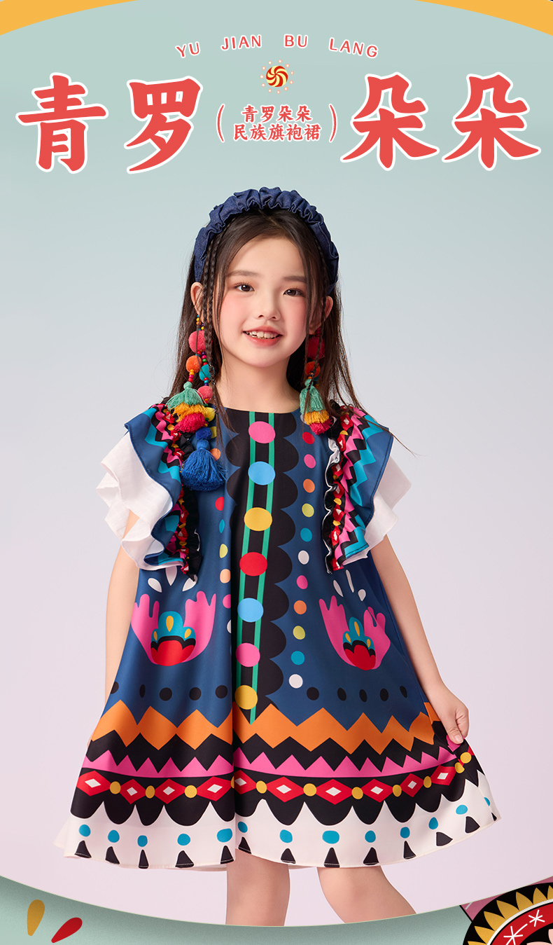 年衣童装2025新款夏季儿童民族服饰国风青罗朵朵民族旗袍裙