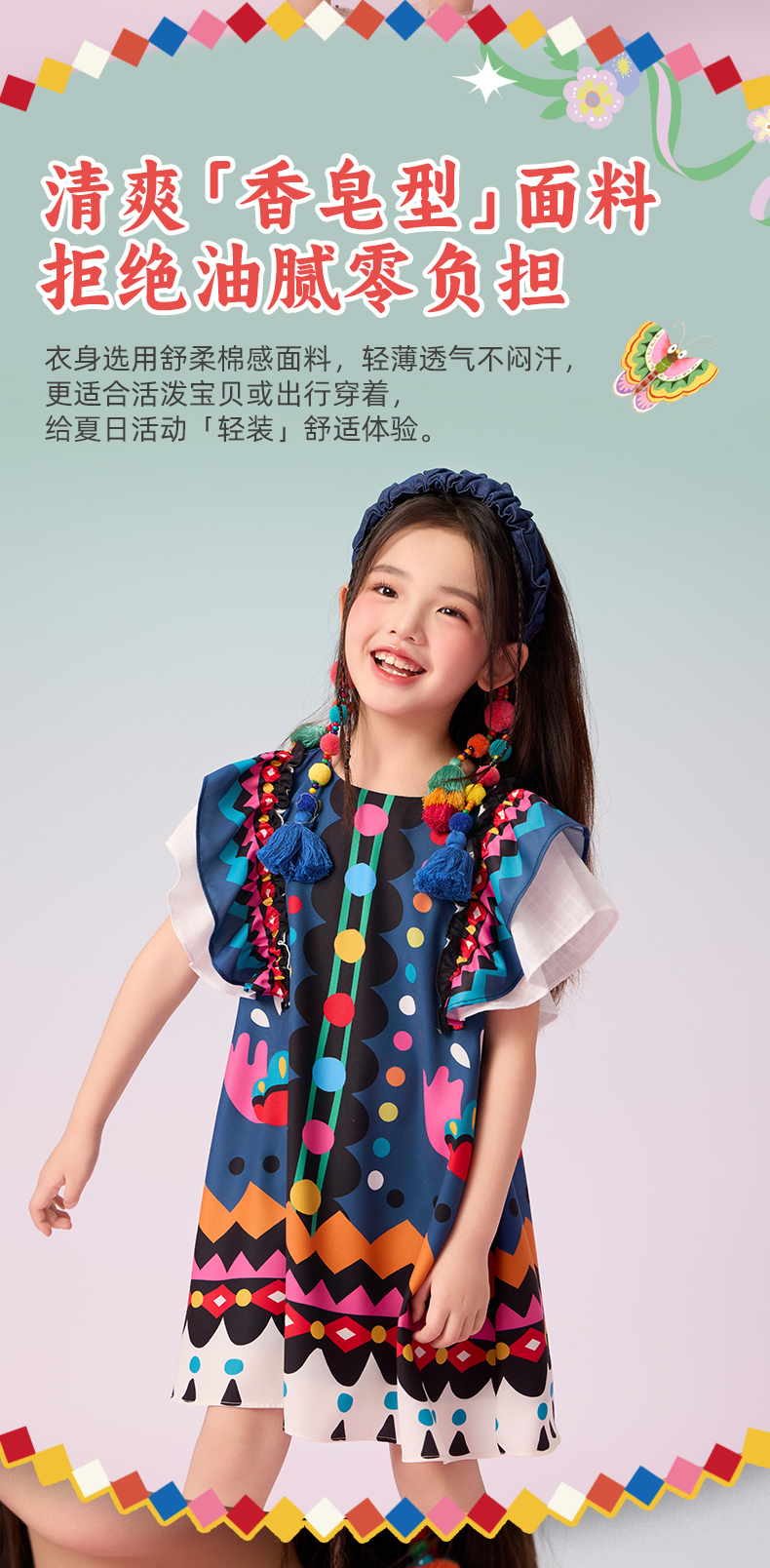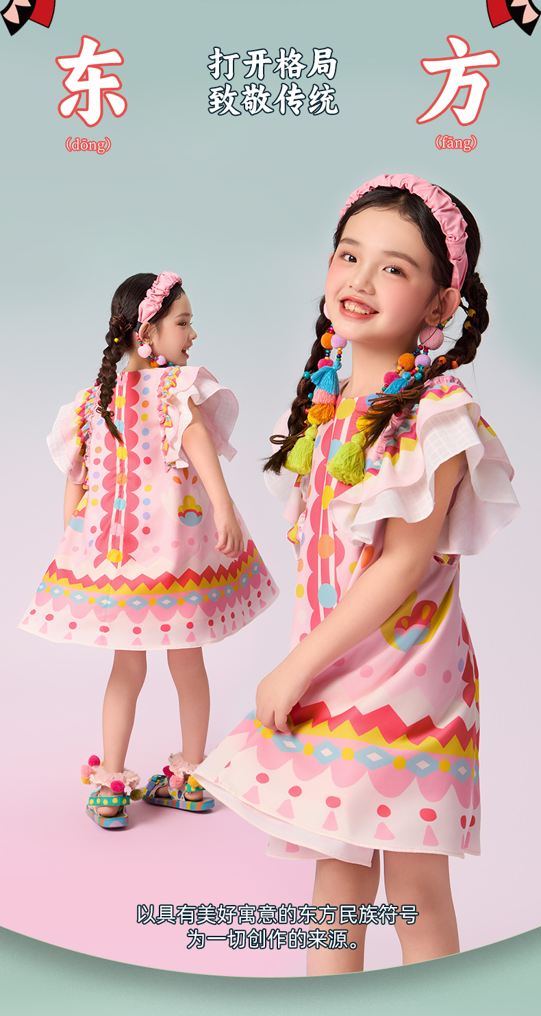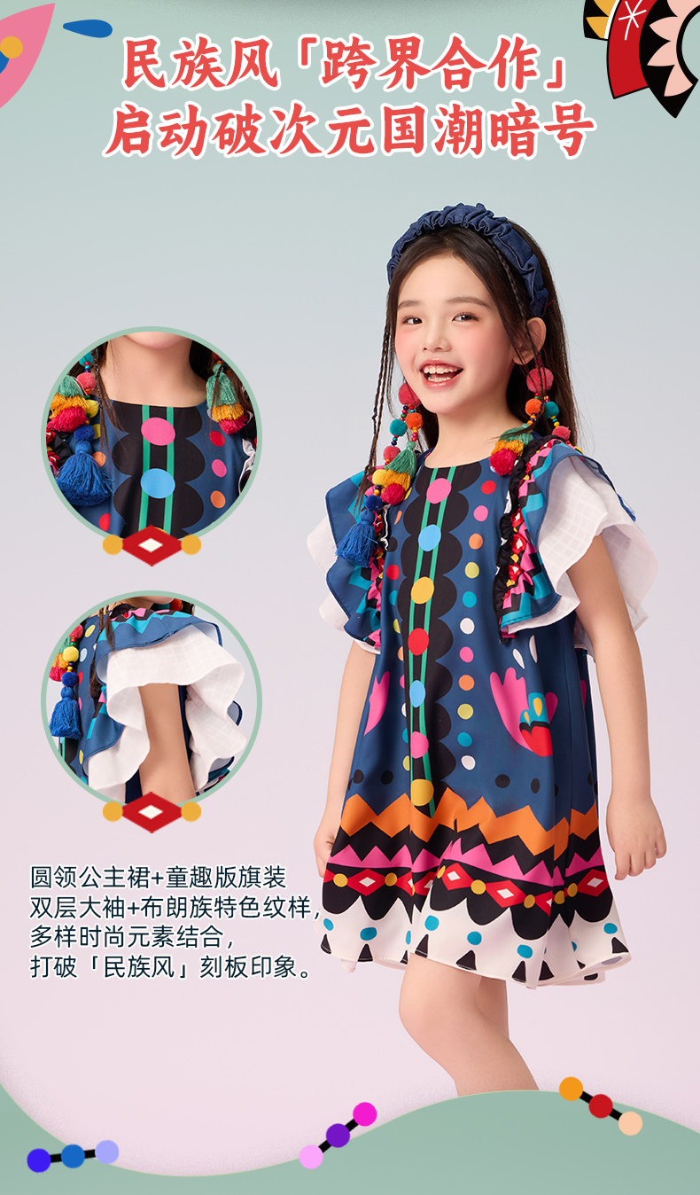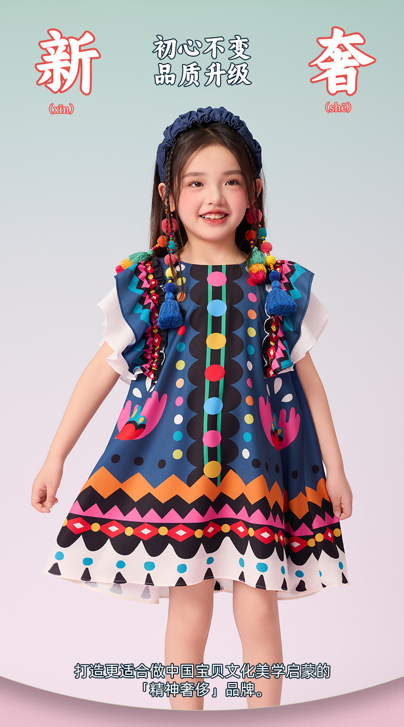 年衣童装2025新款夏季儿童民族服饰国风青罗朵朵民族旗袍裙