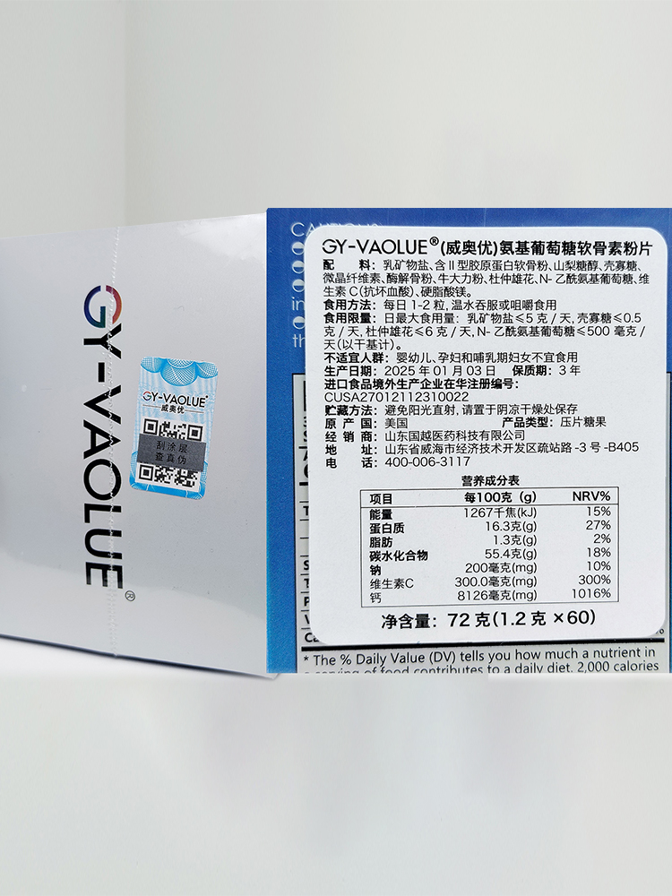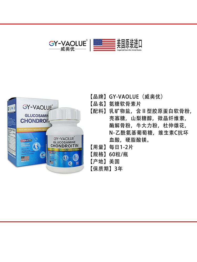 【国越医药】威奥优氨糖软骨素片(美国进口) 72g/盒(60粒)