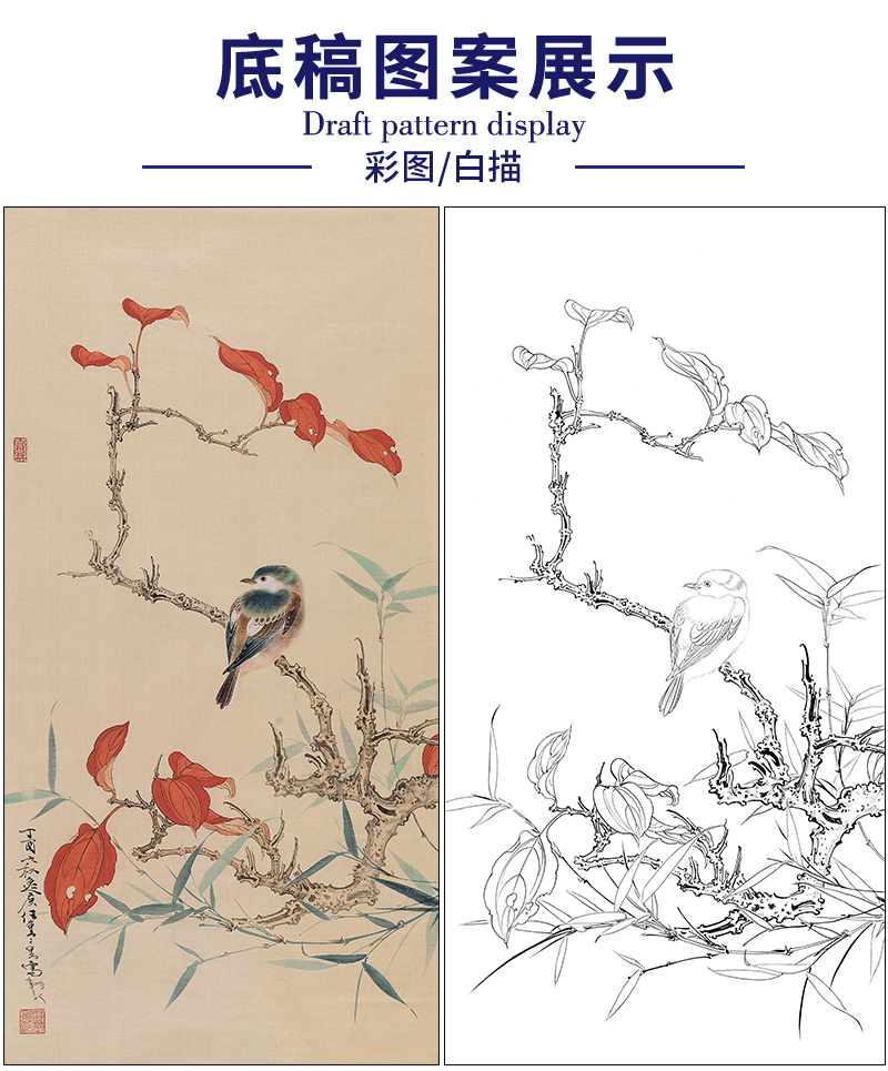 任重花鸟工笔画白描底稿《花鸟图》临摹勾线高清打印稿RD44