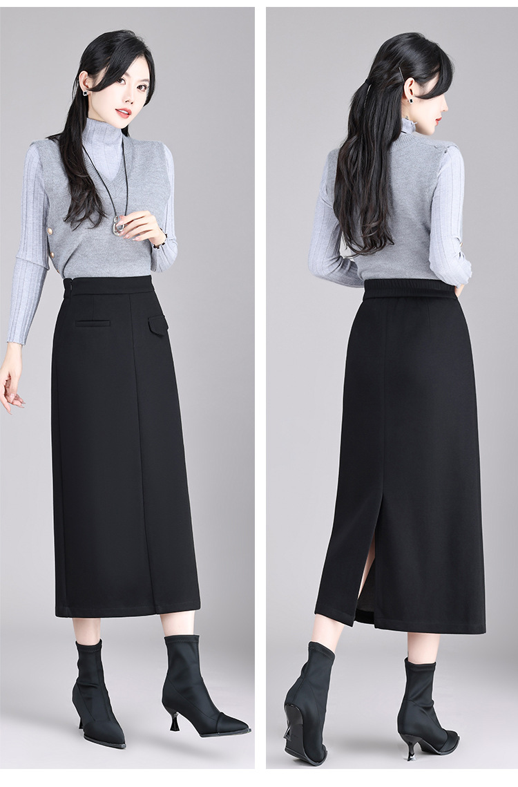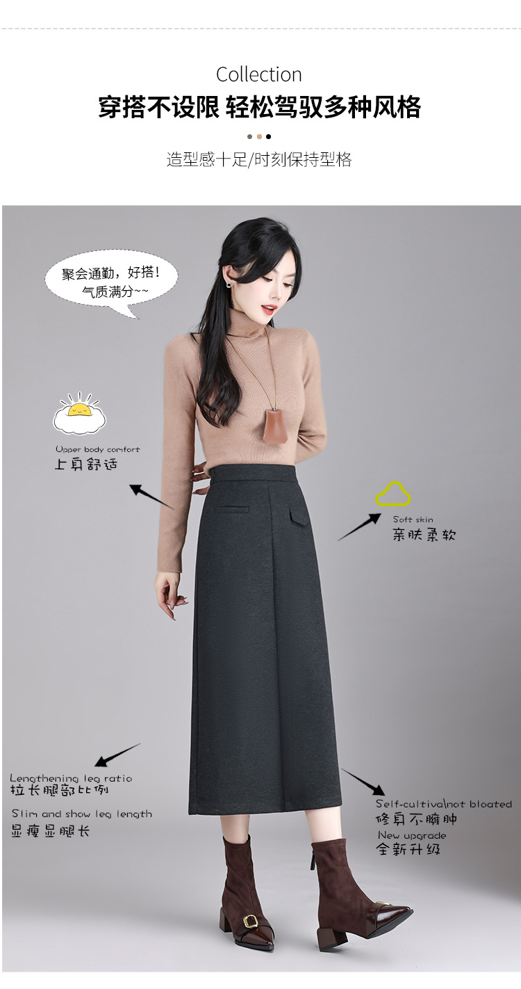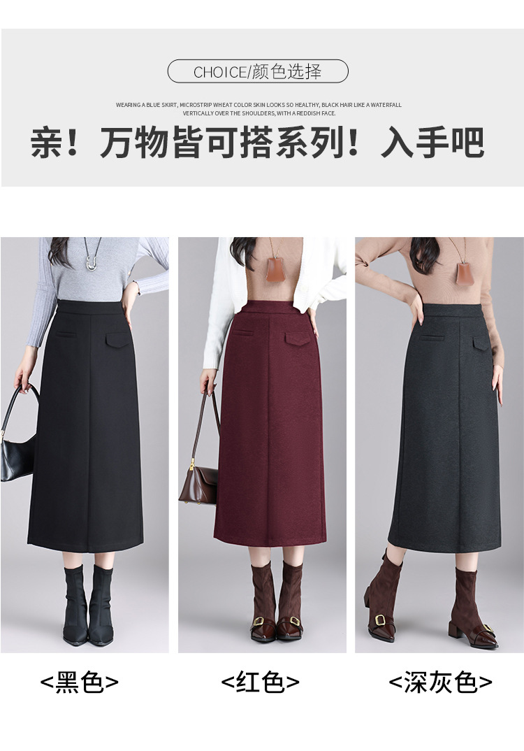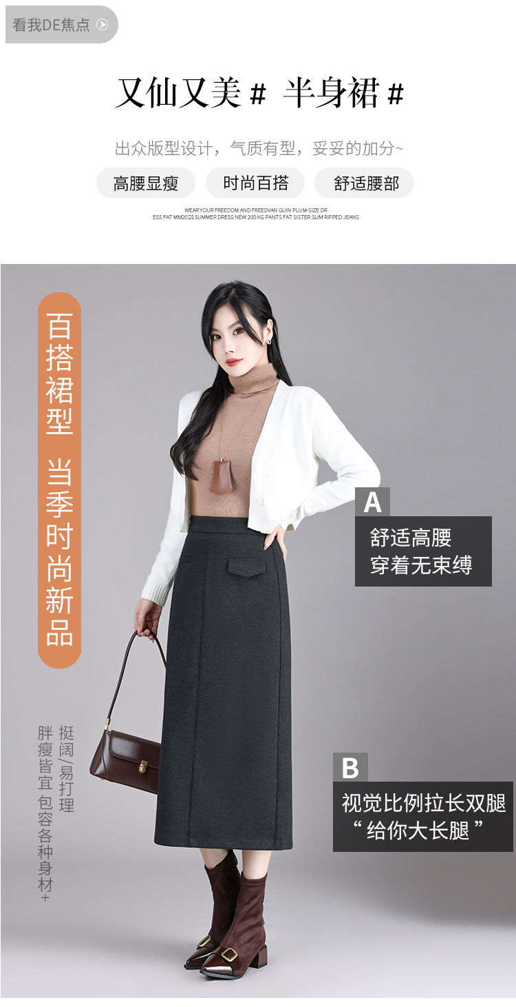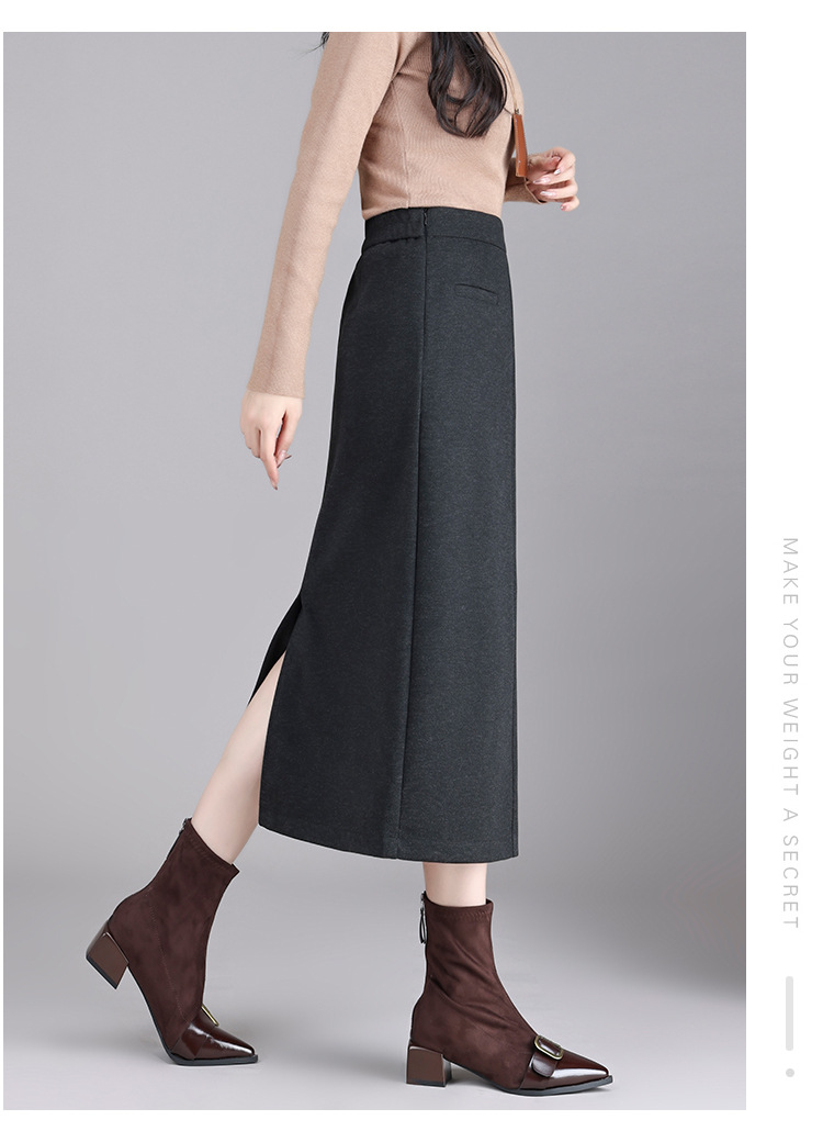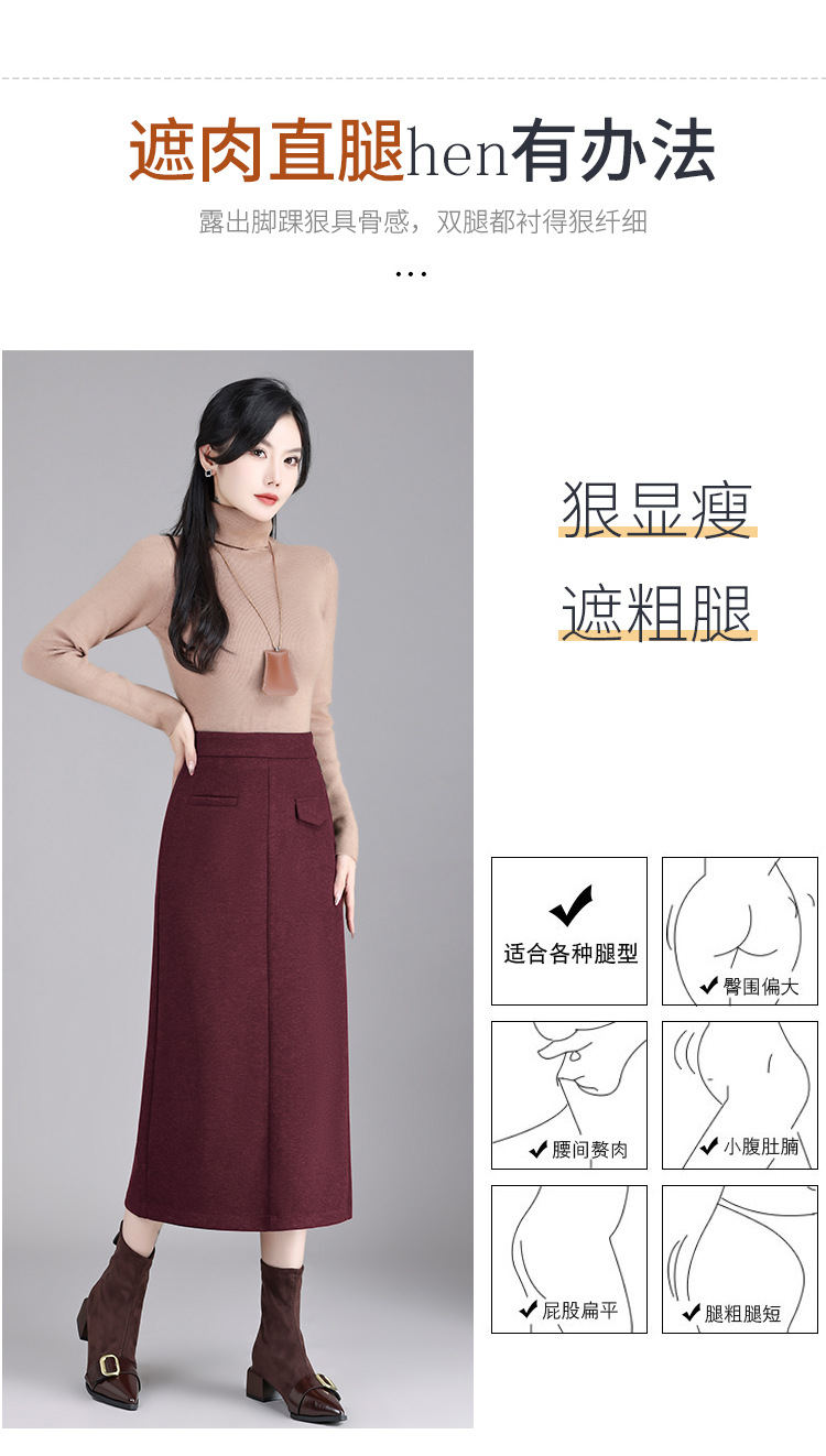 QYM 66923-Y气质半身裙加厚毛呢A字裙高腰包臀开衩一步裙 商品图4