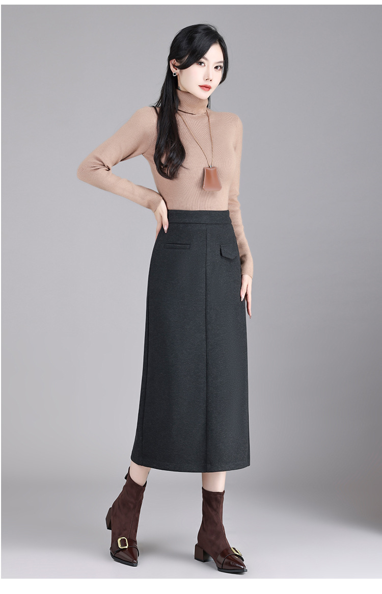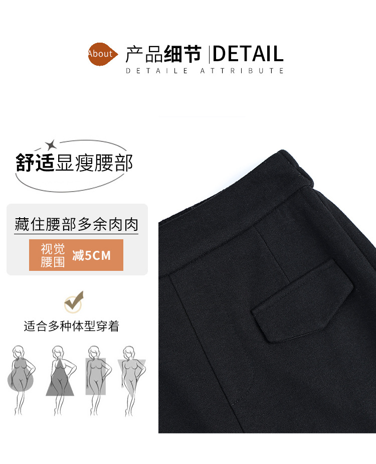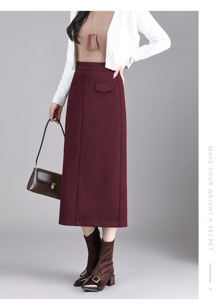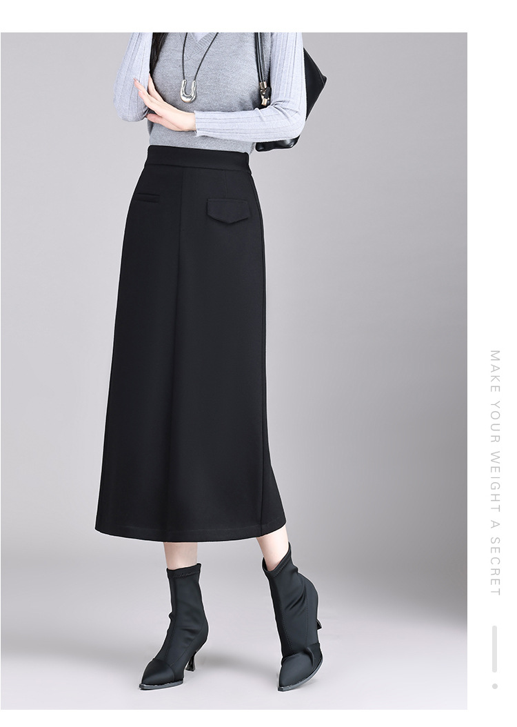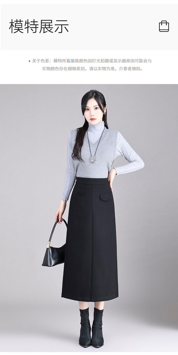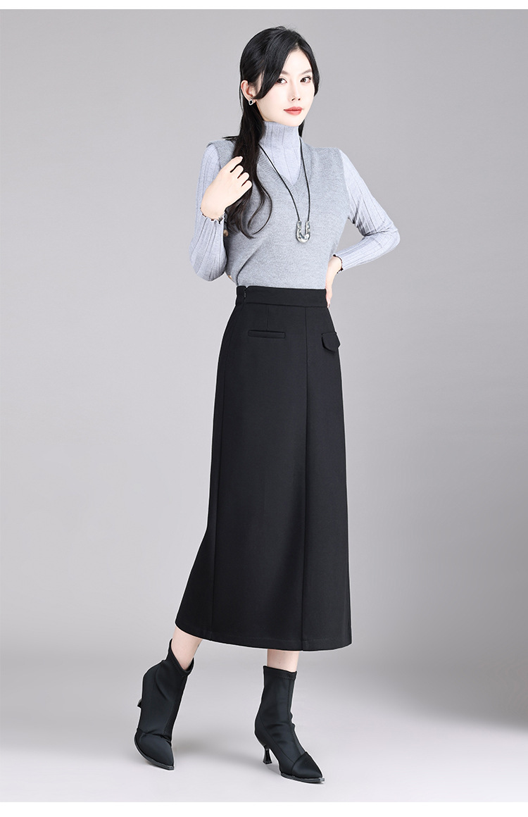 QYM 66923-Y气质半身裙加厚毛呢A字裙高腰包臀开衩一步裙 商品图4