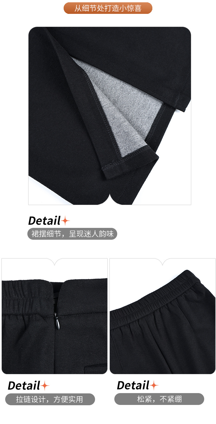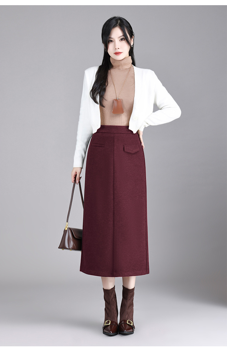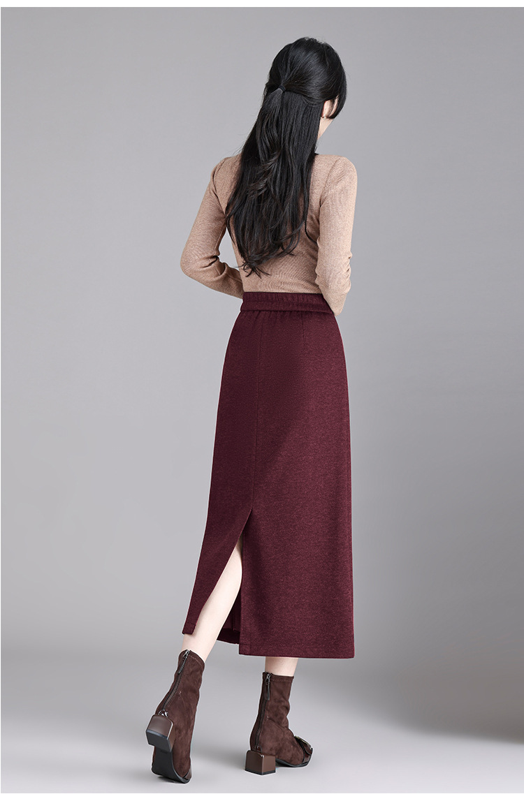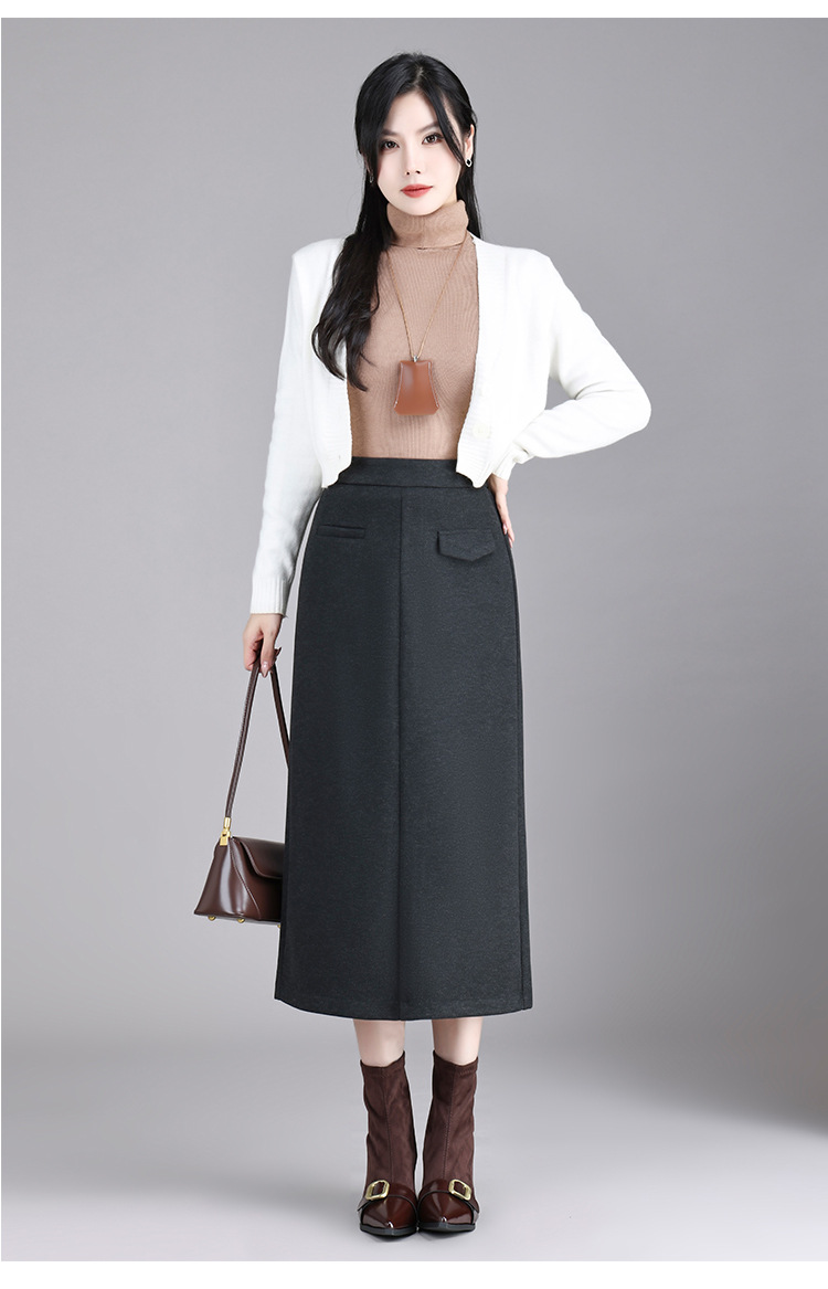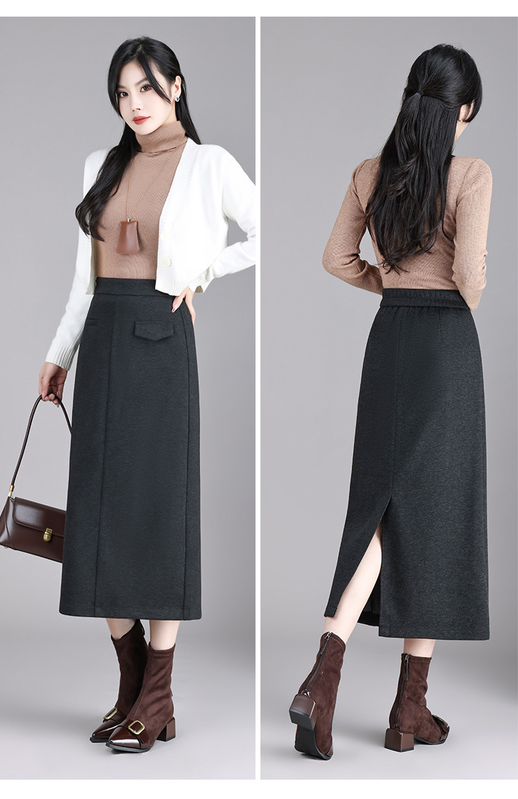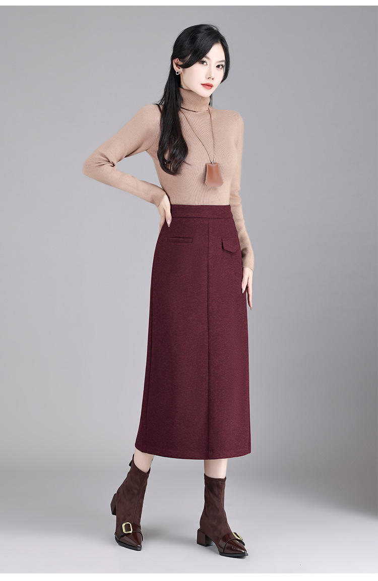 QYM 66923-Y气质半身裙加厚毛呢A字裙高腰包臀开衩一步裙 商品图4