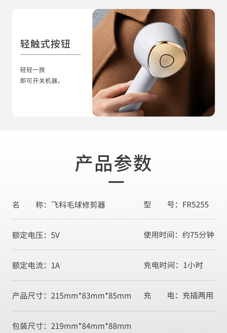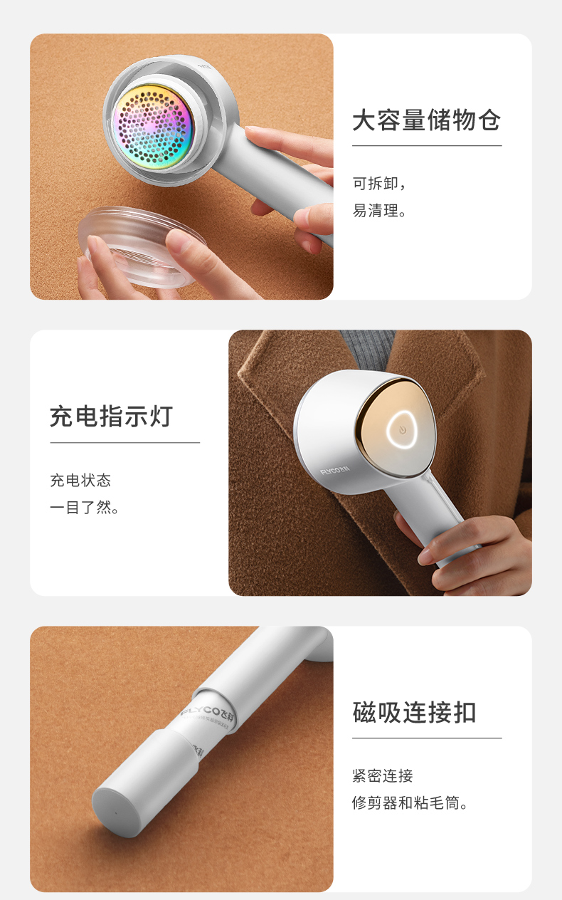 飞科毛衣服起球修剪器充电式家用衣物打毛机器电动剃刮吸去除毛球