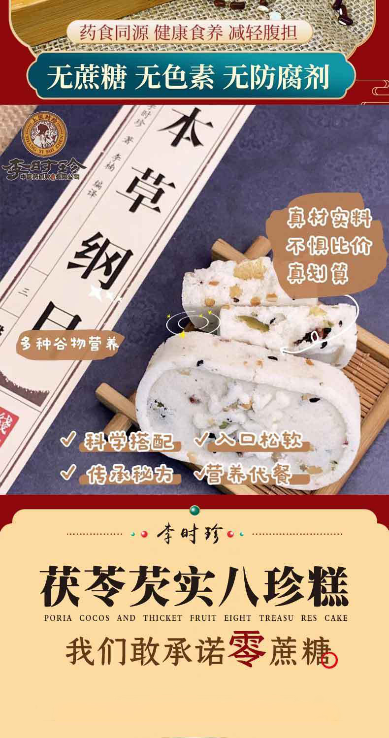 专属福利买就送芝麻丸【东方甄选直播推荐 软糯香甜】李时珍 茯苓芡实八珍糕 8大药食同源食材+6种美味坚果 无添加 小孩也爱吃 240g