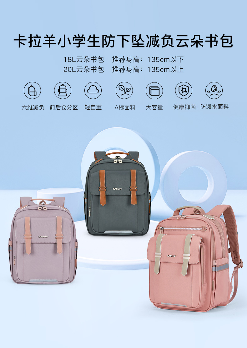 【云朵书包2.0PLUS版】卡拉羊六维防下坠小学生1-6年级18L/20L云朵书包 万物生 CX2205+CX2678(TX)