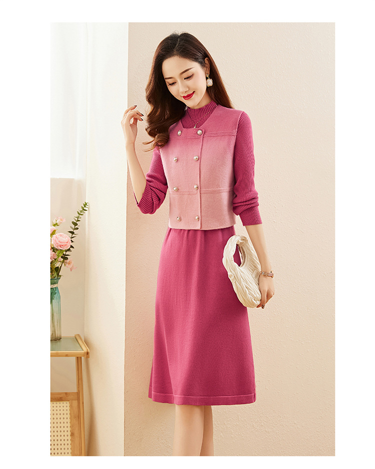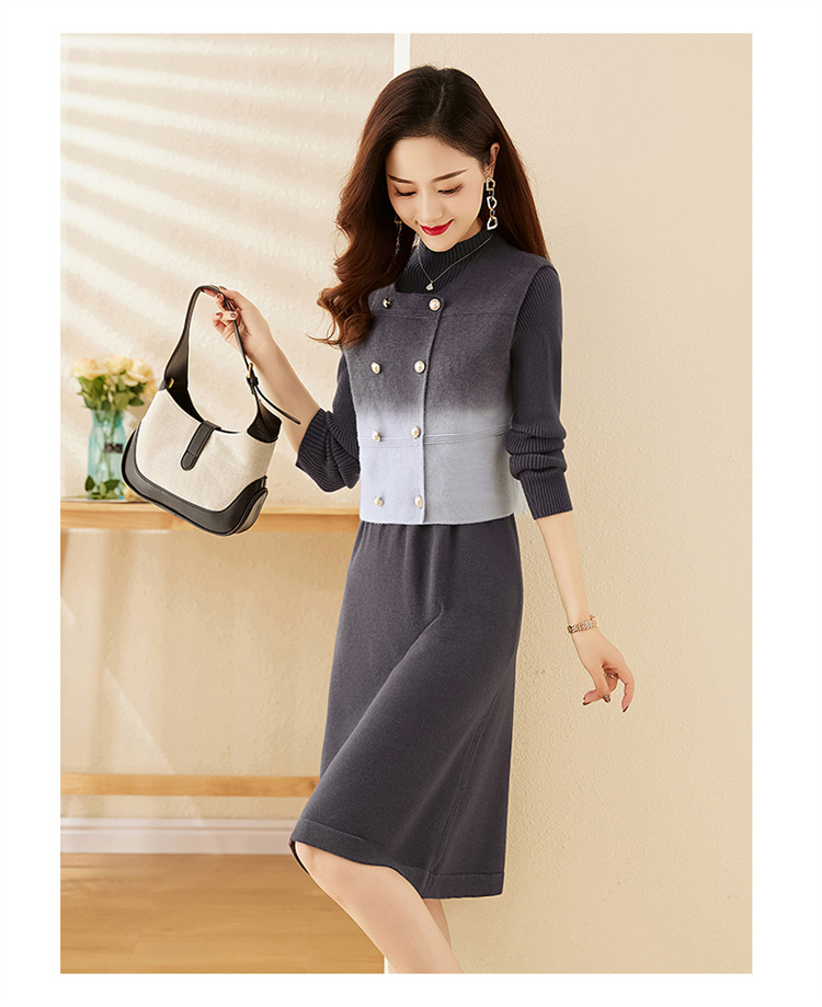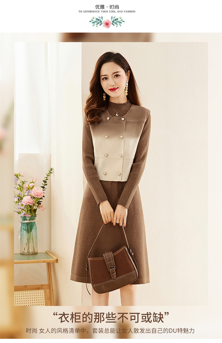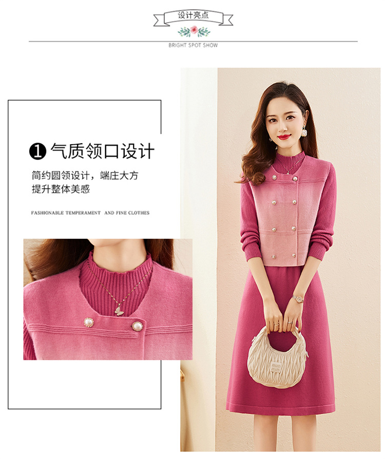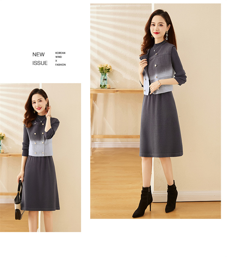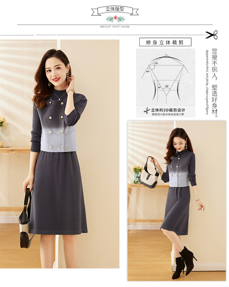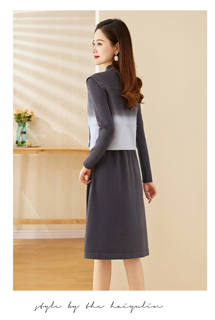 HRWY1069 2024春秋新款气质时尚温柔风晕染渐变色洋气百搭连衣裙两件套 商品图2