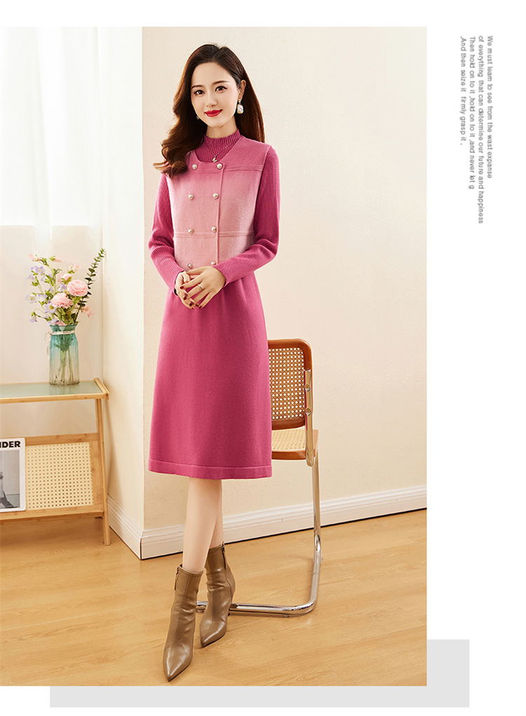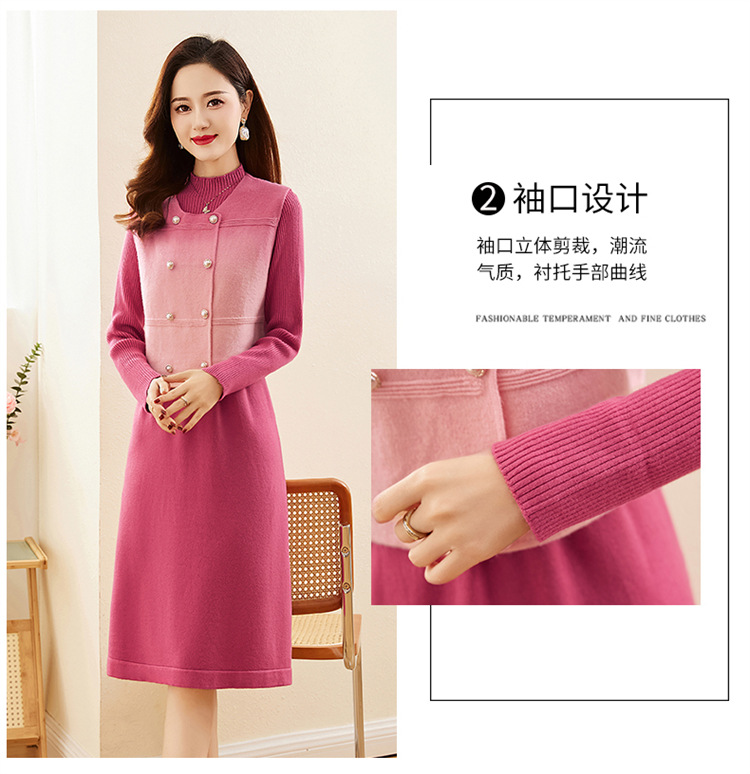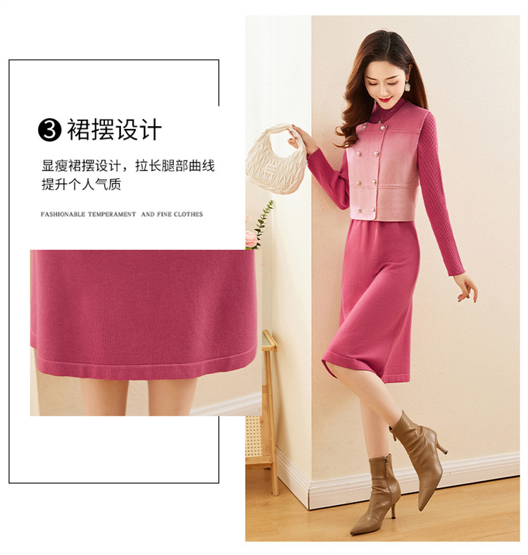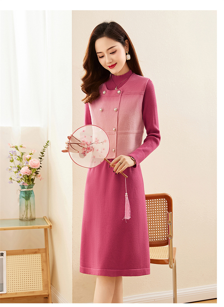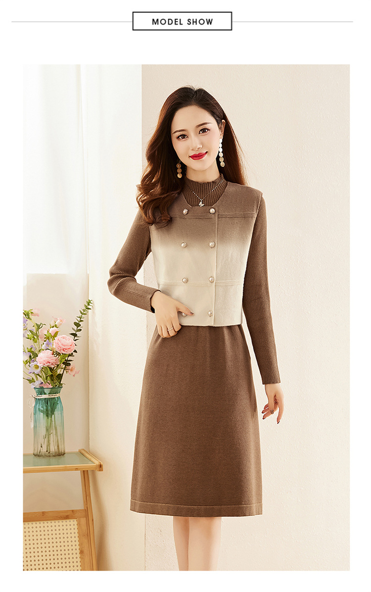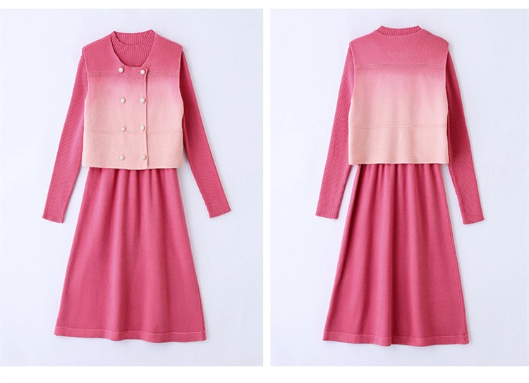 HRWY1069 2024春秋新款气质时尚温柔风晕染渐变色洋气百搭连衣裙两件套 商品图4