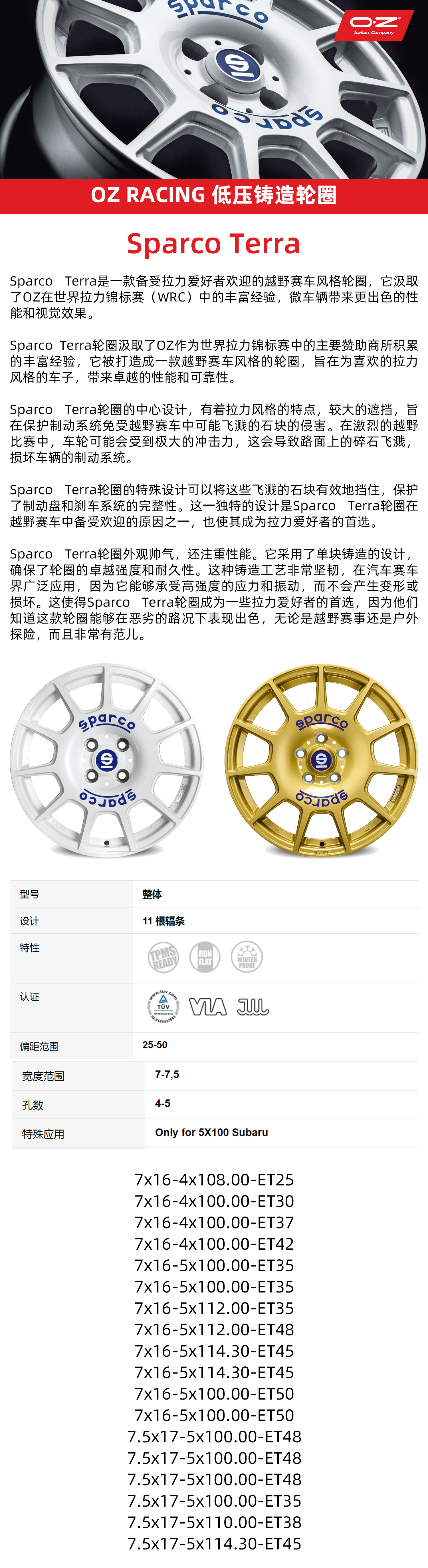 OZ Sparco Terra越野轮圈 意大利进口 16/17寸