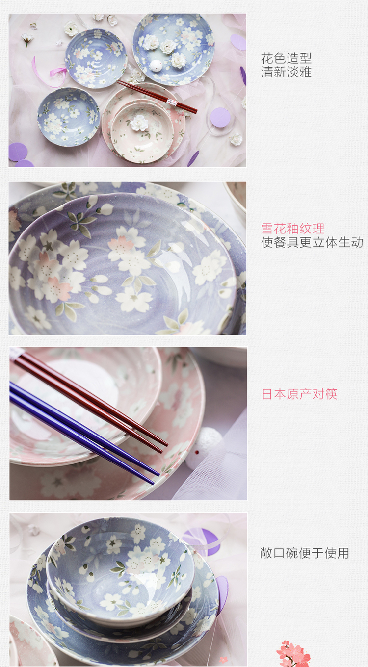 【AITO】日本宇野千代樱吹雪美浓烧陶瓷组合八件套装礼盒装