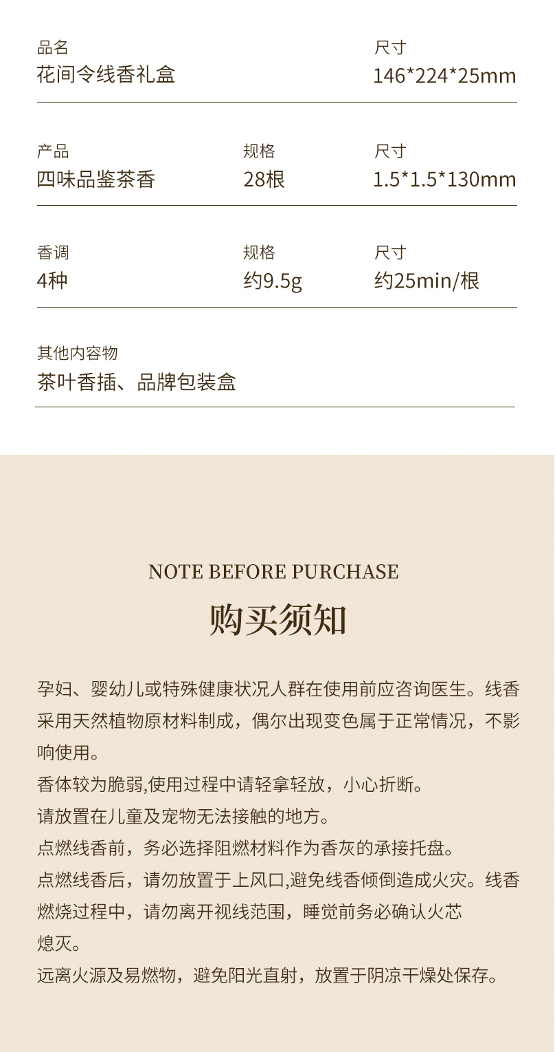 闻六堂香铺花间令线香燃香家用创意礼品健康高级茶香PA