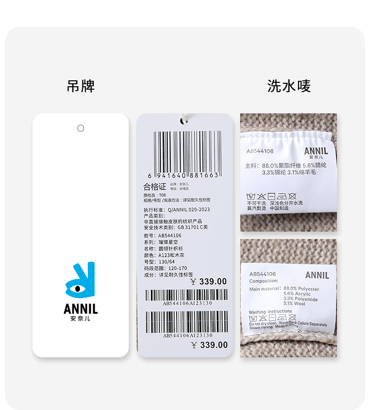【实体店同款】男童圆领针织衫冬季新款安奈儿童装AB544106